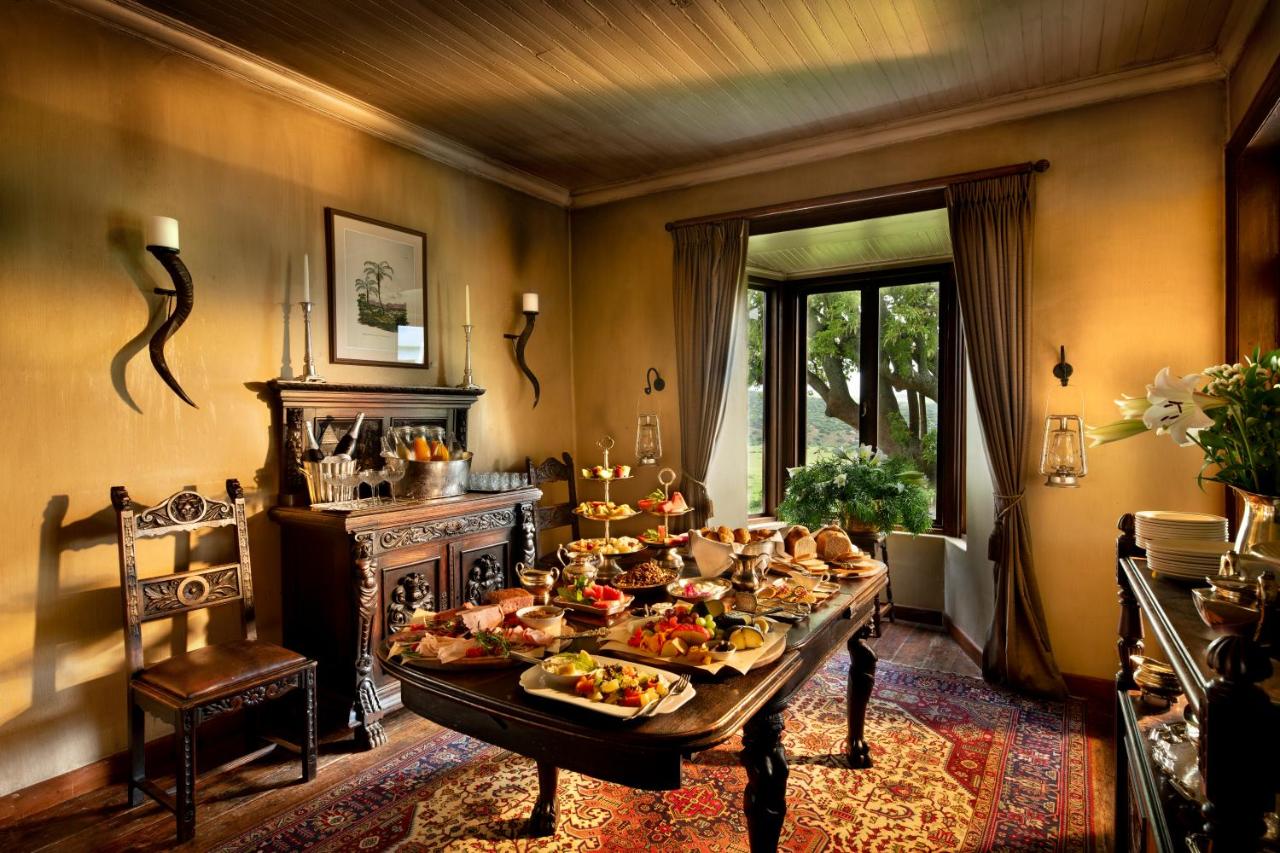 Meals are served in the dining room at the colonial Gorah House and in an enclosed outdoor area around the fire, where guests can enjoy a gourmet barbecue and African cuisine. High tea is served every afternoon.