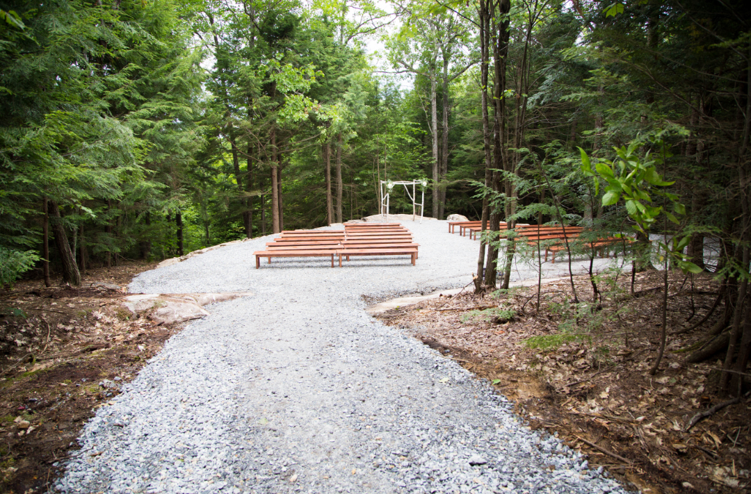 The wooded ceremony site is tucked away in spacious, clean, wooded wonderland for couple who want to be married in the open air