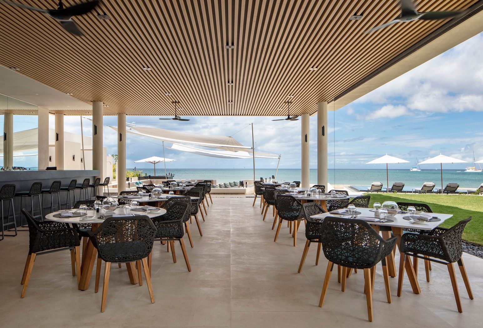 TASTE THE WILD AIRA relaxed, feet-in-the-sand ambiance by day and a refined dinner experience by night await you at Grenadian Grill and Beach Lounge. Enjoy an inventive menu featuring Mediterranean cuisine and authentic Grenadian dishes, and savour fresh-caught fish and seafood, as well as Black Angus cuts prepared to perfection in a Josper oven — all while soaking up splendid ocean views and warm breezes from Grand Anse. Stay for the glorious sunset, when GG Lounge on the beachfront deck comes to life with vibrant tunes from local live-bands.