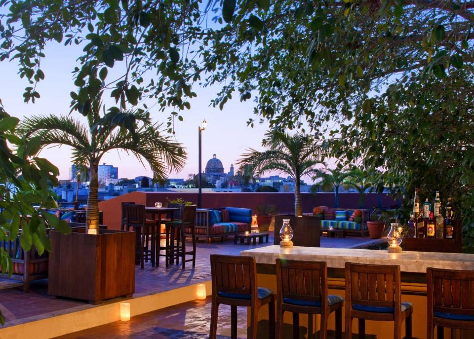 From the terrace at Hacienda Puerta Campeche you can see the beautiful city of Campeche, drink a cocktail and feel the gentle breeze.