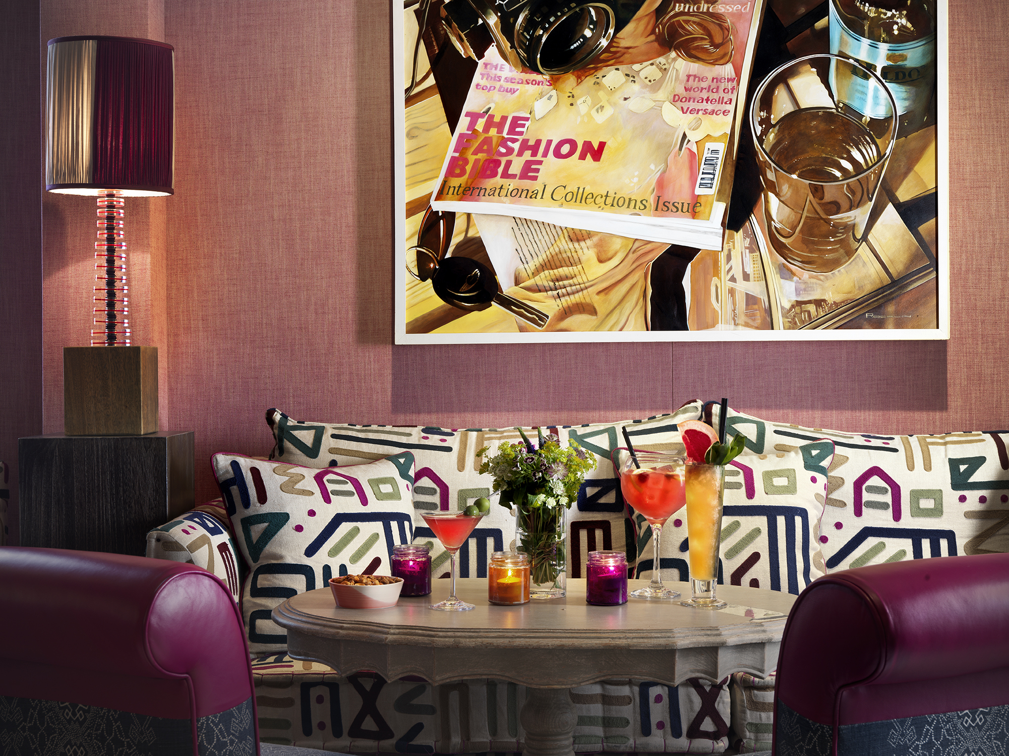 The boldly furnished Library is a comfortable spot for relaxing with a book or enjoying afternoon tea or drinks.