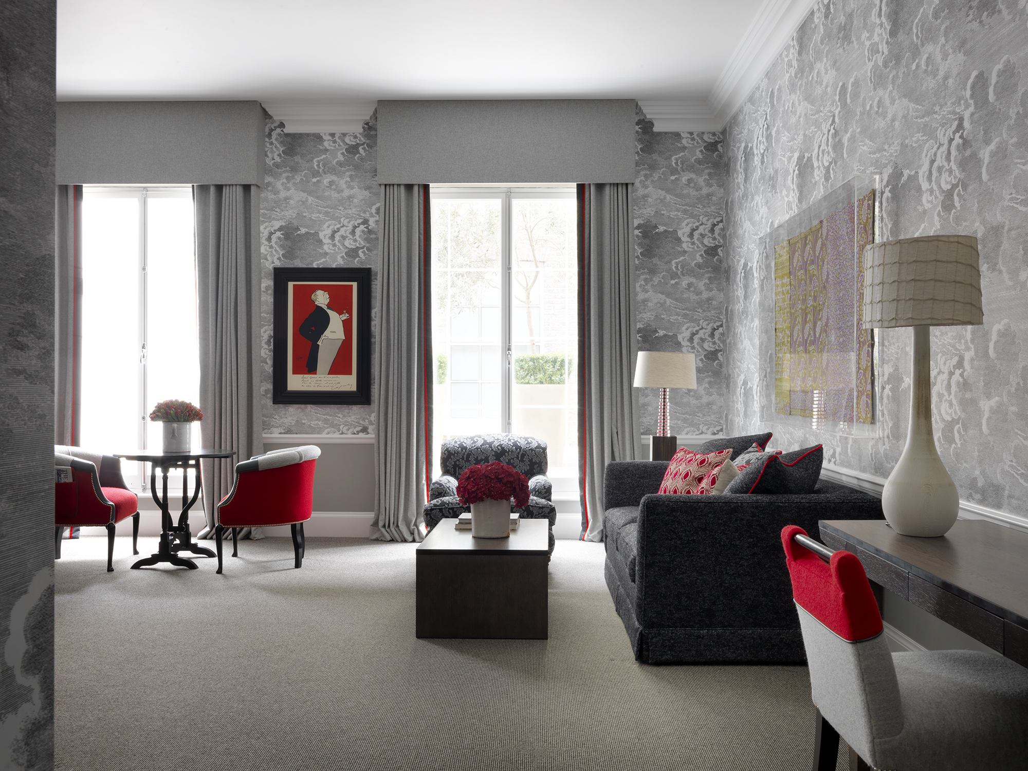 The interiors are a remarkable combination that honours the building’s noble lineage whilst updating it with a contemporary English point of view.