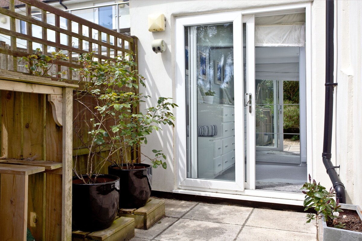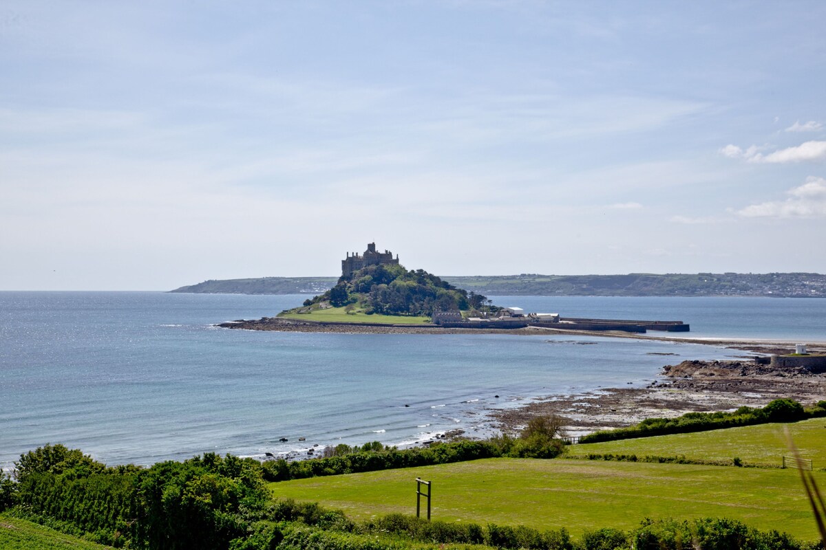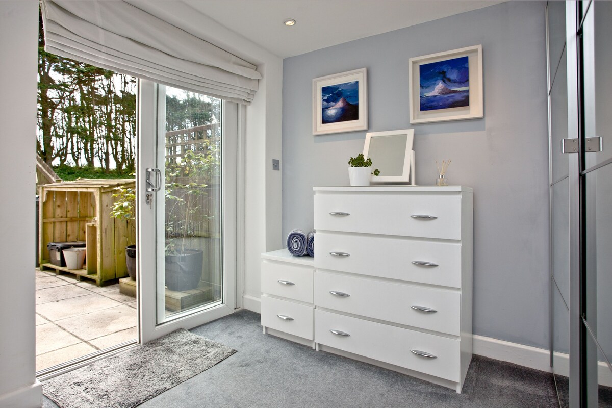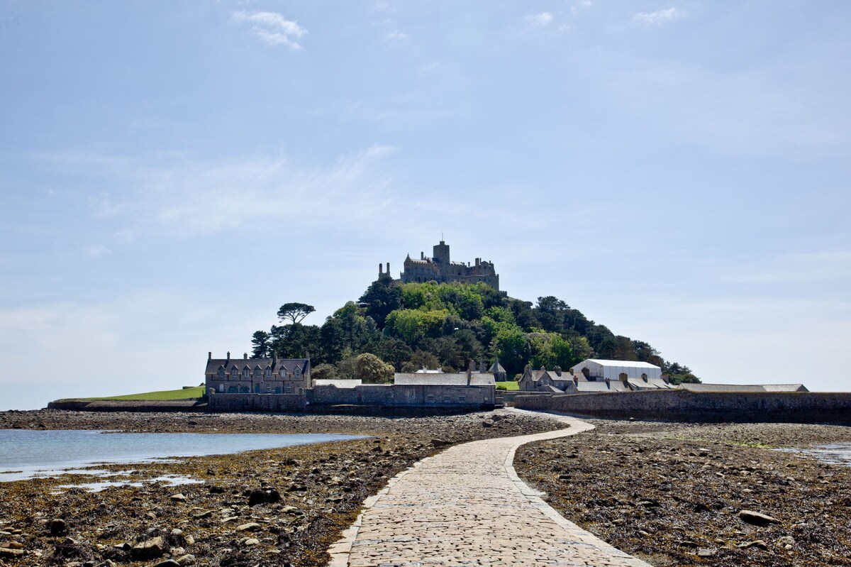 Out of all the sights in Cornwall, St Michael's Mount is one of the most beautiful. This island community is just off the coast of Marazion, with a medieval church and castle sitting atop its rocky terrain. Just a mile and a half from this striking scene, this house is the ideal base for exploring everything the region has to offer. This sleek, modern apartment is dressed in blue-and-white hues, in a nod to its coastal setting. Sash windows look out to rolling fields and trees, and adorning the walls, you may spy a few pieces that were painted by Cornish artists. But for the strongest connection to the nearby sea and the local area, nothing compares to the beach view from your private patio. You’ll love sitting out here for alfresco dining on a balmy evening, just as much as a wholesome brunch on a bright morning. After a long day of exploring beaches and glorious natural landscapes, curl up with a novel and a tumbler of whisky by the shiny, wood-burning stove (after the kids have gone to bed of course).