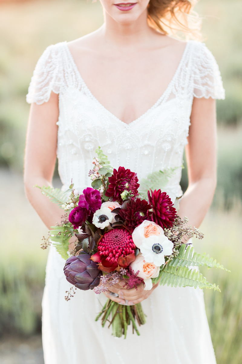 Dark romantic florals by California Floral and Design . Design by: Everly Events | Rentals: Found Vintage Rentals .