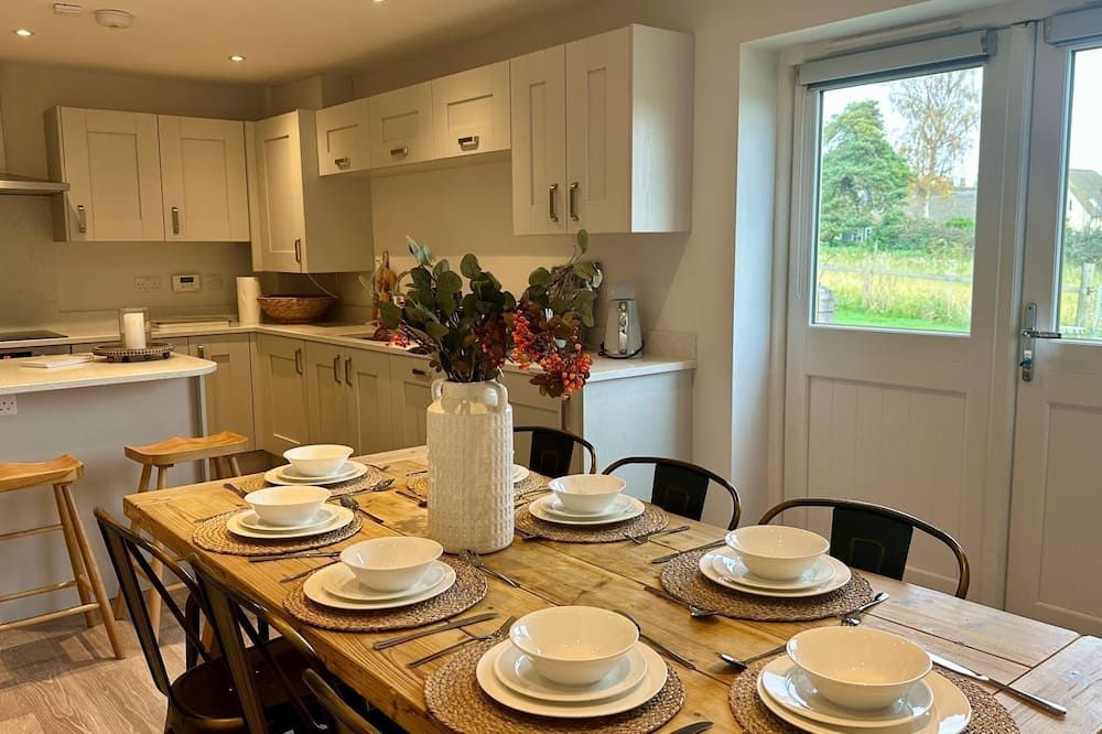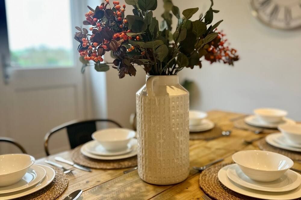 You’ll be able to get in plenty of relaxation back at the cottage, whether you’re curled up reading beneath the wooden beams in the living room or you’re soaking up the sun in the patio garden. The open-plan kitchen and dining room calls out for dining together en famille, and the garden has a dining table for those sunny days too. Picnic, anyone?
