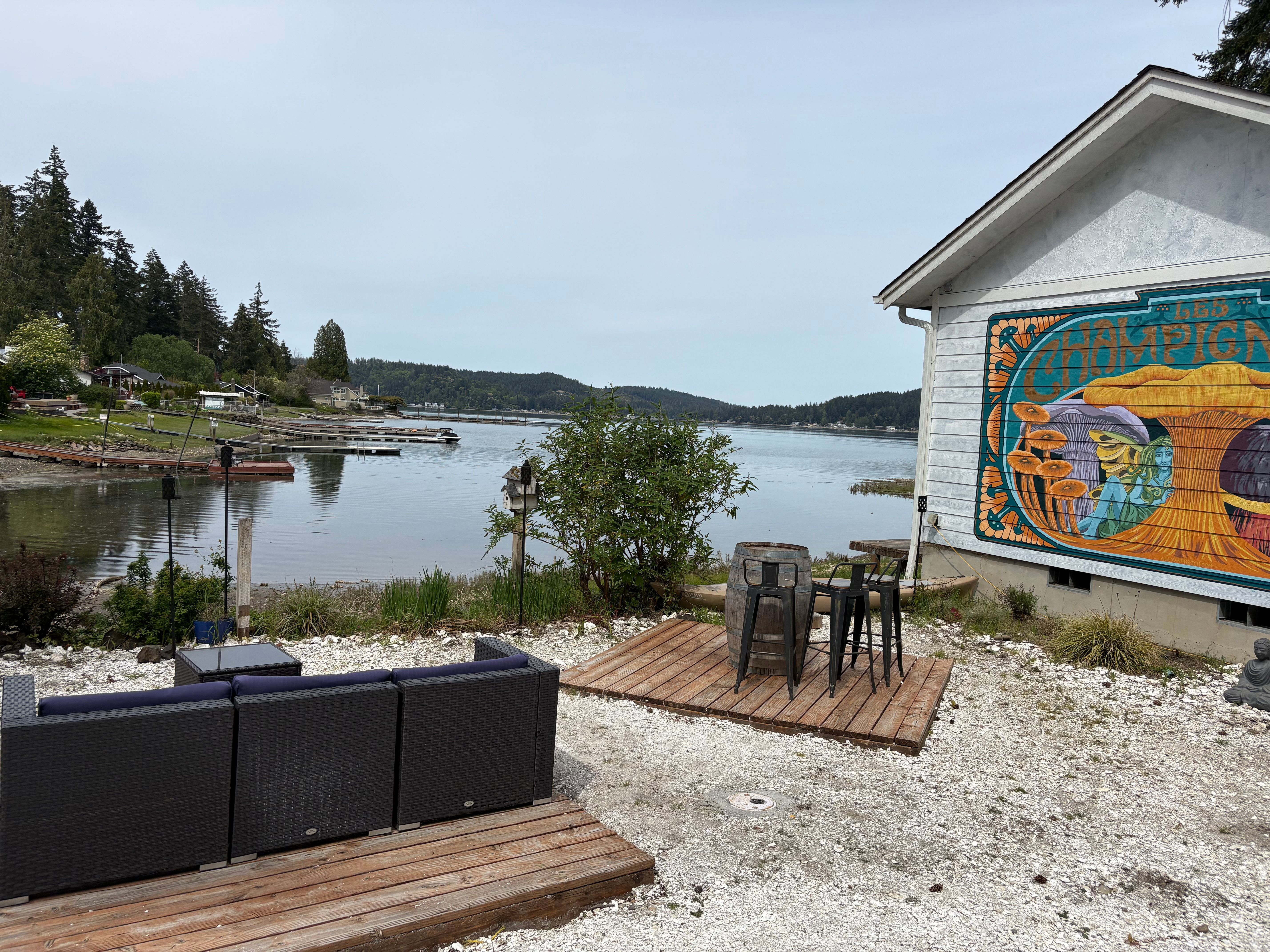 Hood Canale' brings fine wine, local, craft beer and Napolitano-style wood-fired pizza to the lovely hamlet of Union. Come enjoy our award-winning pizza, charcuterie platters and many creative apps and desserts in the Grotto Bar, under the tent in the garden or waterfront. The meat-lovers Gondolier's Brother to Lemon Garlic Butter Shrimp pizza and many in between can be paired with one of 800 bottles of red, white or bubbles from around the world. We are 21 and over and although we love pets, we do not allow them in the restaurant. Reservations are for 90 minutes, with the exception of live music nights where you may reserve a table at 6:30 or later and stay through the band's entire performance. Live music Friday and Saturday is from 7-9 and other special events and nights will be added throughout the year. Come see us soon!