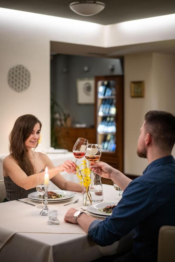 Hotel Radun’s stylish restaurant serves Czech specialities and fine Moravian wines. It includes a courtyard terrace.