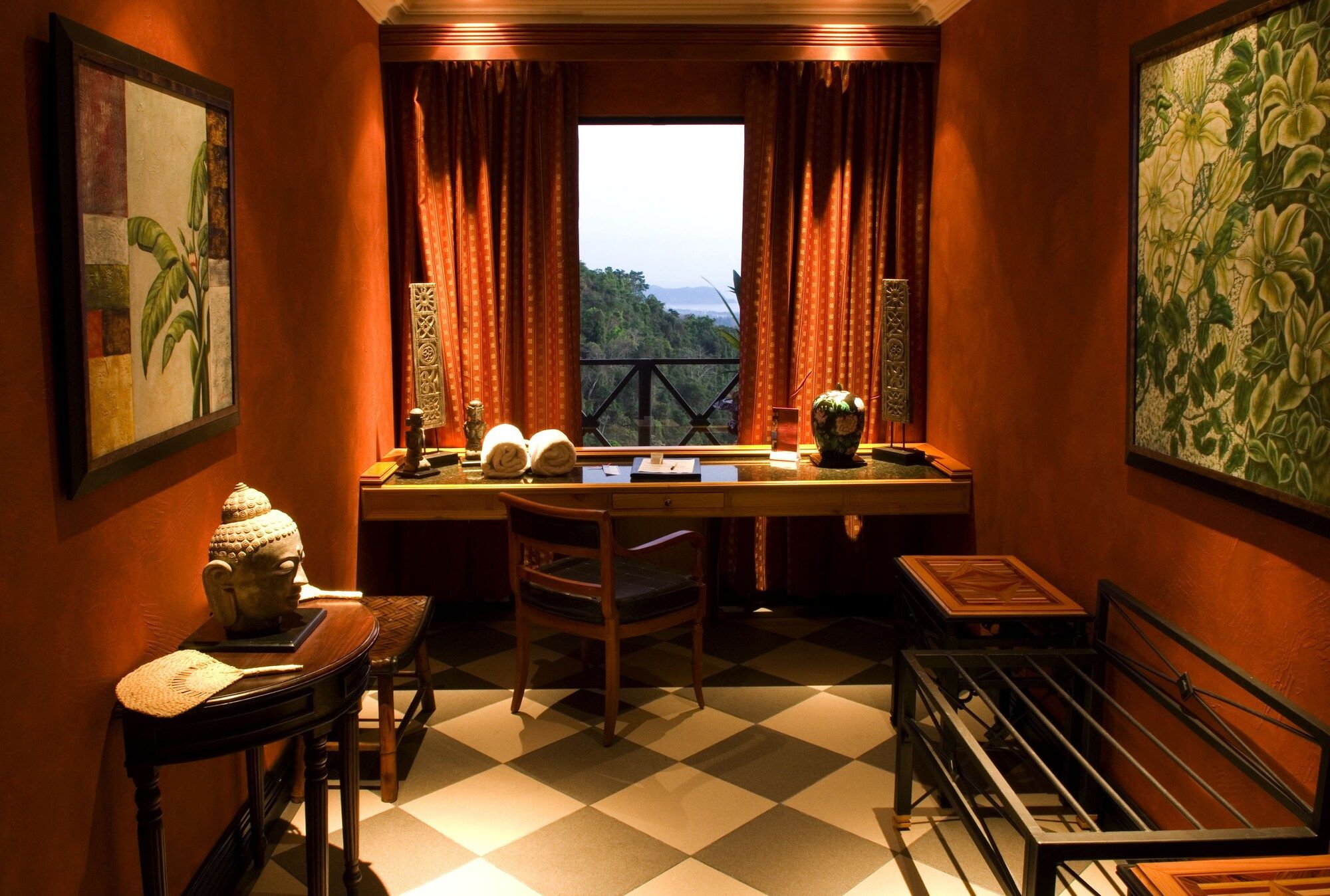 The lavish rooms at Hotel Villa Caletas have Victorian design, with quality black wood furniture and grand 4-poster beds. All have mosaic floors and some have a terrace with hydromassage tub.