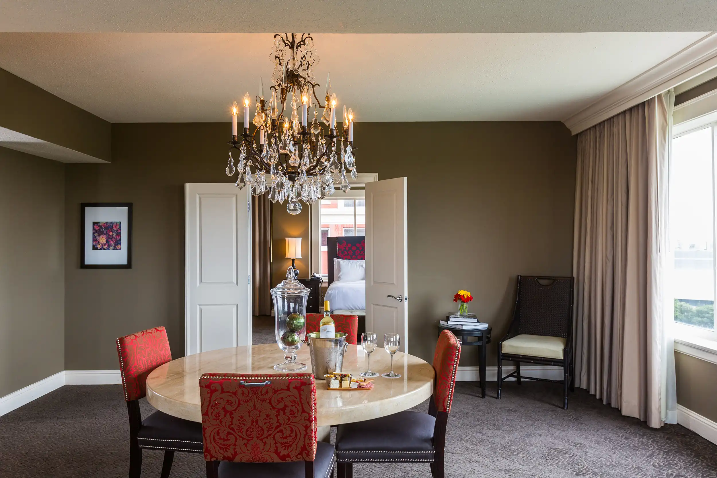 Guests can enjoy, lunch and dinner at Monarch, a fine dining restaurant that serves steak, seafood and a weekend brunch. Craft cocktails, beer and wine are available at the Monarch lounge.