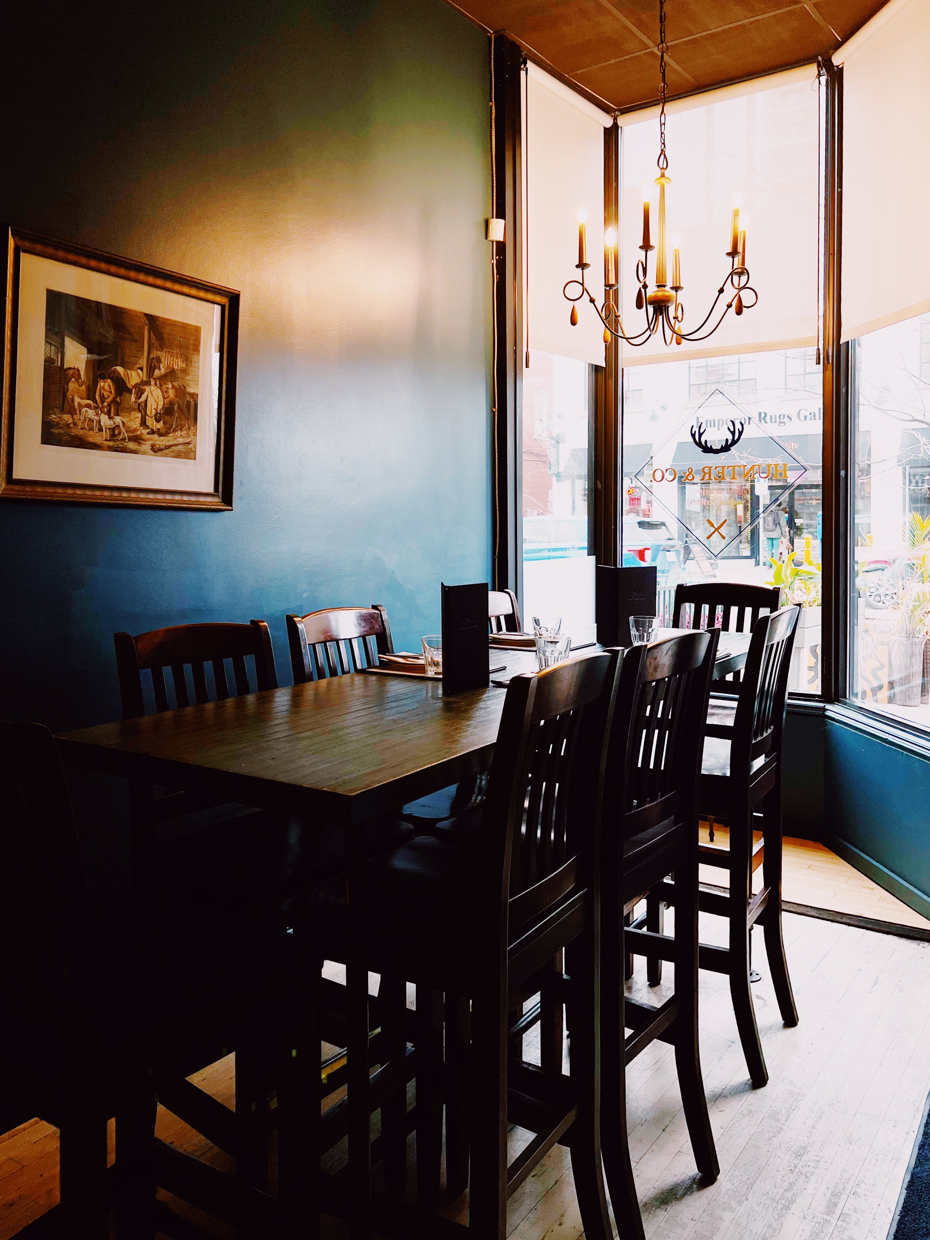 Welcome to Hunter & Co!We offer a unique and adventurous culinary experience with chef-crafted small plates designed to surprise and delight. Our menu spans from Bone marrow to our famous Hunter fried chicken, crafted to make your taste buds and bellies happy. For lighter fare, we’re delighted to serve curated charcuterie boards and freshly shucked oysters with all the garnishes.Of course, great food deserves great drinks. Our bartenders are serious about cocktails, crafting each one to make nights unforgettable. We’re also proud to feature a selection of local craft beers and, if you’re a wine lover (we like that about you), you’ll find an extensive wine list stocked with unique reds and whites you won’t find in the LCBO.Looking for a unique spot for date night or a special gathering? Whether you’re after bold flavors, creative cocktails, or rare wines, Hunter & Co. promises an experience worth savoring. Book your table and see what’s in store.