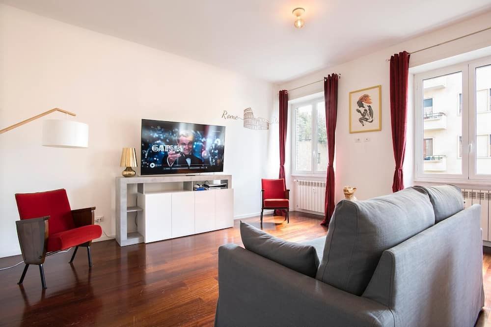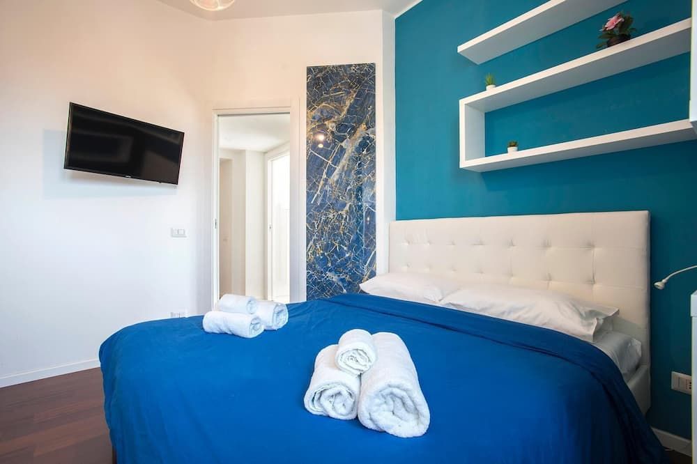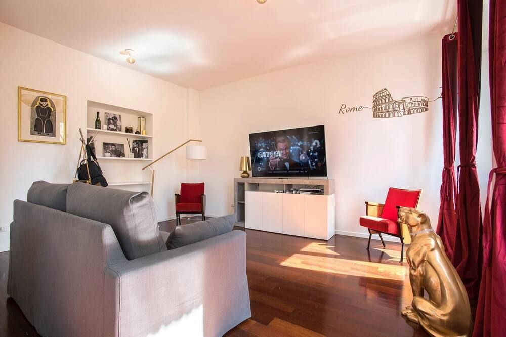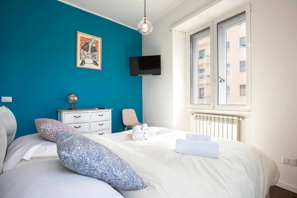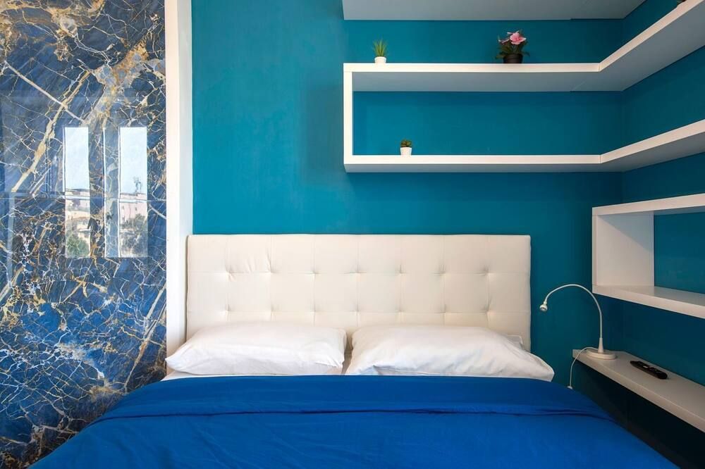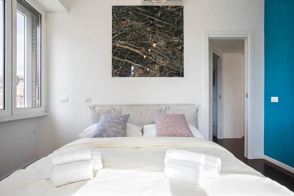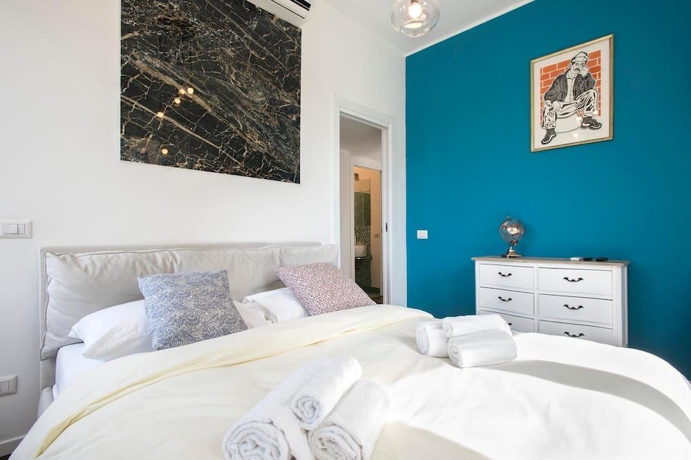 Step off a leafy Esquilino street and through the huge old doors to find this fourth-floor apartment in all of its whitewashed glory. Pristine and modern, the home is touched with earthy tones—olive and celery greens, taupe and leafy houseplants. All of your mod-cons are neatly concealed by a veneer of light oak, so you can keep your attention firmly on devouring the welcome wine and snacks provided by your host. Turn right out of your building and take the ten-minute waltz over to Parco del Colle Oppio for its ancient ruins and prime views of the mighty Colosseum. When it’s time for dinner, you couldn’t be better placed to sample authentic Italian grub. Your home is surrounded by family-run bakeries, ristorantes and those all-important gelaterias.