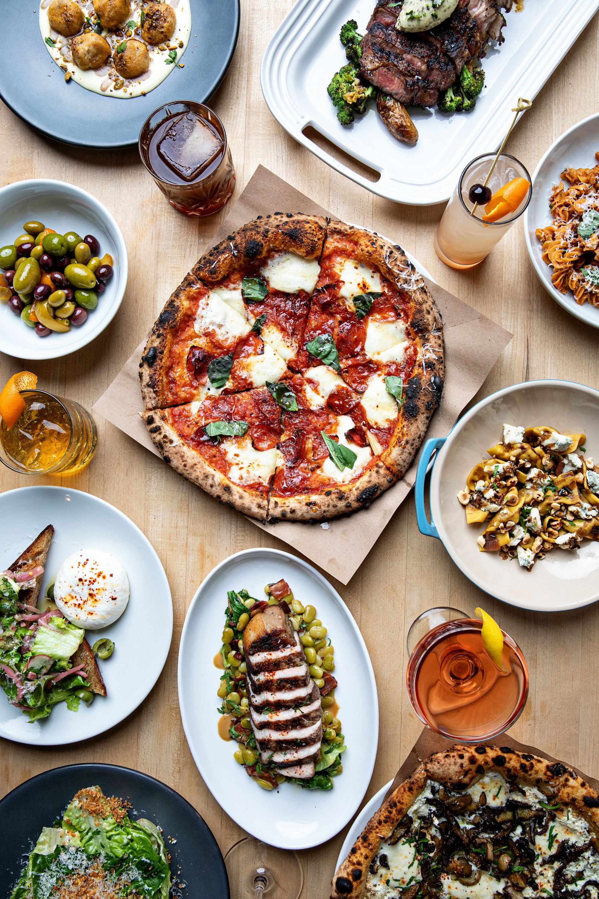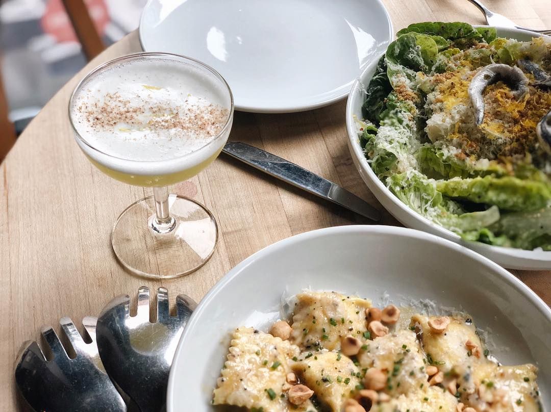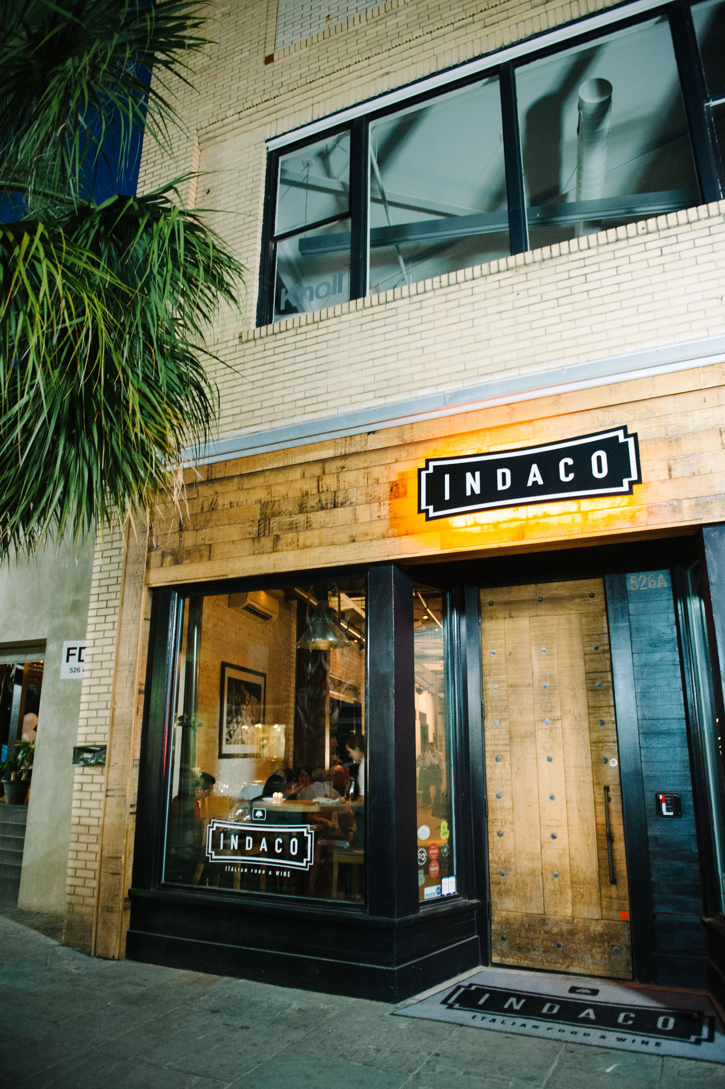 Located on Charleston's Upper King Street, Indaco (Italian for "indigo") serves rustic Italian cuisine. Wood-fired pizzas, hand-crafted pastas, housemade salami and cured sausages fill the restaurant's menu which can be enjoyed family-style or a la carte. With community tables, an open kitchen, and a comfortable atmosphere, Indaco can accommodate 100 guests for a casual night of food and drinks. The wine list is focused on affordable Italian varietals, the Negroni cocktail is on tap, and the fresh sodas are made in-house. The massive wooden doors on Upper King Street are your first indication that Indaco is different from the typical Charleston restaurant. Rustic details continue inside with butcherblock tables, lime-wash walls, and white brick. An open kitchen with nearby community tables lets interested diners keep an eye on the action inside the kitchen. Outside, a patio puts you streetside to watch Upper King Street's vibrant nightlife scene.