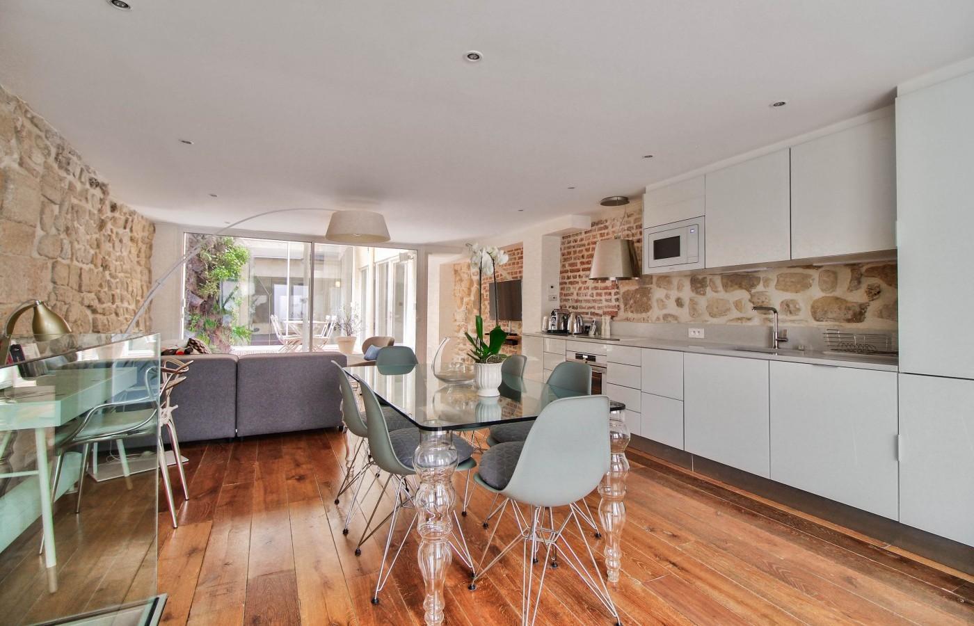 Set in the heart of Le Marais, one of the most beautiful and lively neighbourhoods of Paris, this home is especially enviable when it comes to its location. You’ll be just two minutes from Marché des Enfants Rouges, a typical Parisian food market where you can pick up fresh produce or try delicious Lebanese fare. You’ll also be surrounded by art on all sides, just an eight-minute walk from the Picasso Museum, twelve minutes from the Carnavalet Museum and fourteen from Centre Pompidou – although the whole neighbourhood, with its narrow cobblestone streets and former mansions, feels a bit like an open-air museum already. The home itself is enviable for its own set of reasons – with original exposed limestone walls and oiled oak floors, its authentic character has been lovingly preserved. There’s a modern kitchen, elegant dining area, massive cosy sectional and our personal favourite – the lovely private courtyard with a dining table for meals alfresco and a vertical garden that’s thriving. Spend early mornings out here with a strong coffee and also some late nights, chatting over a bottle (or two) of good French wine.