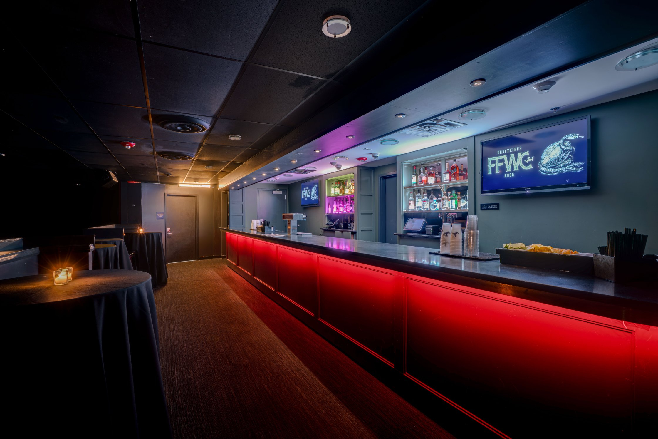 Featuring a state-of-the-art audio/visual system, a fixed stage, three permanent bars, and multi-tiered balcony seating, the 10,000 square foot Joy Theater can be customized to fit all functions including live music, stand-up comedy shows, film screenings, corporate events, and private receptions.
