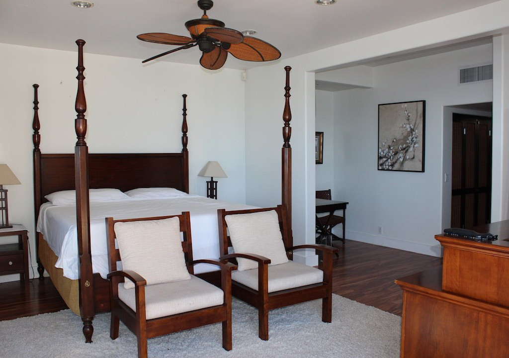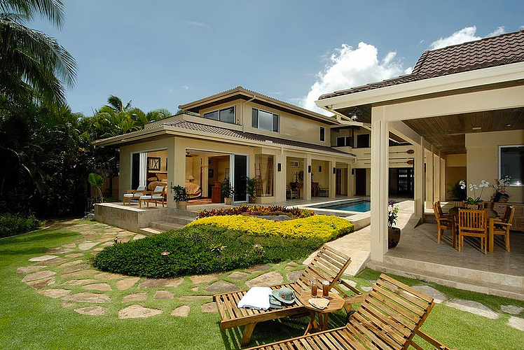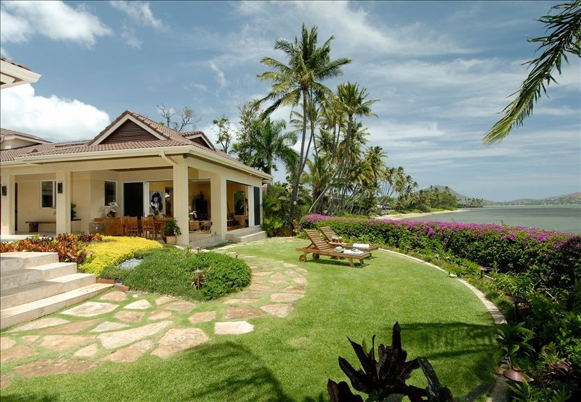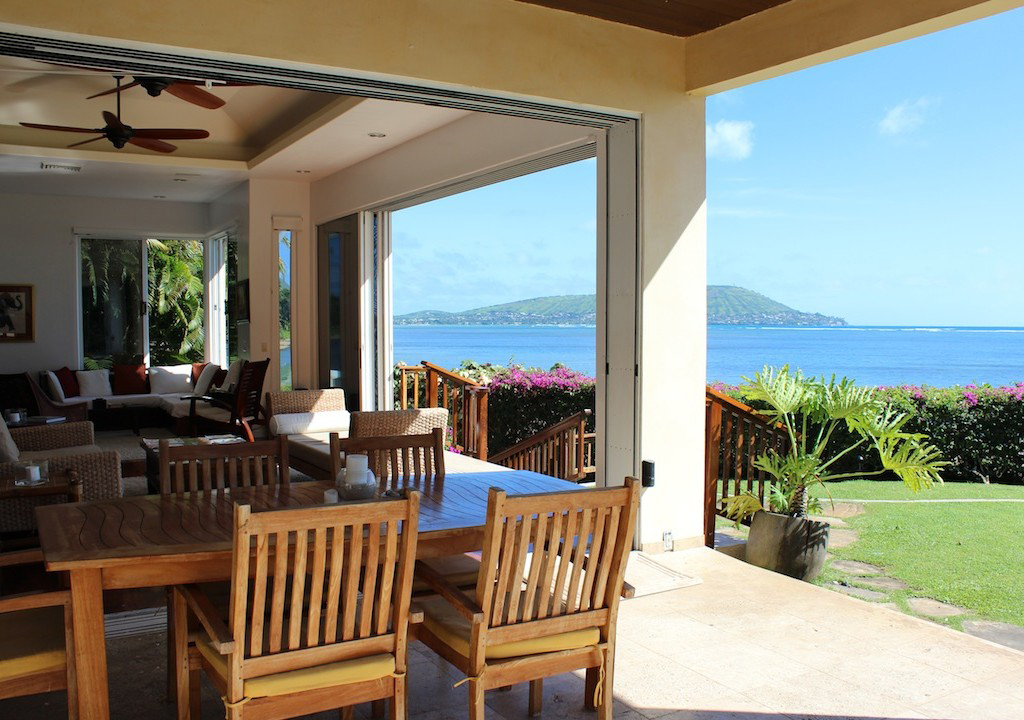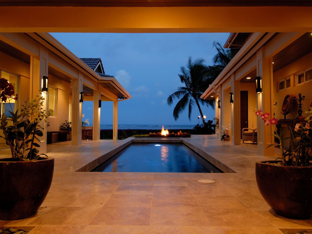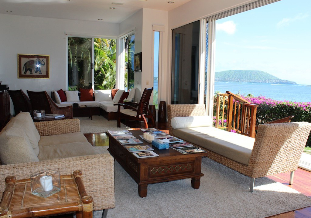 This beachfront villa is pretty much the epitome of modern Hawaiian luxury living. A favorite of John Travolta and Kelly Preston, this unique property features private beach access, a mosaic-tiled swimming pool, and a gated property line to assure that your tropical occasion is shared only by you and yours.