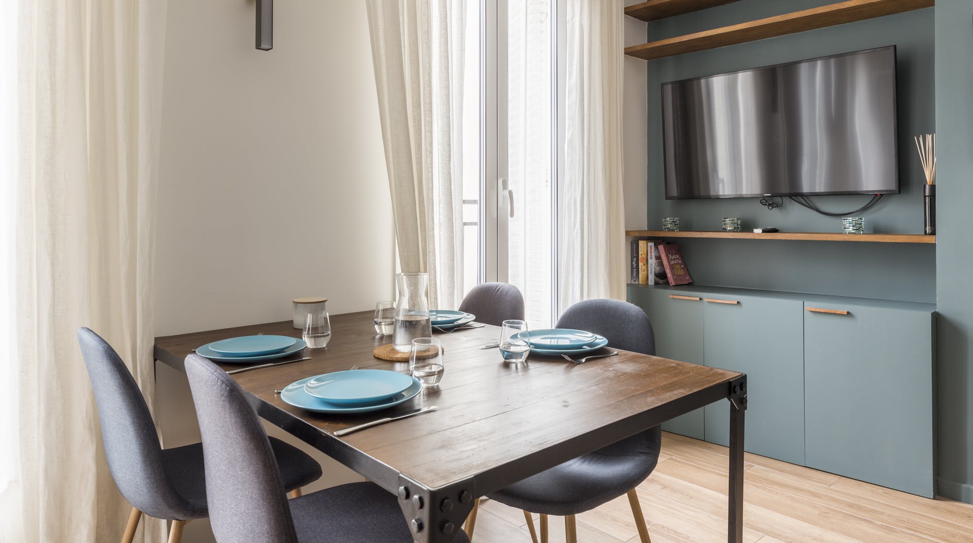 A recently renovated three-bedroom apartment, it's spacious and bright with large French windows and a quaint long balcony at the front. Featuring a neutral decor with a cool Scandi vibe, it would suit a group looking for a home with a decluttered look. Located in a fairly quiet street between the trendy Marais and the vibrant 2nd arrondissement, there are tons of hip spots to eat, drink, and shop nearby, while culture addicts will appreciate its proximity to the Pompidou Centre.