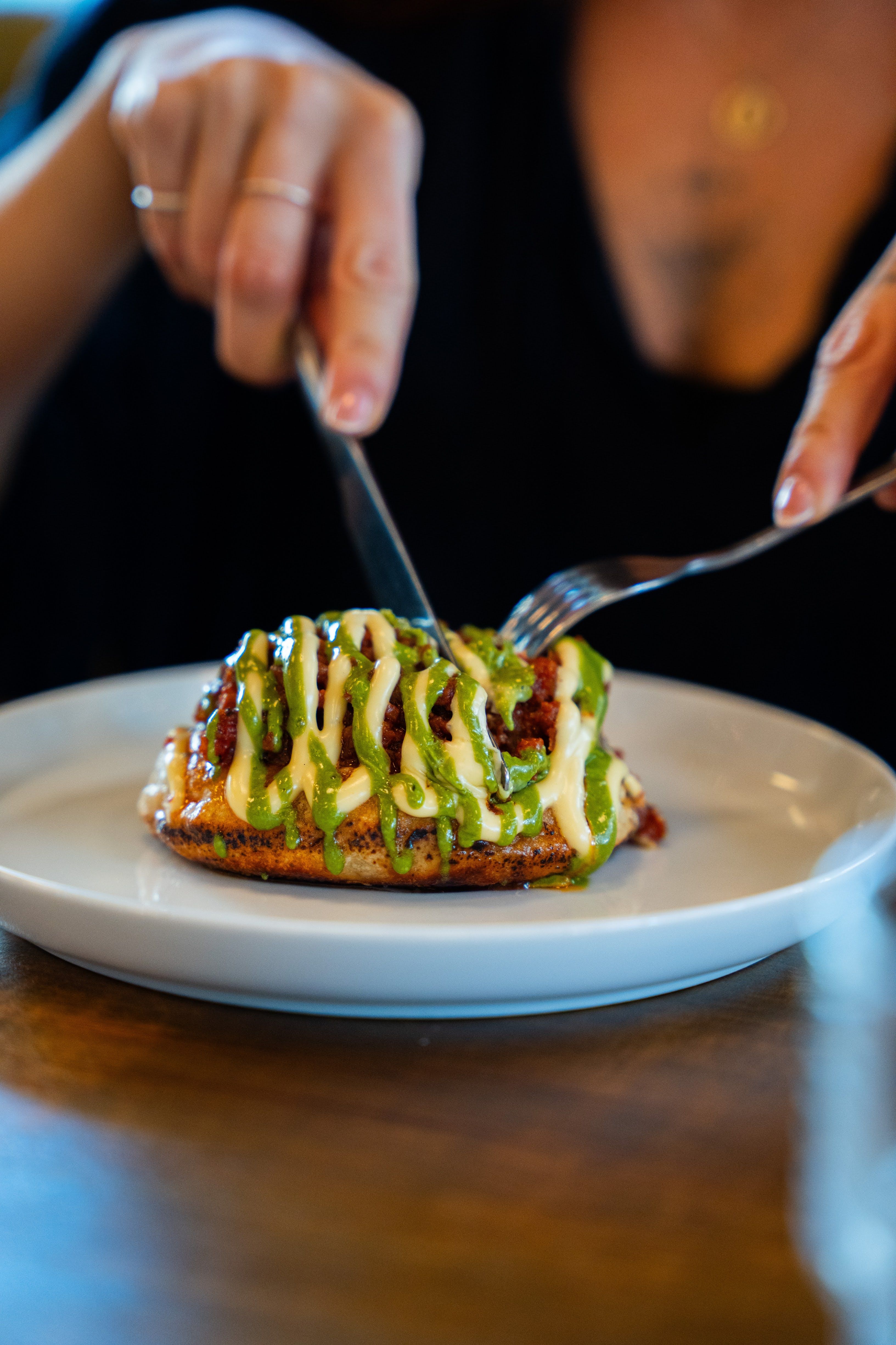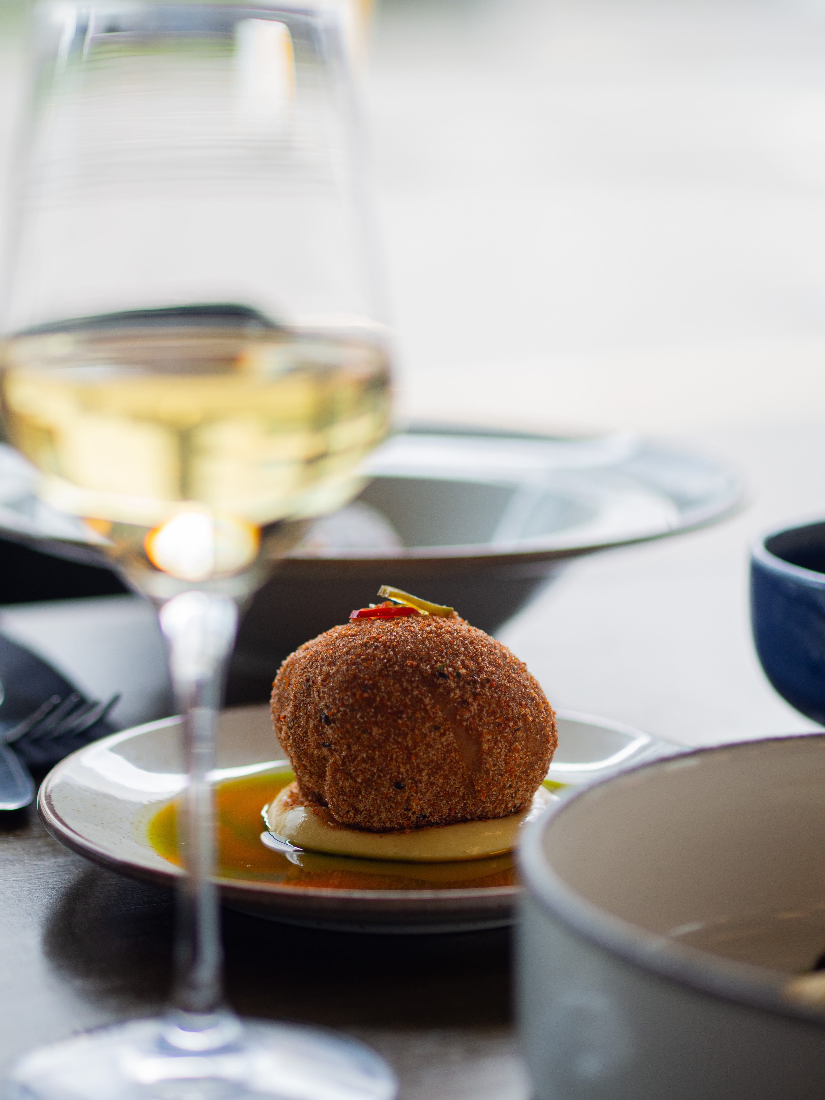 At KELP we take our time to make sure the food that goes on your plate is a fresh and local as possible. We source our seafood to be specifically Scottish and sustainable. We pride ourselves on using local suppliers for all our food. The fish people supply our fresh seafood daily. Our bread comes from Soja bakehouse, a family owned bakery in Cumbernauld. Our meat comes from ABR butchers, based in Bearsden. Our executive chef, Christopher Hutchison, creates amazing, innovative dishes to be enjoyed and shared with friends and loved ones. We now have an AA rosette for 2023/2024 to highlight his and the teams amazing work. We are located on Cowcaddens Road, just around the corner from our sister restaurant, Ardnamurchan Restaurant and Bar and a stones throw from the theatre royal. Perfect for a meal before a show. Relax in our modern, airy restaurant and watch the chefs work in the open kitchen. Our signature dish is our crab doughnut, you'll be amazed!