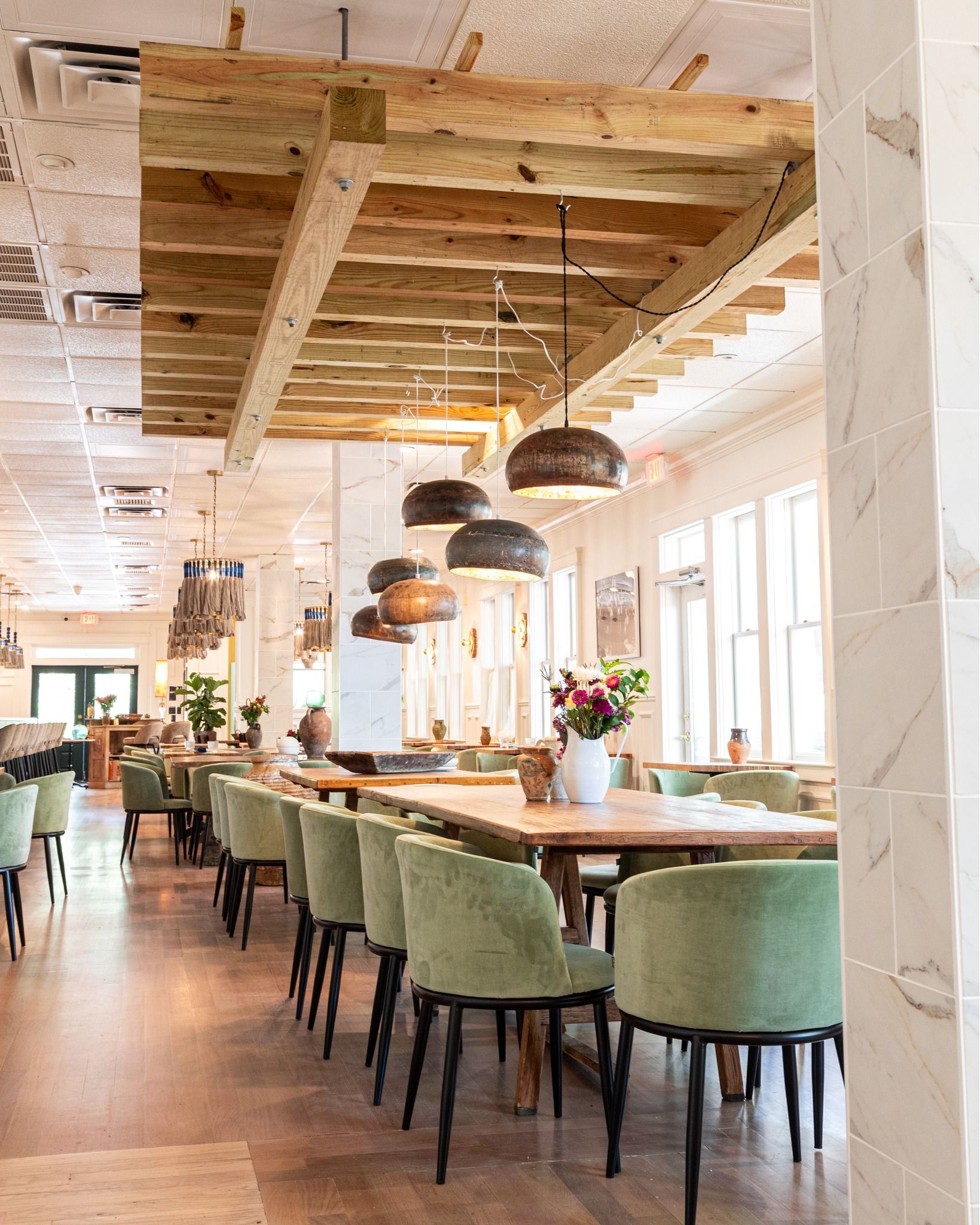 Kipos Hellenic Cuisine, an elevated extension of Kipos Greek Taverna in Chapel Hill, boasts a large garden and extensive bar which features double-sided seating indoors and out – all of which lends to a spacious dining area that flows seamlessly from the dining room to the patio. The bright, light-filled dining room, with high ceilings, terrazzo floors, and a variety of seating areas. Enjoy Kipos’ classic Greek menu, curated by Executive Chef George Delidimos – including its legendary Avgolemono, Moussaka, Tzatziki, grilled whole fish. In addition to the largest Greek wine selection in the area.