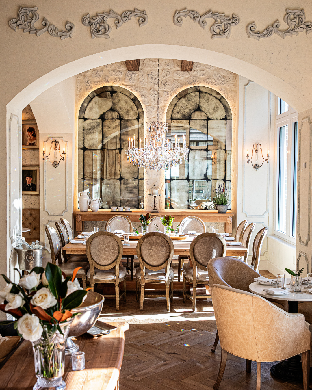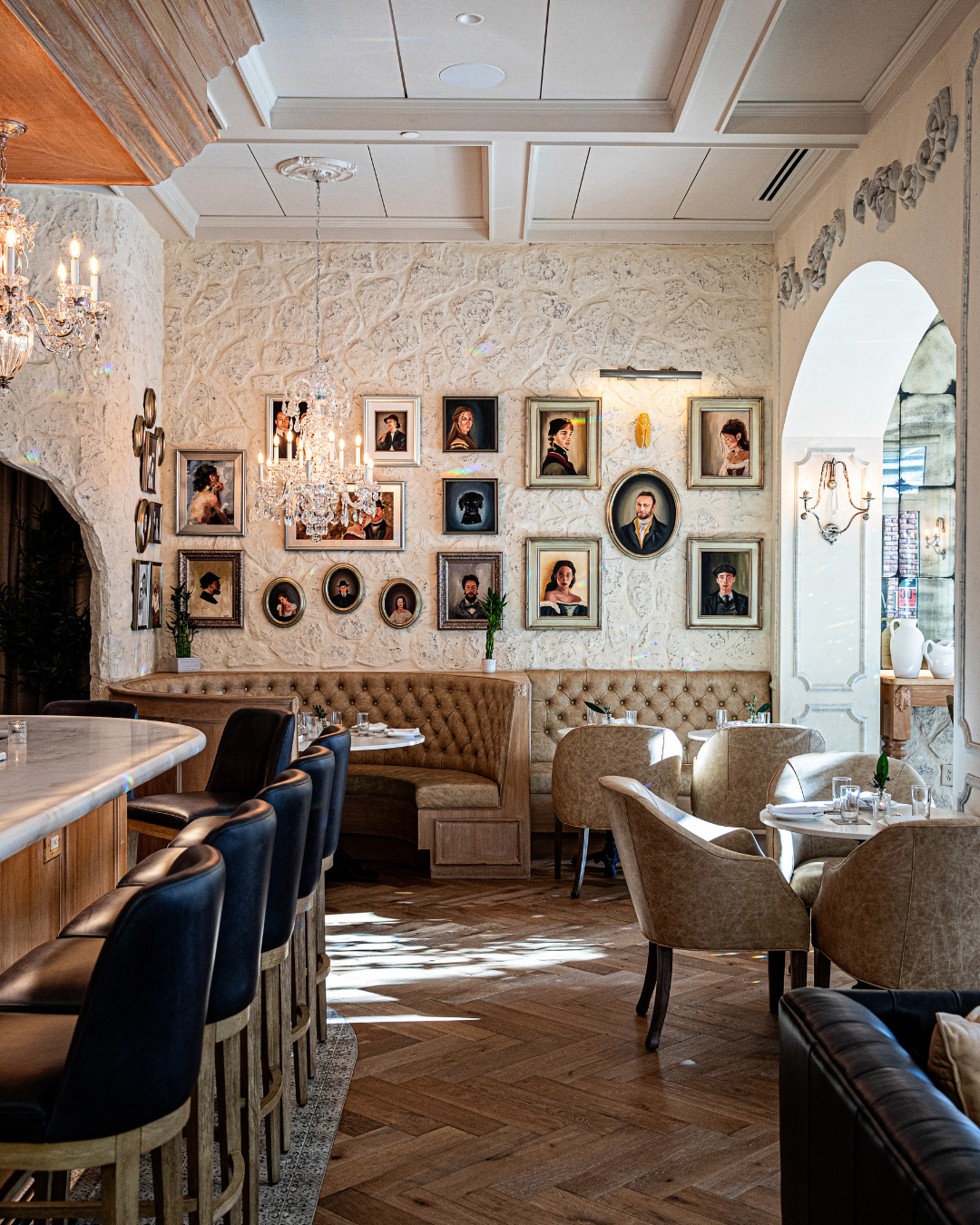 La Cave feels like the physical manifestation of every “timeless dinner party” moodboard you’ve ever saved. Crystal chandeliers, intimate banquettes, portrait-lined walls, and perfectly chilled grapefruit martinis create a romantic, old-world framework for hosts with discerning taste. So, if you’re planning a reception, rehearsal dinner, or private celebration that calls for something more considered than the usual private dining room, we’ve found your venue.