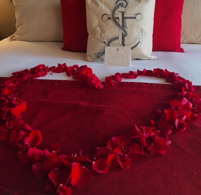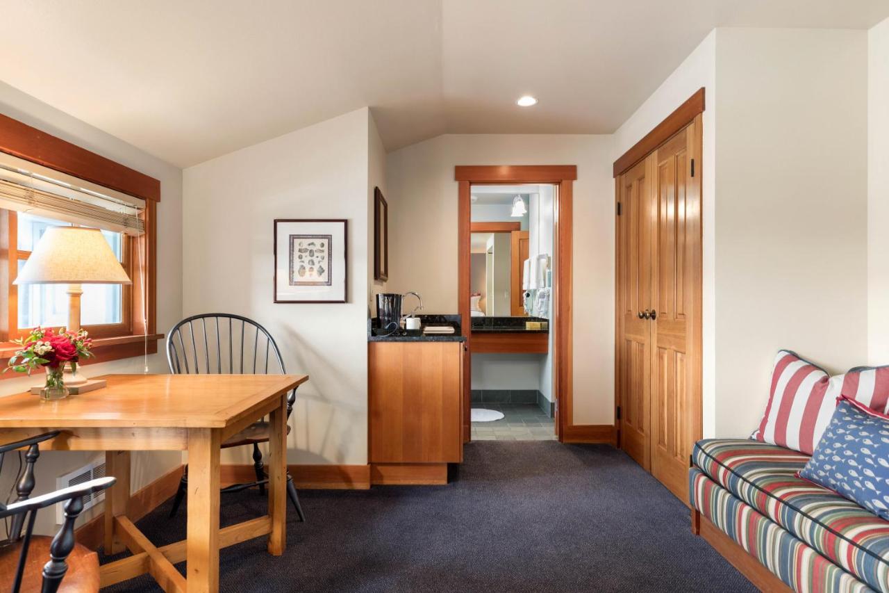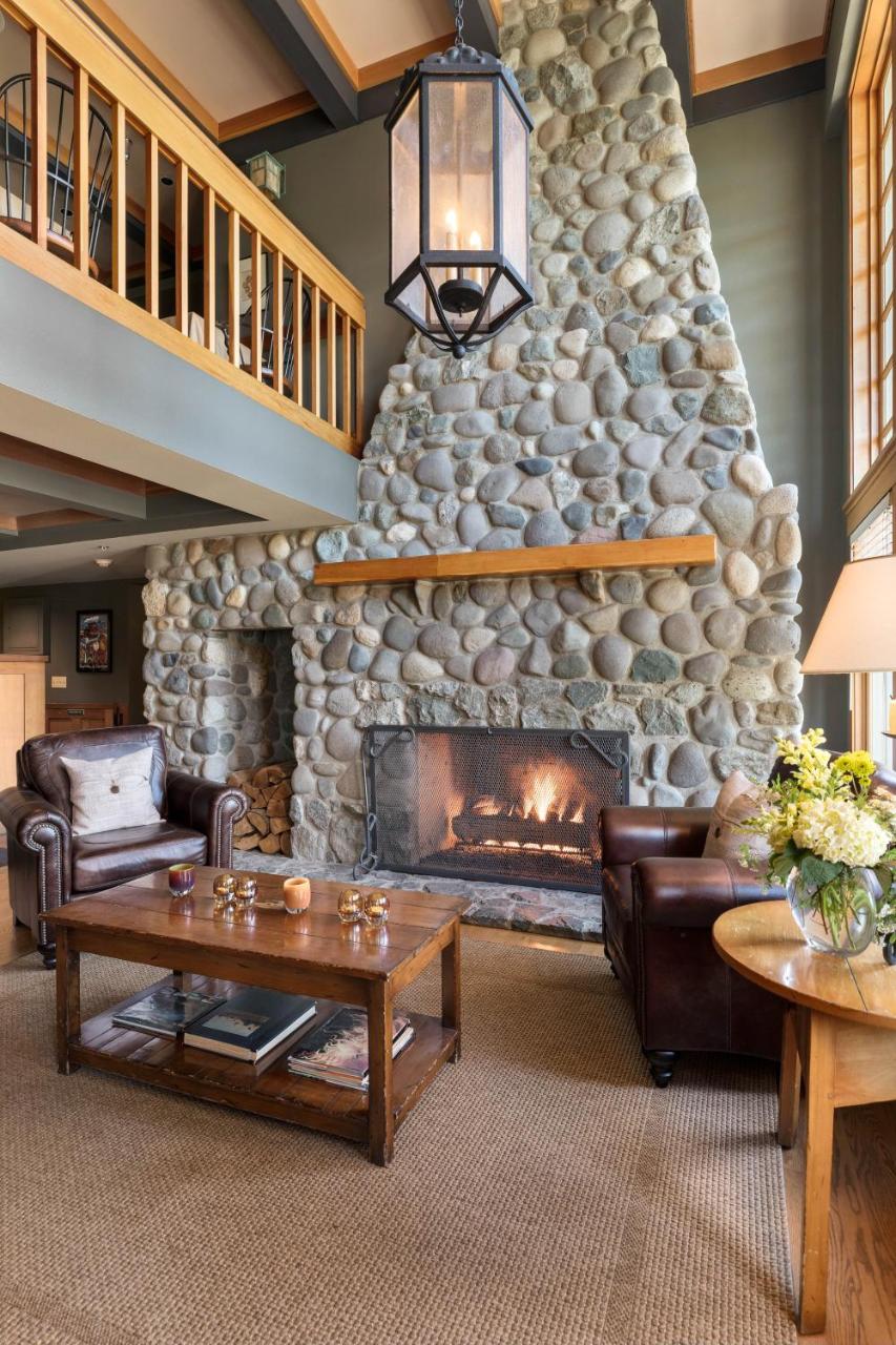 The hotel’s grand lobby features a river rock fireplace as well as a grand piano and provides a nautical feel.