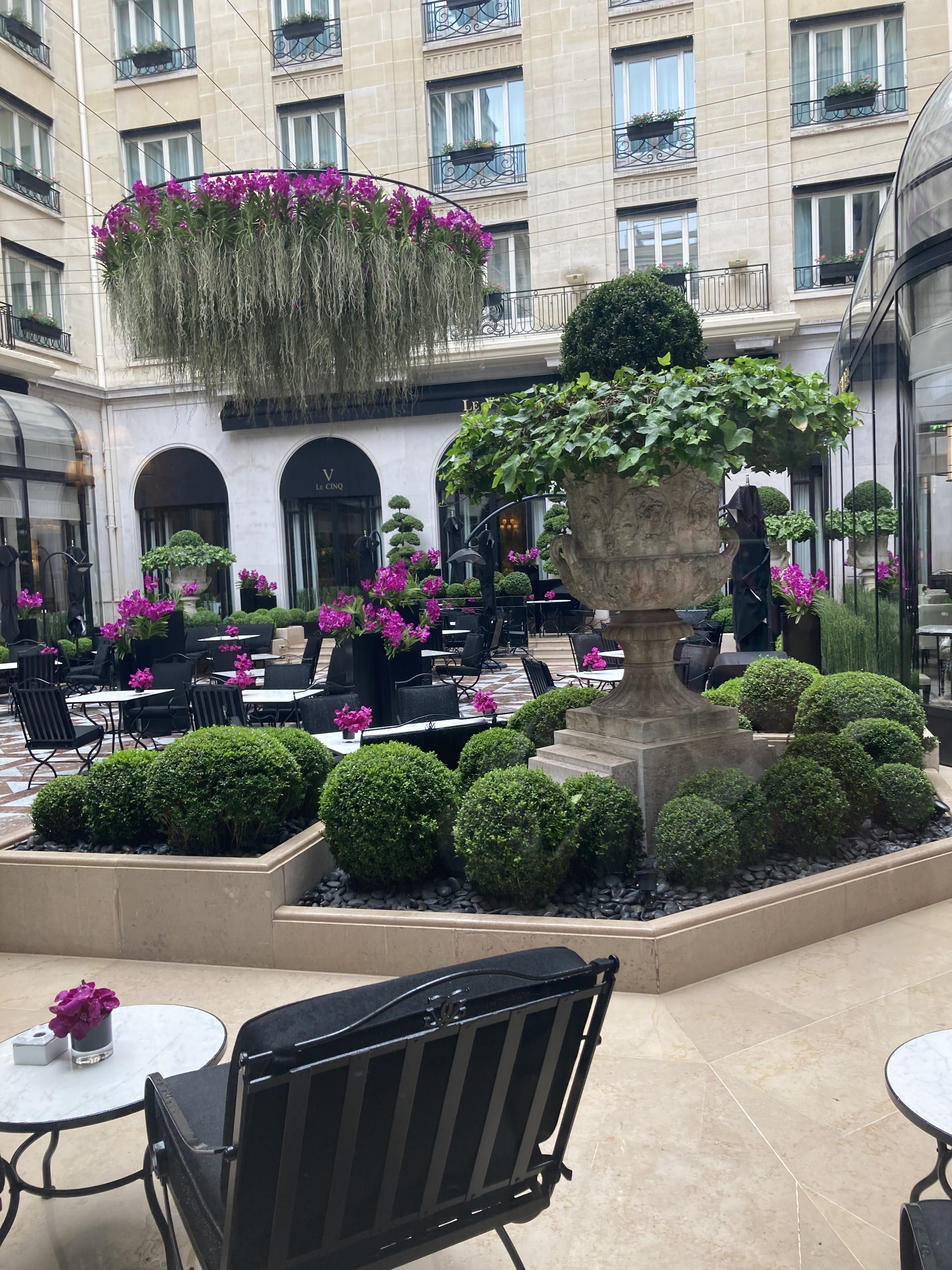 Housed in a former art gallery overlooking a peaceful courtyard, this bright home is a chic retreat in the heart of Paris’ 9th arrondissement. With its beautiful slanted glass ceiling and vibrant walls in pops of pastel shades, the entire space has been carefully curated to reflect its artistic history in modern, comfortable style. We love the living room’s large windows giving way to leafy views and the kitchen’s marble detailing and tumbling houseplants. Our favourite feature, however, is the window-side free-form table that will make any meal feel like a celebration. Sit here with your morning coffee or gather together for a scenic dinner while enjoying the tranquillity of your quiet city surroundings. Outside of your home, the elegant Palais Garnier opera house is a fifteen-minute walk away, as is the Montmartre district with its famous Moulin Rouge and Sacré-Cœur Basilica. The Louvre, too, is within easy reach in just twenty-five minutes for an added dose of artistic inspiration that your Parisian pad already provides in spades.