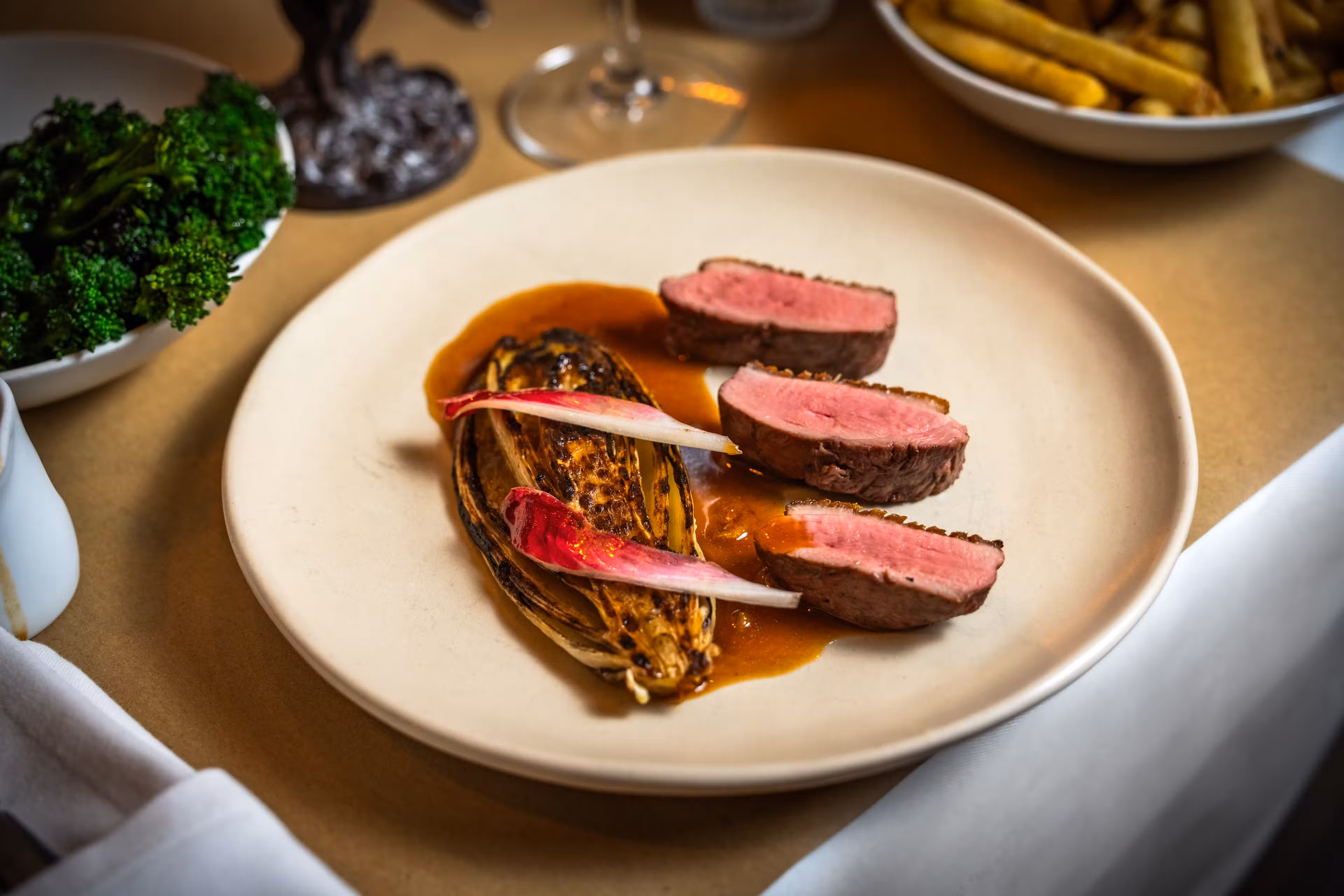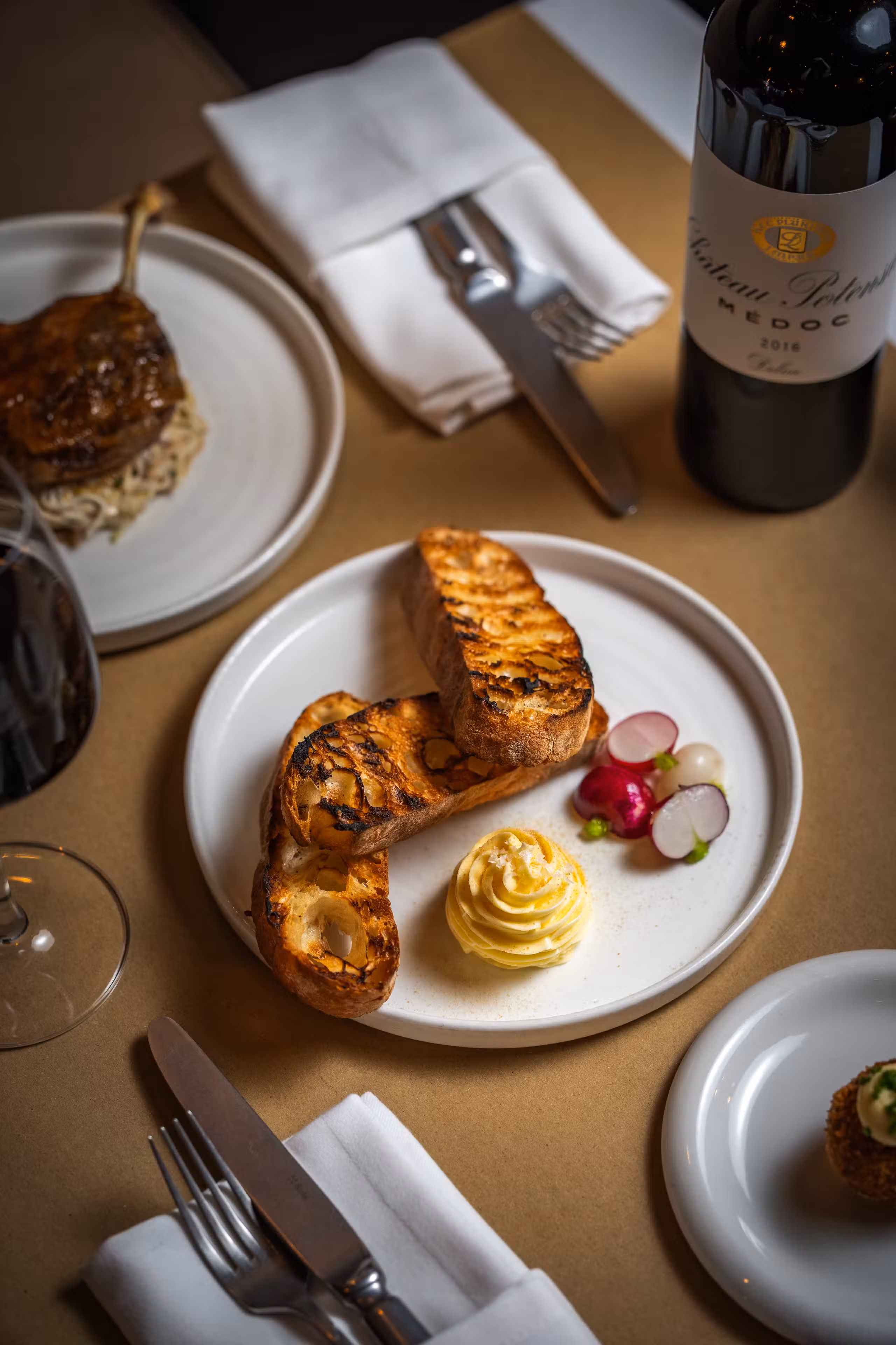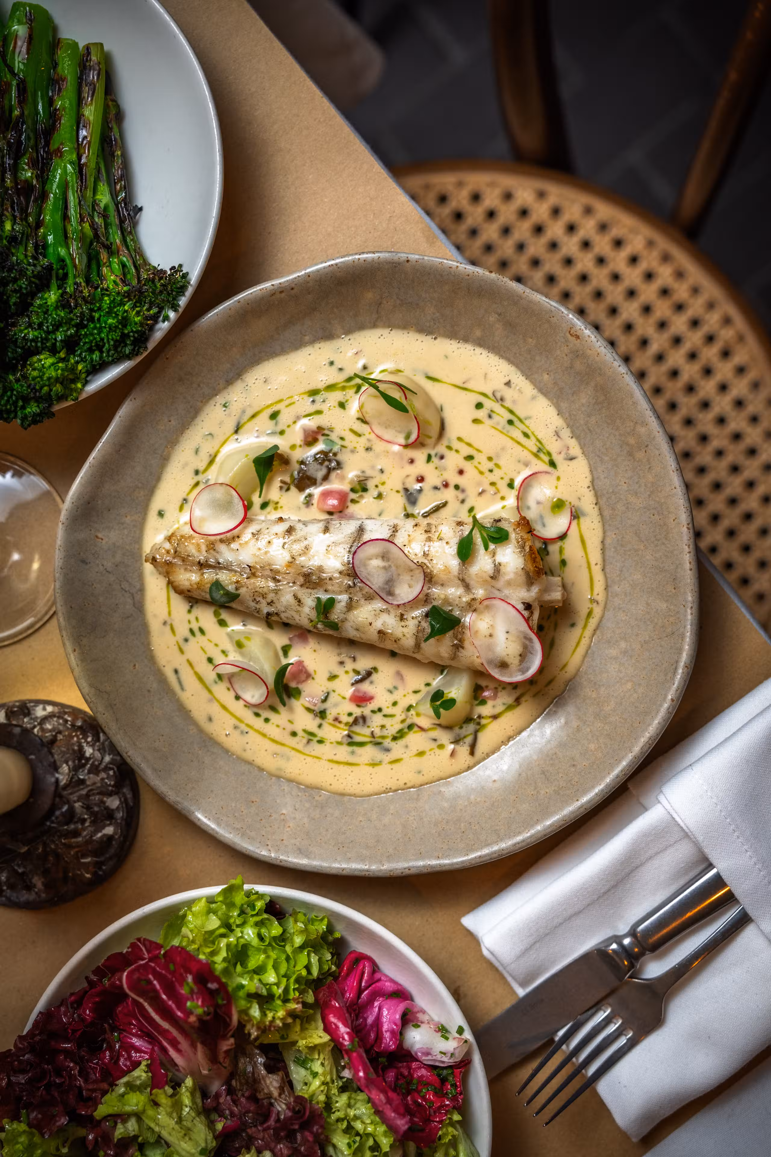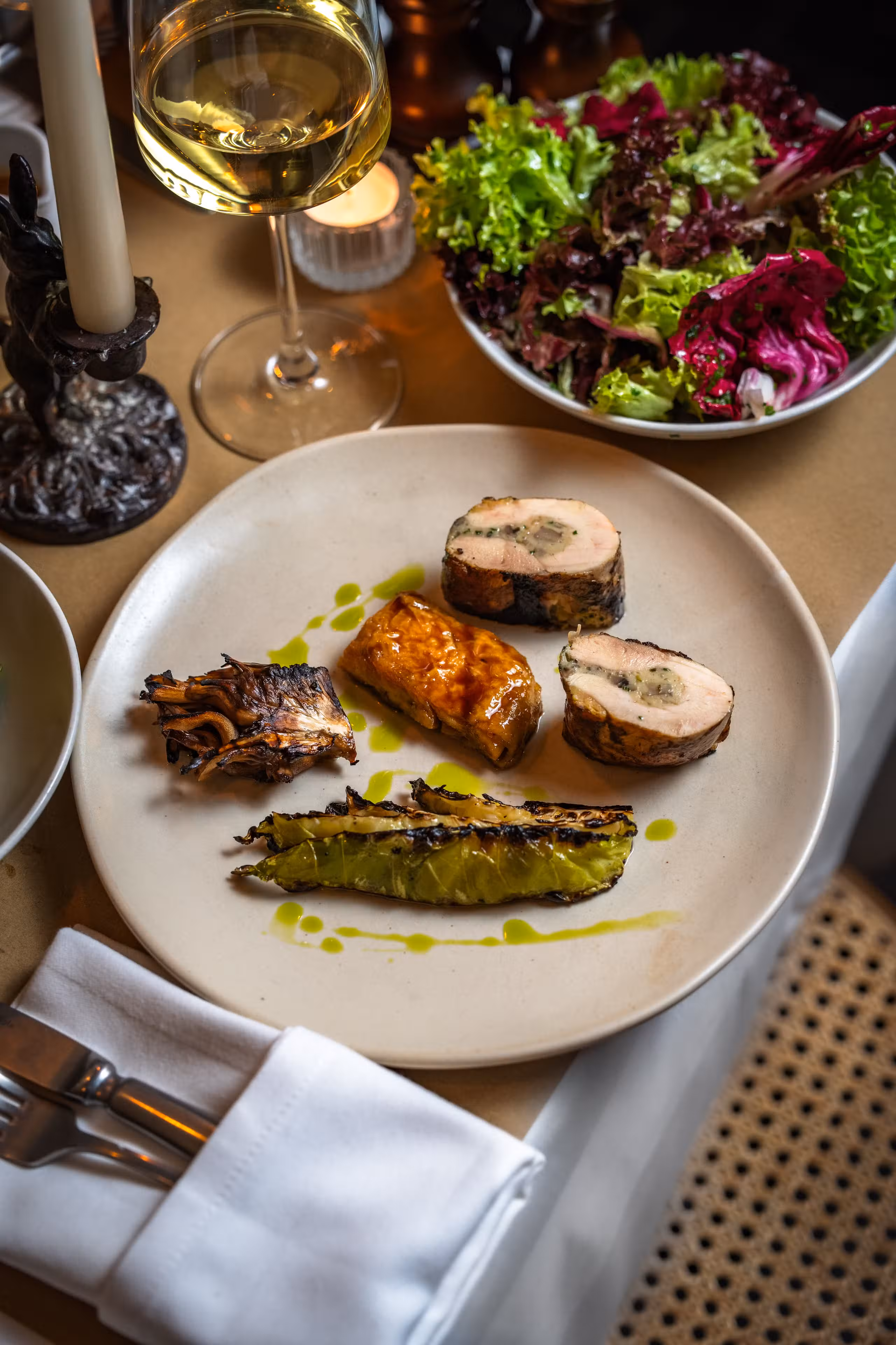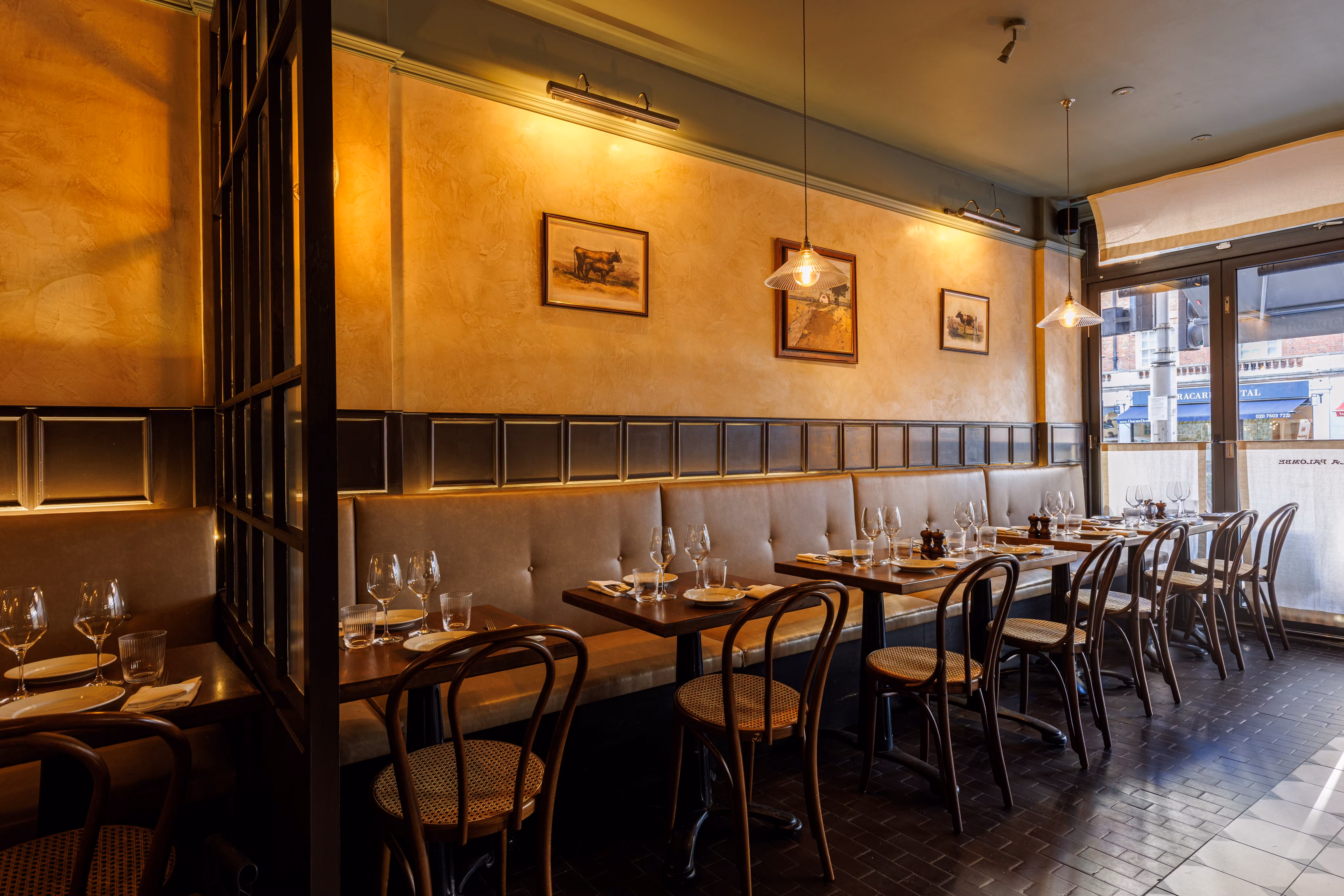 La Palombe is a new neighbourhood bistro from restaurateur James Chiavarini (also of Il Portico) & chef patron Jake Leach (previously head chef at the three Michelin starred The Ledbury).A large wood burning grill takes center stage where the majority of the dishes are cooked over live embers. James & Jake work together every shift to serve dishes with a real sense of terroir and provenance, including our speciality of wild foods foraged ourselves. Expect wild noisette venison, Wiltshire truffles (thanks to our house truffle dog Alba!), rare woodland mushrooms, and much wonderful produce from our small organic farm in Kent.The wine list is sourced entirely from independent producers, and regularly updated with a specialised focus on low intervention and organic wines.We are across the road to the Design Museum & Holland Park, a 10 minute walk from Kensington Olympia and a short distance to the Royal Albert Hall.