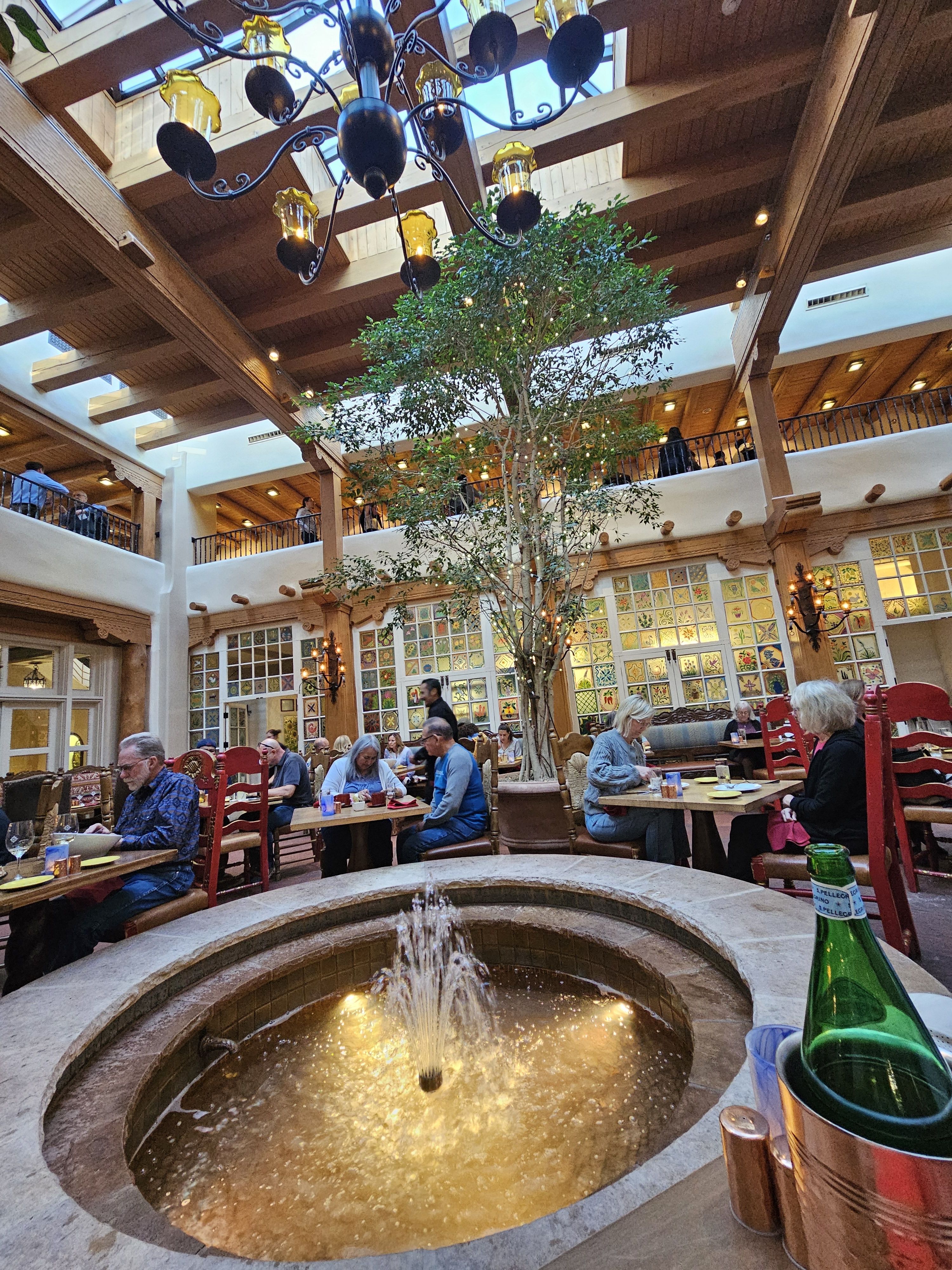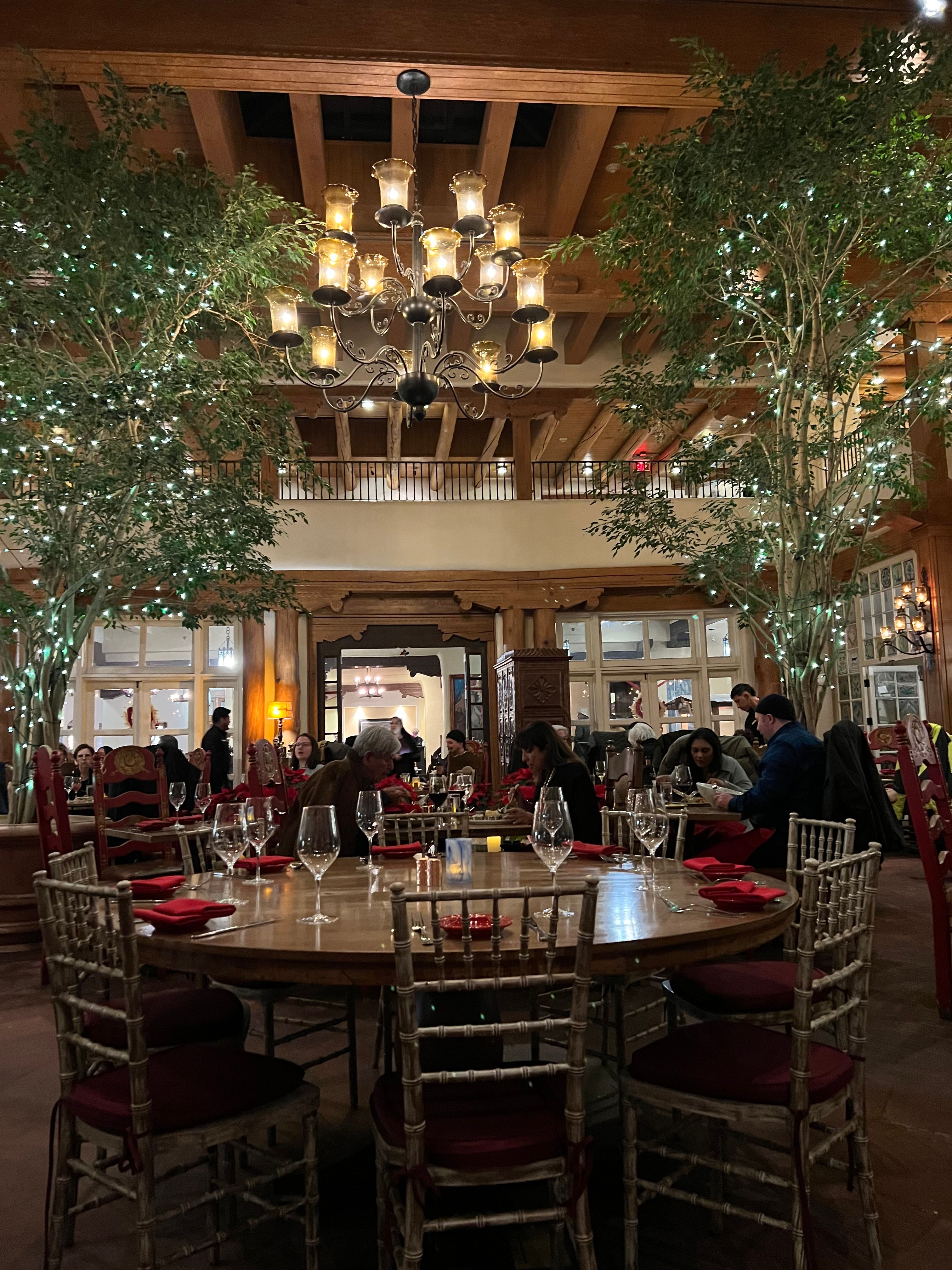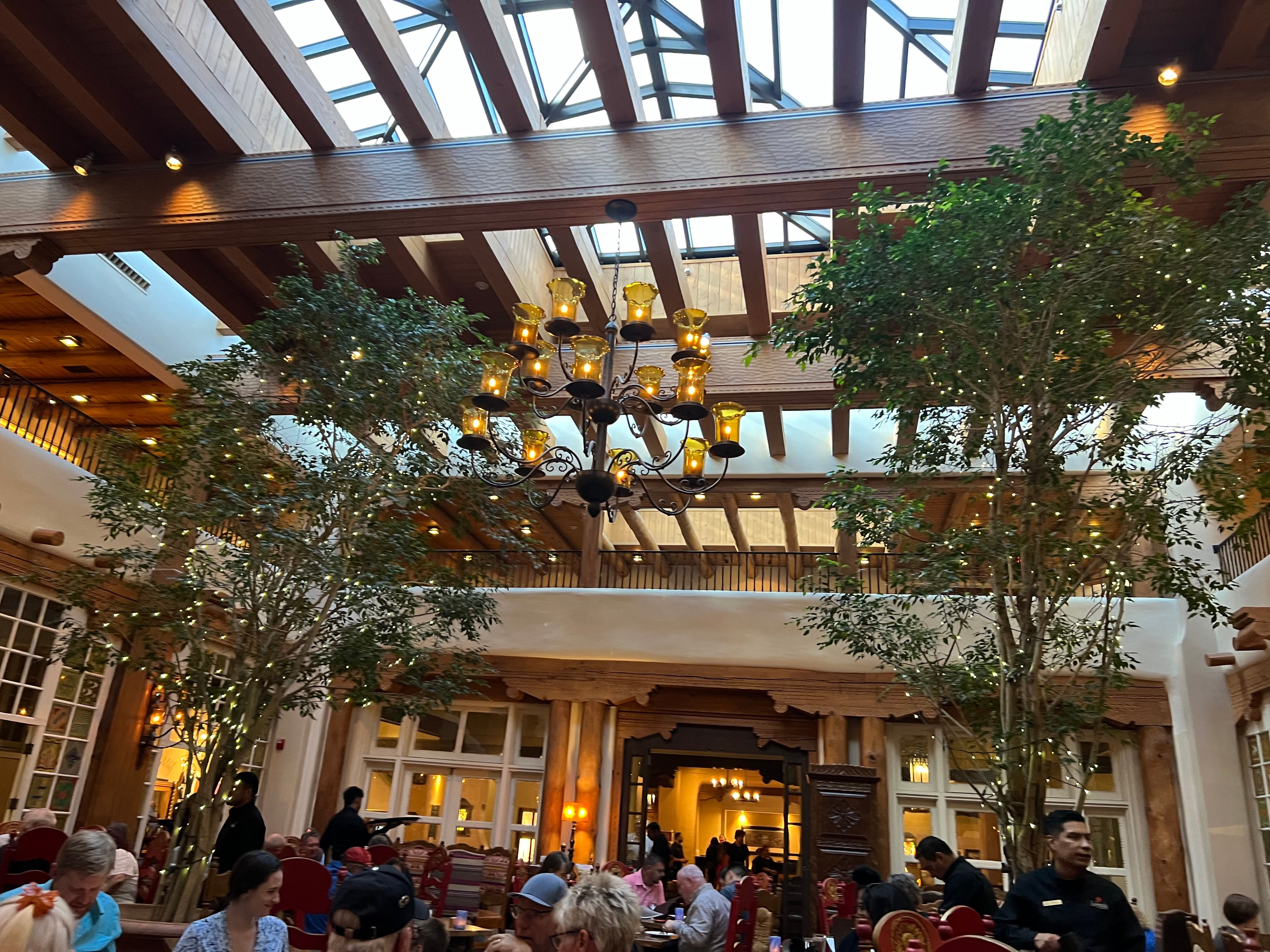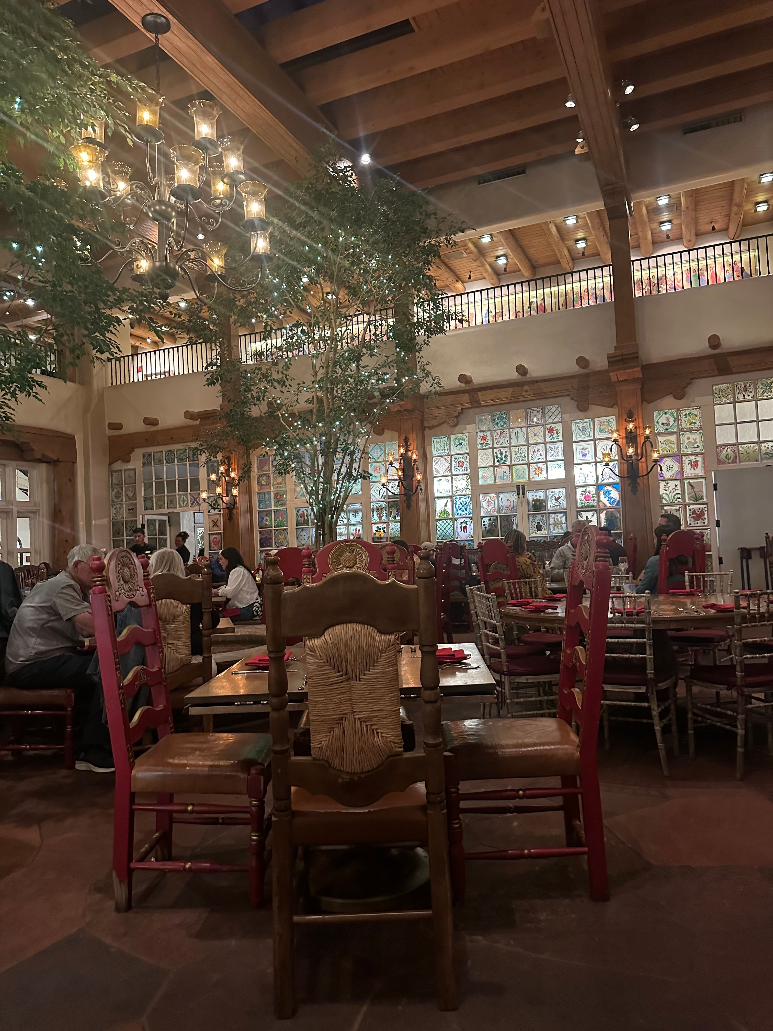 We do not accept reservations for breakfast and lunch, it is walk-in based only.In consideration of our dining reservations, we kindly ask you to abide by the following time courtesy standards: 1-2 Guests; 1 Hour 30 Minutes 3-5 Guests; 1 Hour 45 Minutes 6-8 Guests; 2 Hours 9-12 Guests; Reservations are only available at designated times (4:30-5:30, 7:30, 8:00) - 2 Hours 30 minutes*For parties of more than 12 guests please call our Dining Room at (505) 995-2334 La Plazuela was the hotel’s original 1920s patio and it retains that sunlit Old World charm. Skylights flood the dining room with natural light and handsome carved furnishings, artisanal lighting, and our much-loved hand painted windows create a beautiful, inviting room to gather, to dine and to make memories in. The menu was crafted to showcase old favorites with New World influences and authentic New Mexican cuisine. La Plazuela at La Fonda on the Plaza is Santa Fe’s gathering place. Come dine with us!