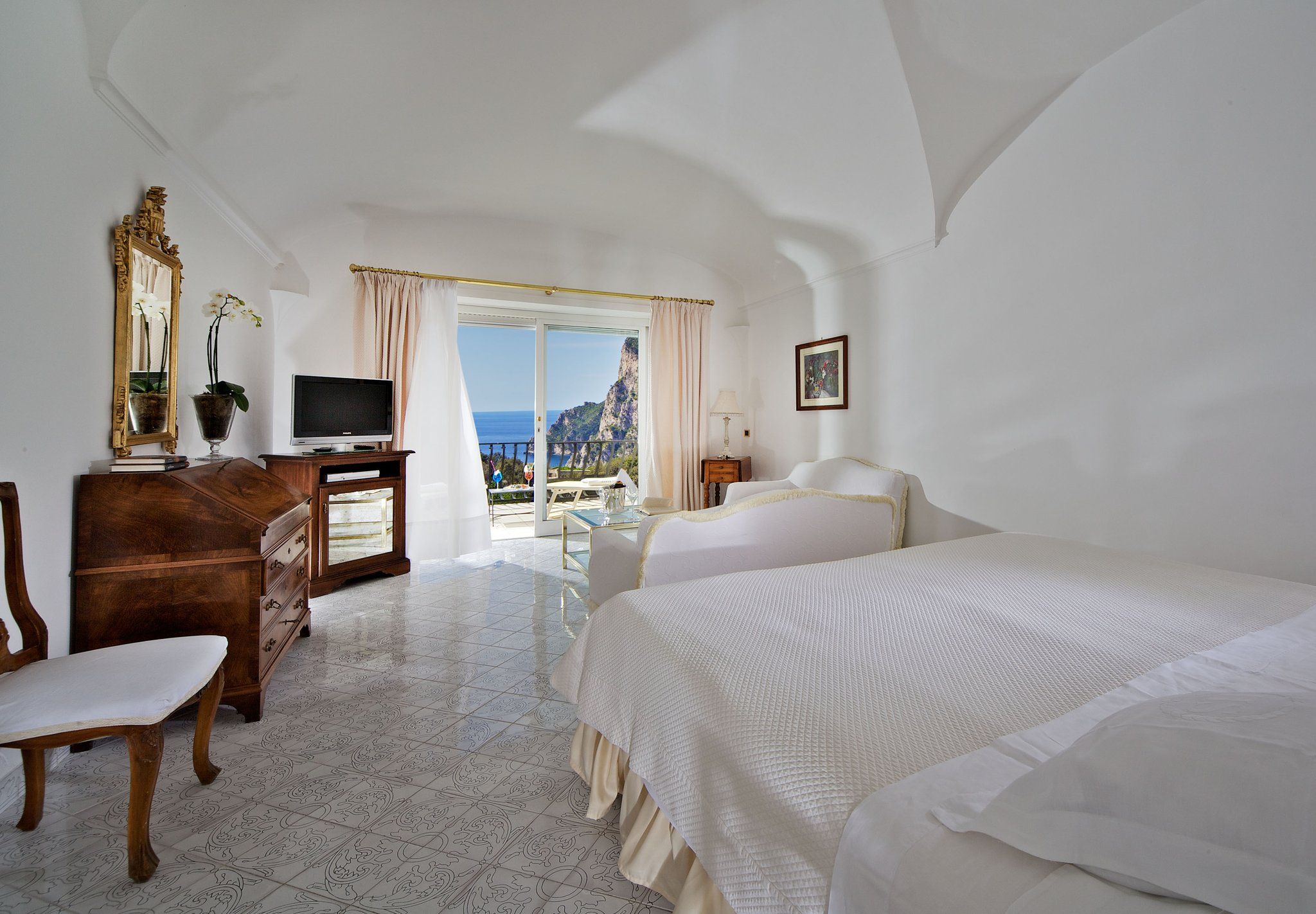 Set on the Island of Capri, this 5-star DELUXE hotel features 2 summer outdoor pools with panoramic views of the Mediterranean Sea. All elegant rooms include satellite TV, free Wi-Fi and air conditioning.