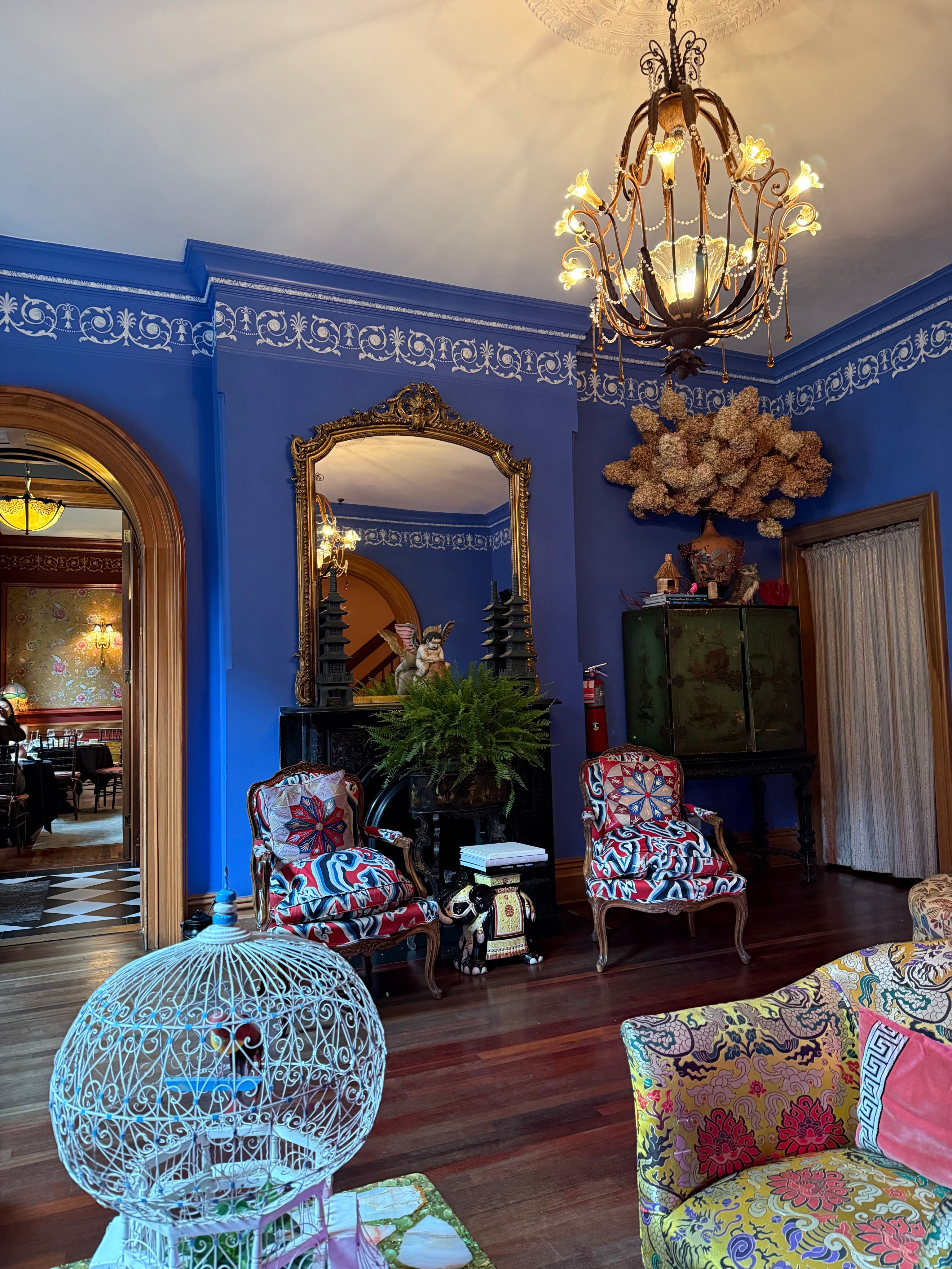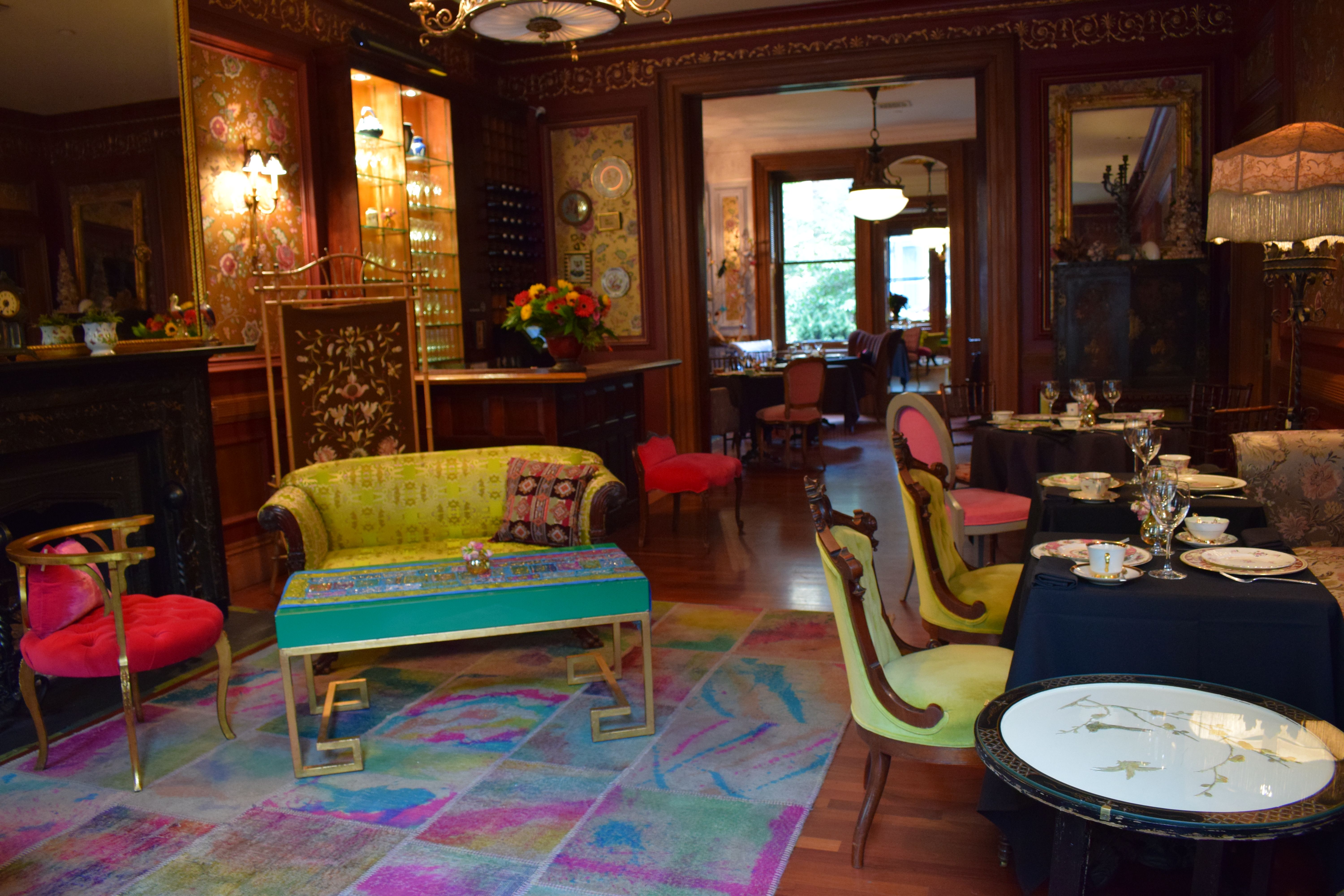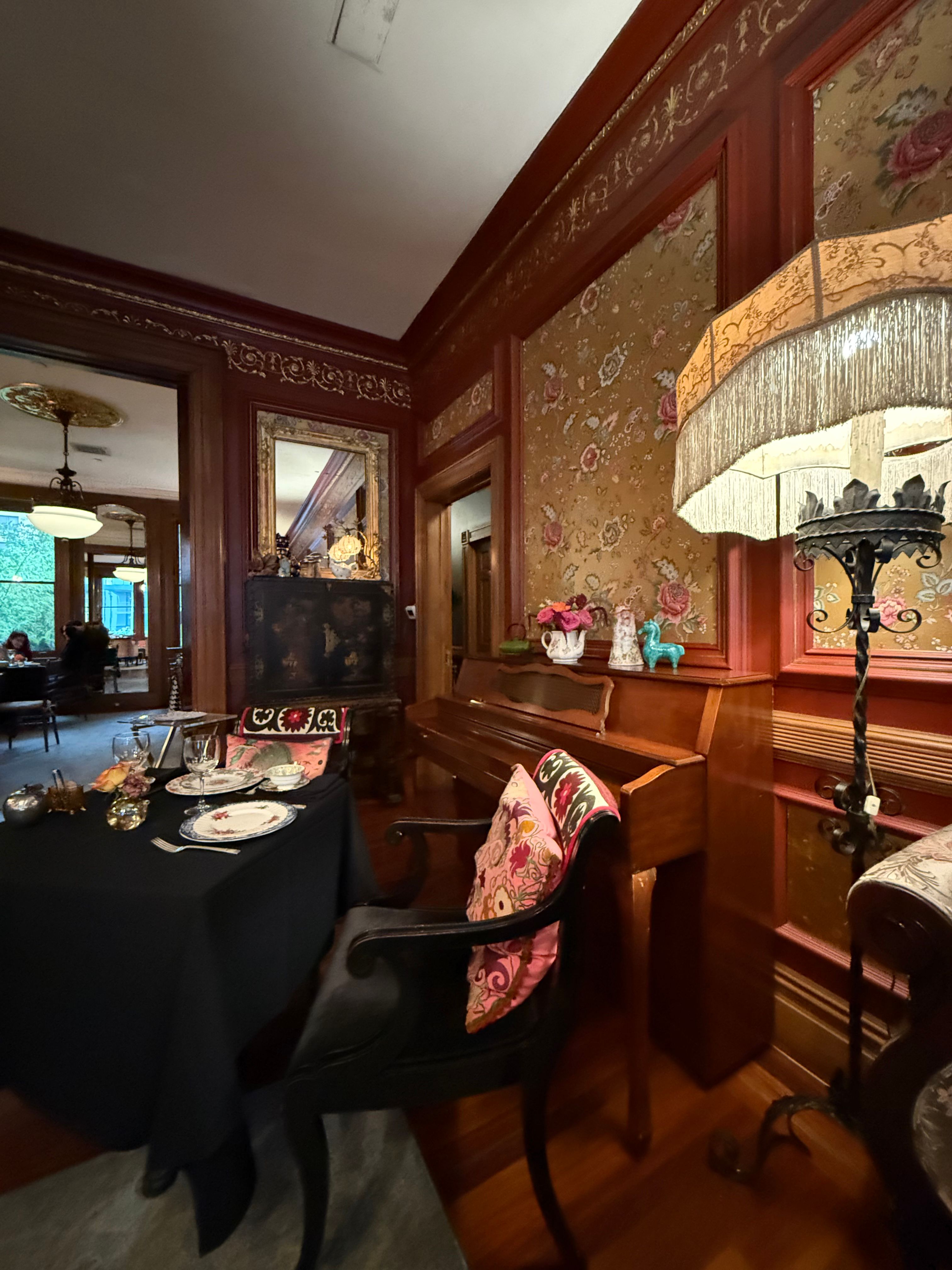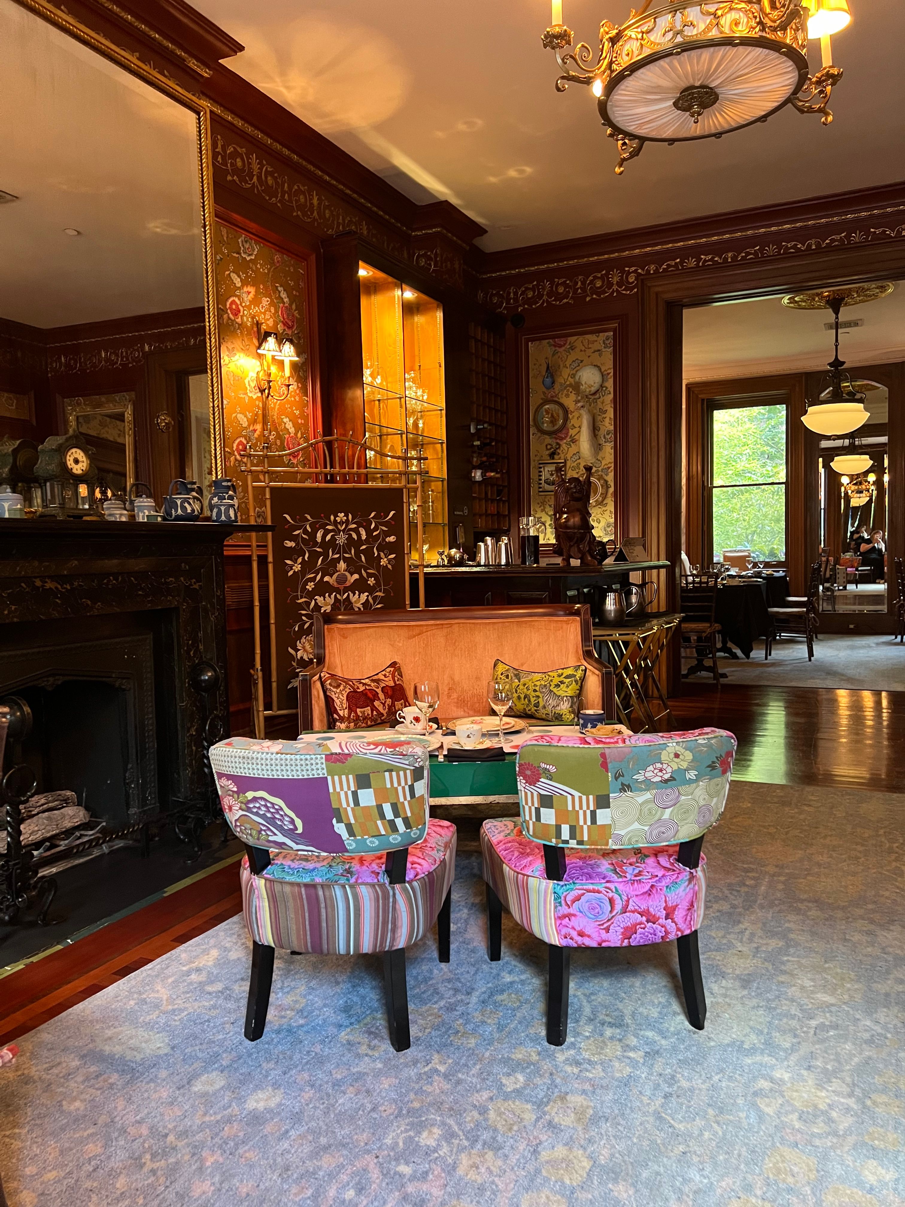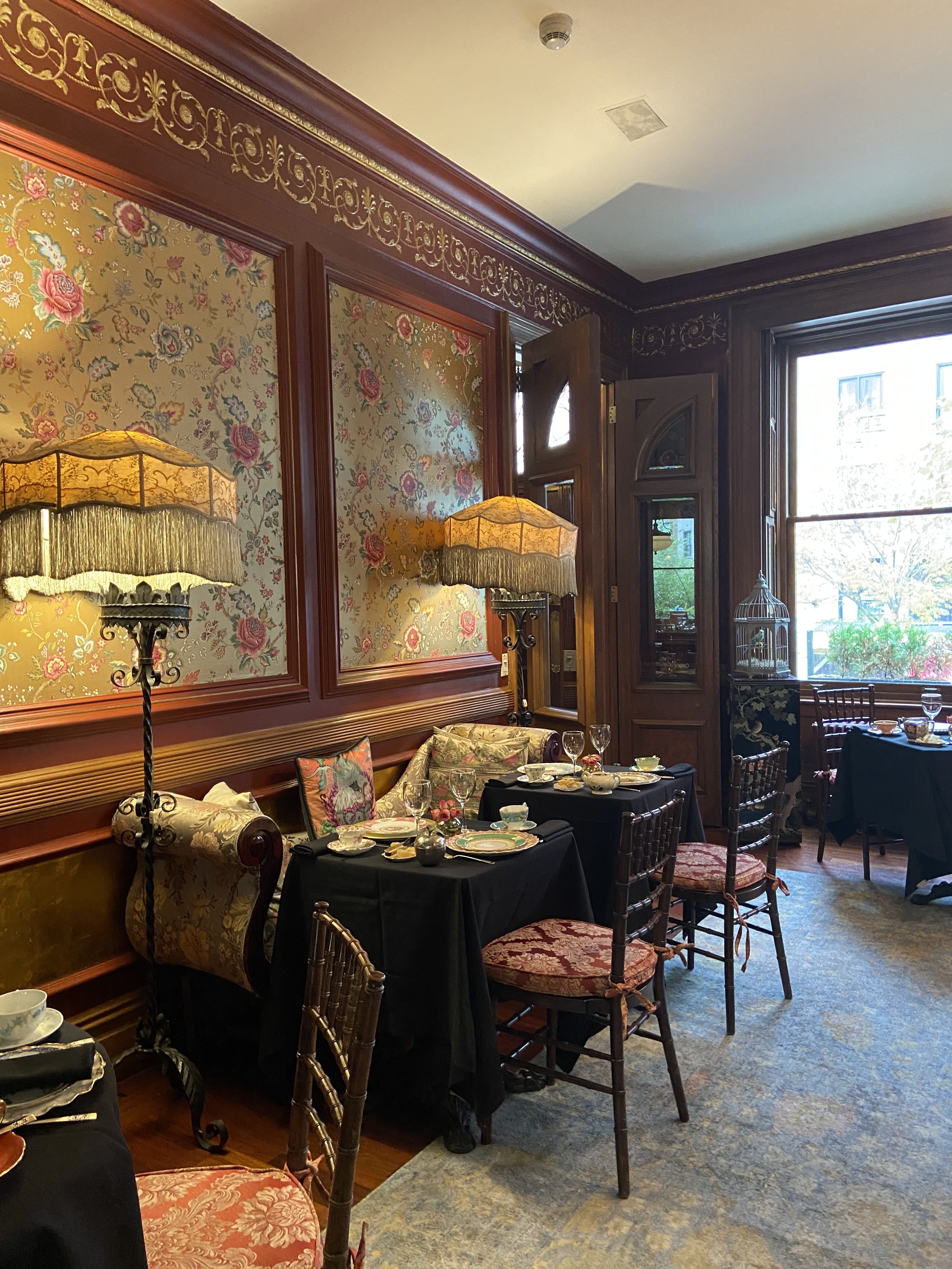 Our $89 prix fixe tea service is offered Tuesday through Sunday.Lady Mendl's is an unconventionally chic tea salon housed within a Georgian brownstone in the Gramercy Park neighborhood of Manhattan. An opulent five-course tea is served in an eclectic and whimsical parlor by a doting staff. Patrons sip tea from hand culled vintage Wedgwood teacups as they nibble dainty finger sandwiches and house baked scones. Please note that our entrance is only accessible via a staircase of 10 steps. We do not have an elevator.