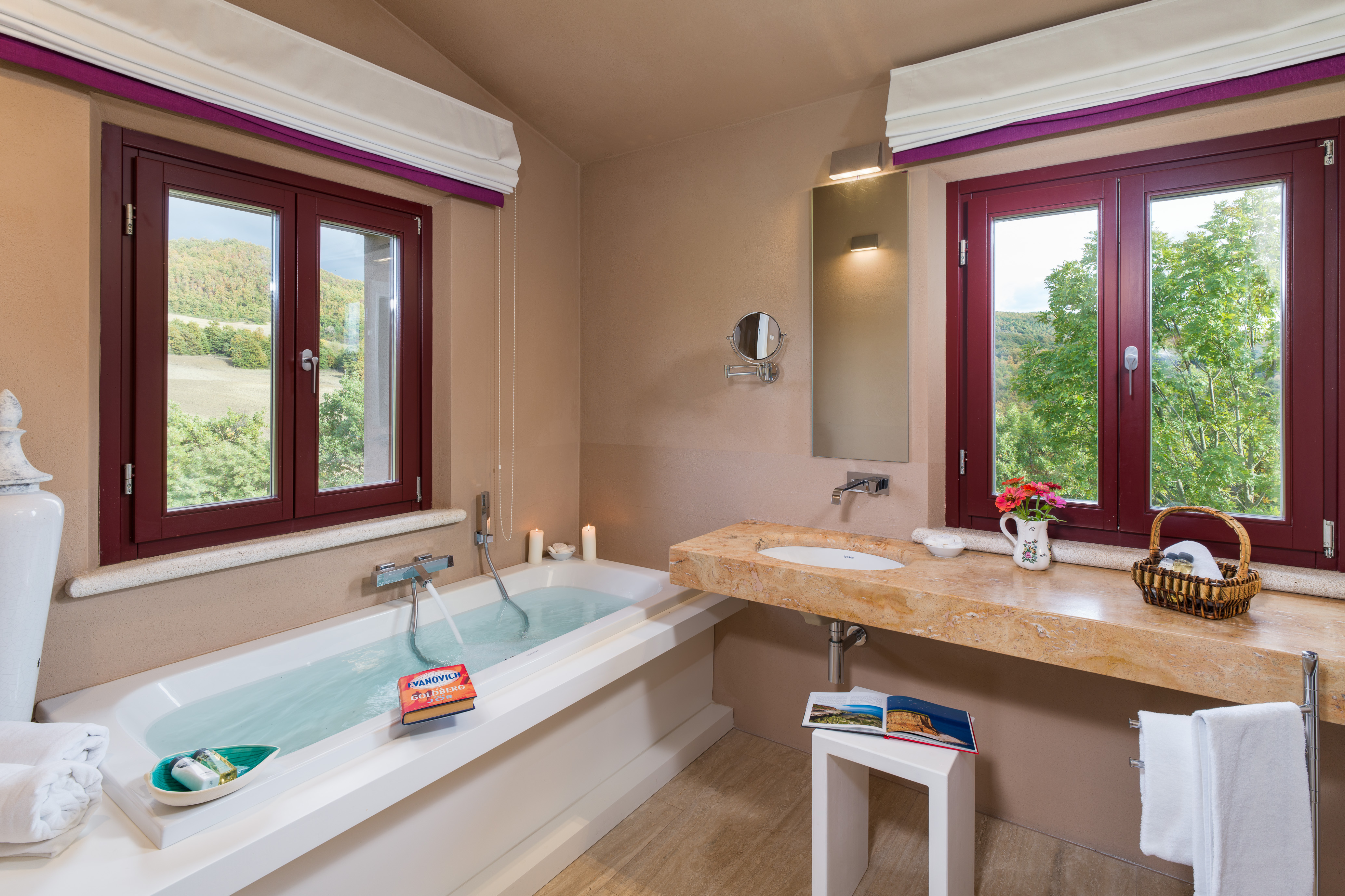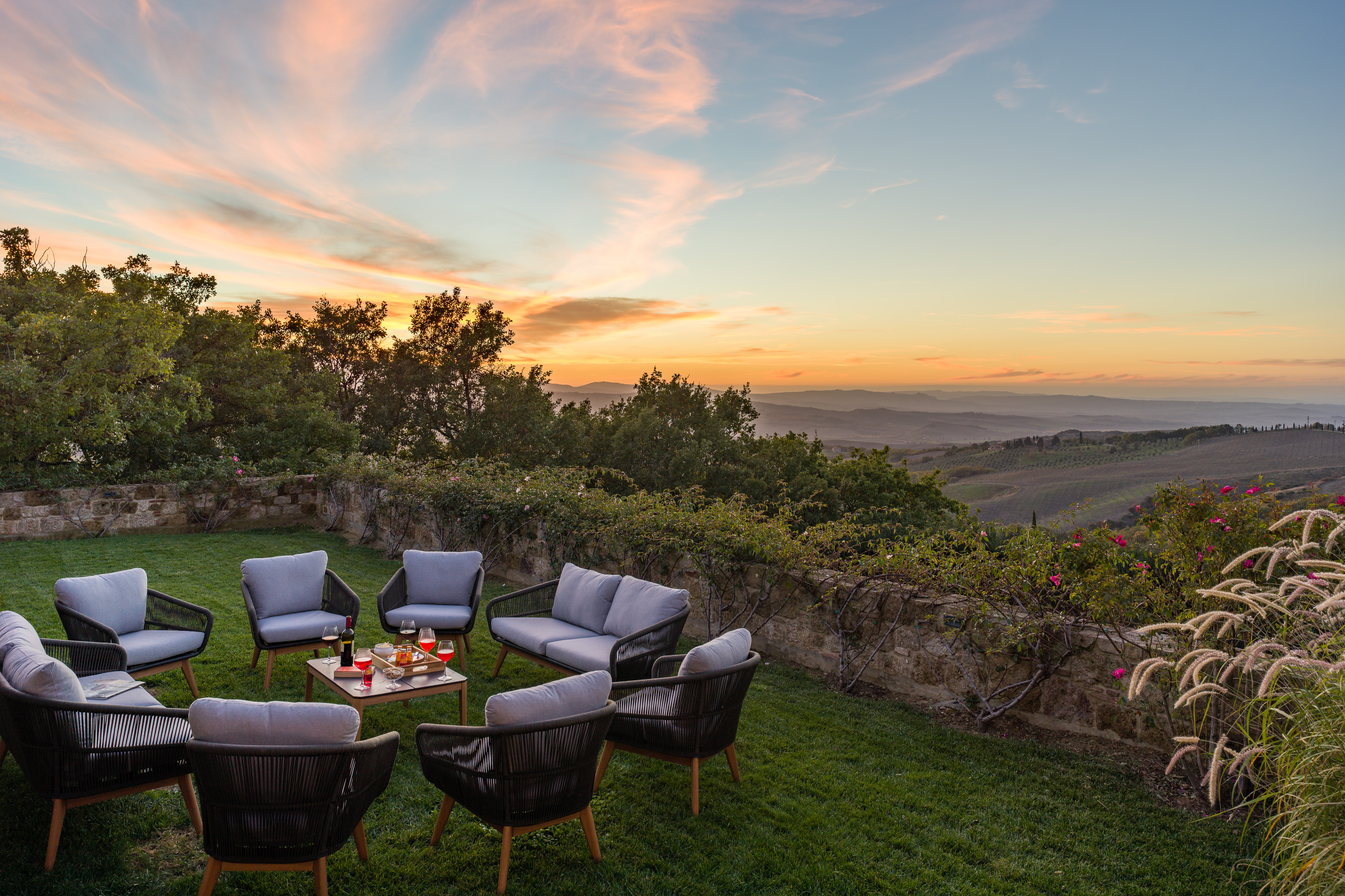You can't beat the views of the beautiful Val D'Orcia, itself a UNESCO World Heritage Site, from this Tuscan farmhouse lying in the Siena Province on a private two-acre estate. Tear yourself away from the vistas, and you'll find a deft renovation, combining contemporary interiors and historic charm. An excellent choice for a large group of friends or family, there's plenty of space to spill out and feel at home here. Cool off from the Tuscan sun in the infinity pool. Put to use the vast, chef-worthy kitchen (we're talking two dishwashers, two ovens, and some) for a big dinner party – a private chef is bookable for fine dining. Or keep things easy and fire up the barbecue or pizza oven outside as breath-taking views of the valley spread out before you – best seen beneath the pergola at sunset with a glass of something chilled. And on chiller nights, hunker down beside the fireplace with a good book – there are two living rooms to choose from. When it's time to lay your head, hop in the home's elevator and take your pick from the many bedrooms, boasting king-sized beds and separate bathrooms. We'll let you decide who lucks out on that ground floor suite with bi-folds opening onto the lawned gardens. Should you ever wish to leave this idyll, you'll find you're in an excellent base to uncover Tuscany's vineyards and historic villages, starting in Sarteano, just a ten-minute drive away. With its tempting trattorias and beguiling historic charms, you'll be off to a flying start.