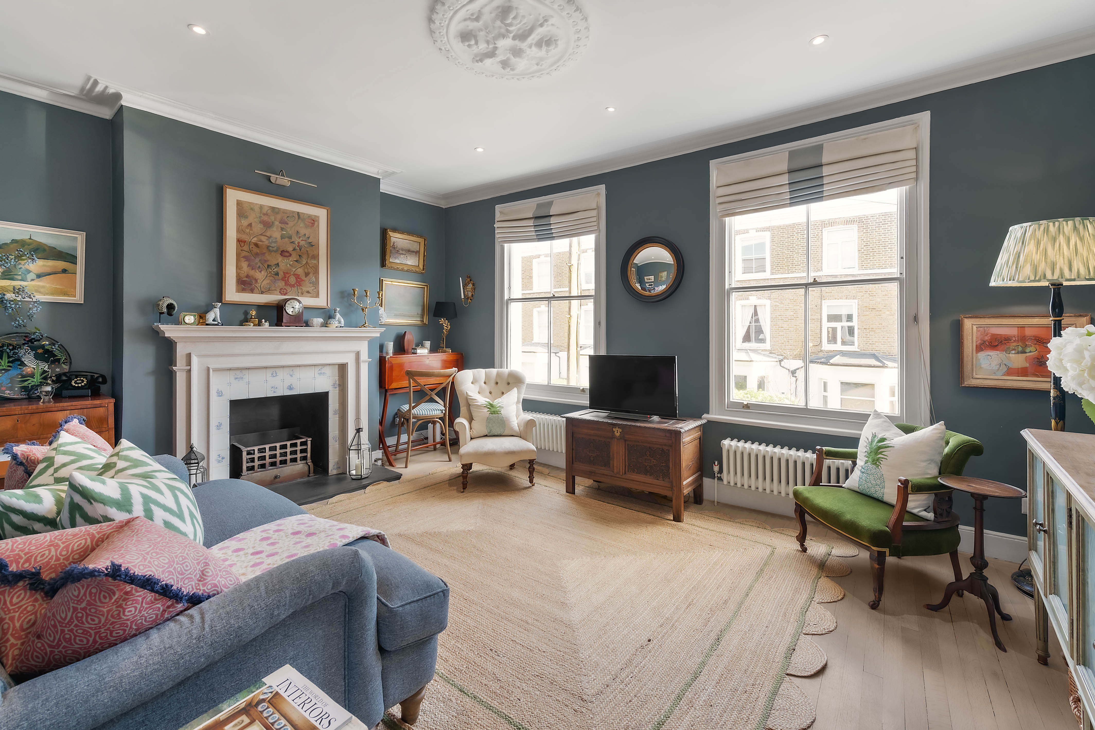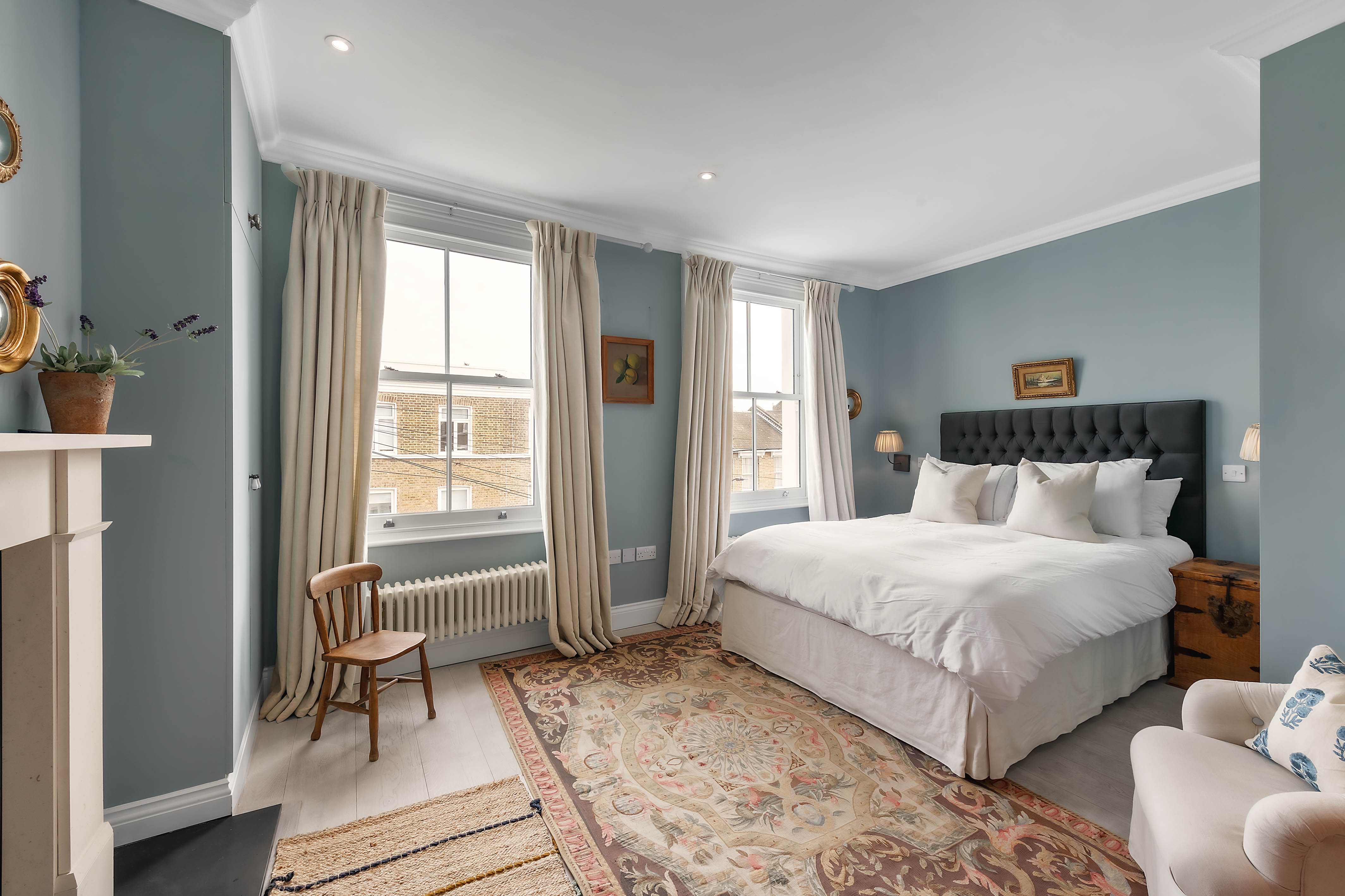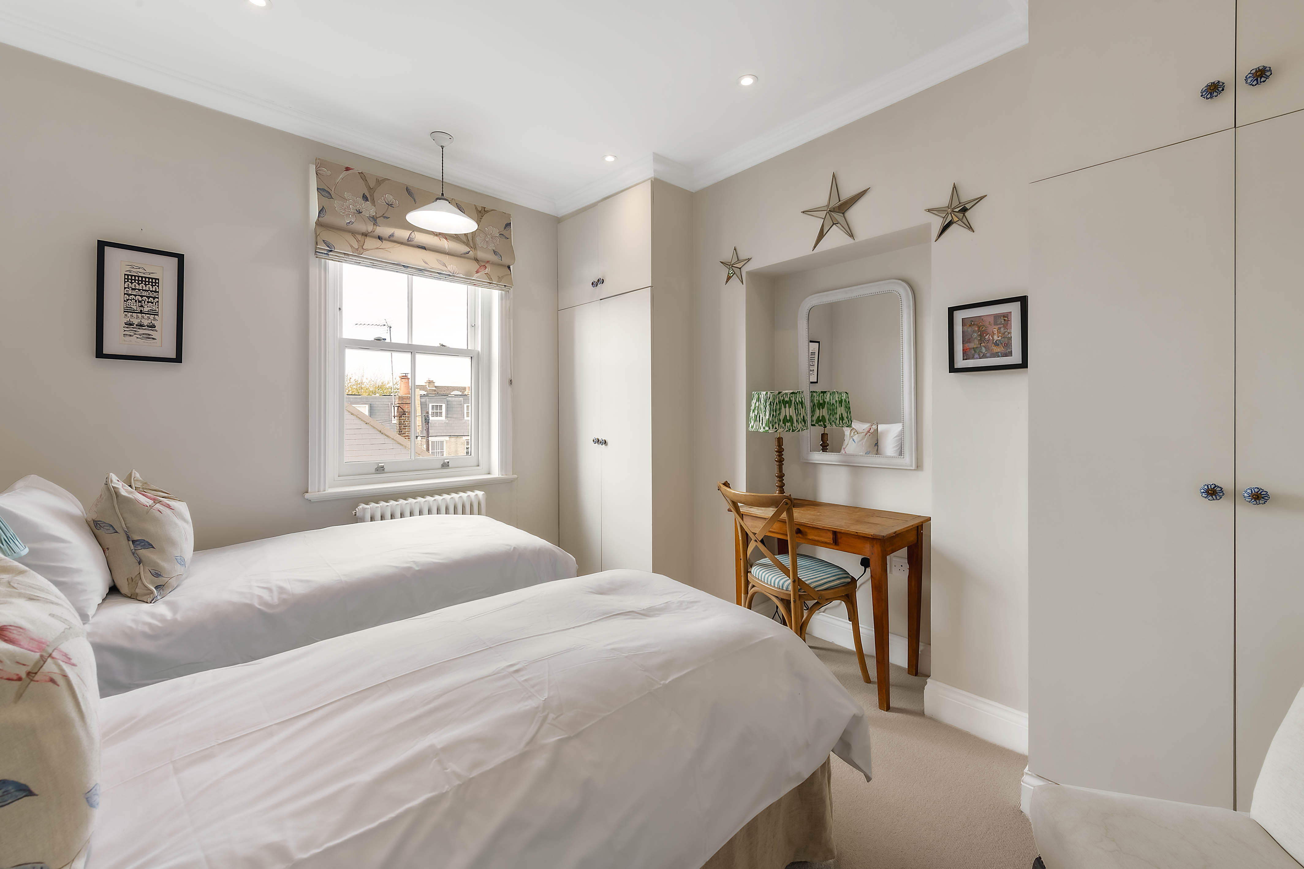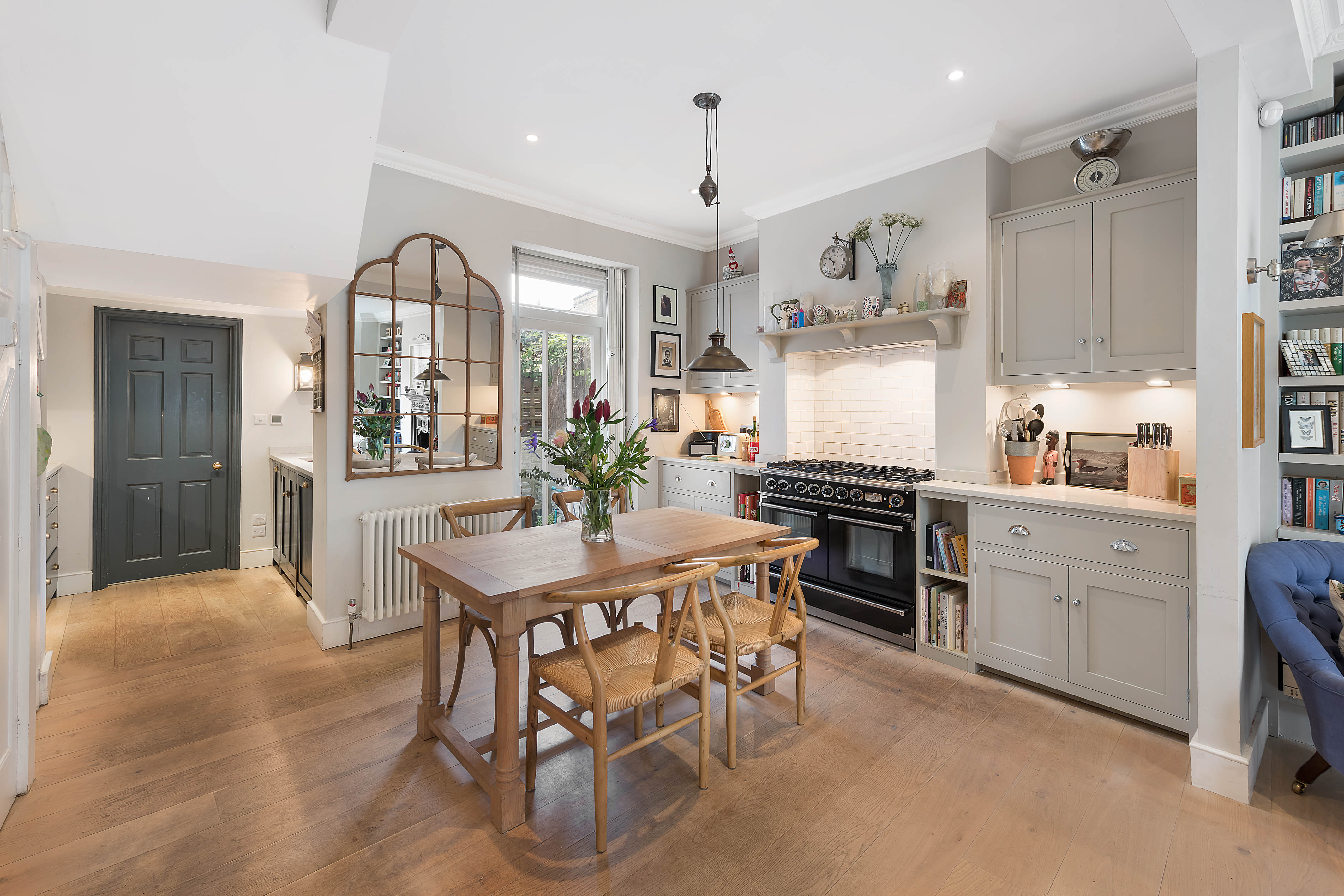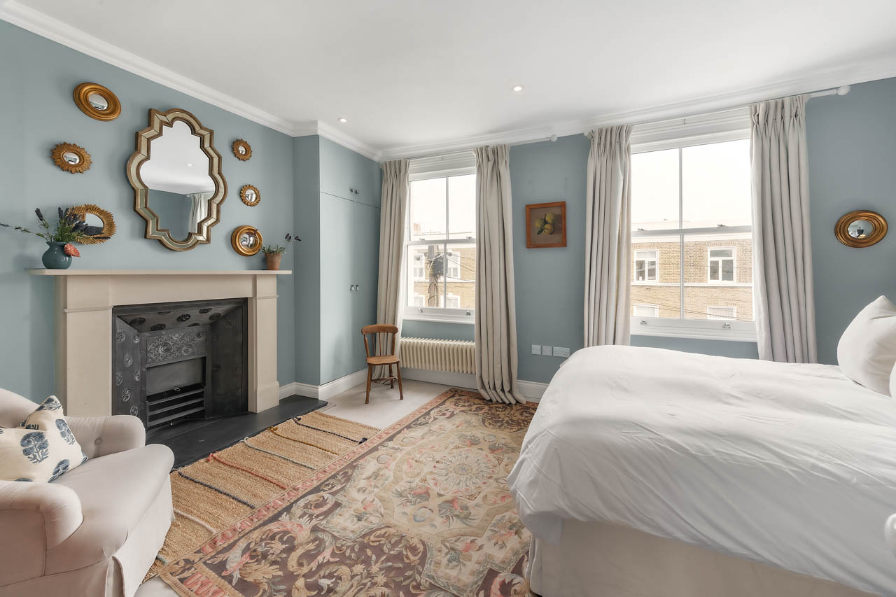 A warm and welcoming family home in the heart of West London, this beautiful townhouse is the ideal base for you and your family to make the most of your time in the capital. Inside, the open kitchen/living room is the heart, with a large range cooker that's perfect for family feasts, with a nice breakfast table and cosy living room, complete with lots of books and a roaring fireplace. We can imagine lazy Sunday afternoons snoozing on the sofa after a roast. Upstairs, you'll find a second sitting room, with a laptop-friendly workspace in case those emails can't wait. All three bedrooms are decorated in neutral grey tones that help you unwind after a busy day, though the third bedroom mixes things up with some fun printed wallpaper, plus there's plenty of storage space so you can unpack and feel truly at home. At the very top of the house, you'll find a rooftop terrace overlooking the neighbourhood. It's an excellent spot for sundowners at the end of a busy day. And if you prefer your pints on draught, there are a couple of great local pubs. Elsewhere, Ravenscourt Park and the River Thames are close by, while the vast Westfield shopping centre takes care of your shopping needs. There isn't much need to venture into Central, but if you'd like to catch a show, then you're just over half an hour from London's glittering West End on the Piccadilly Line.