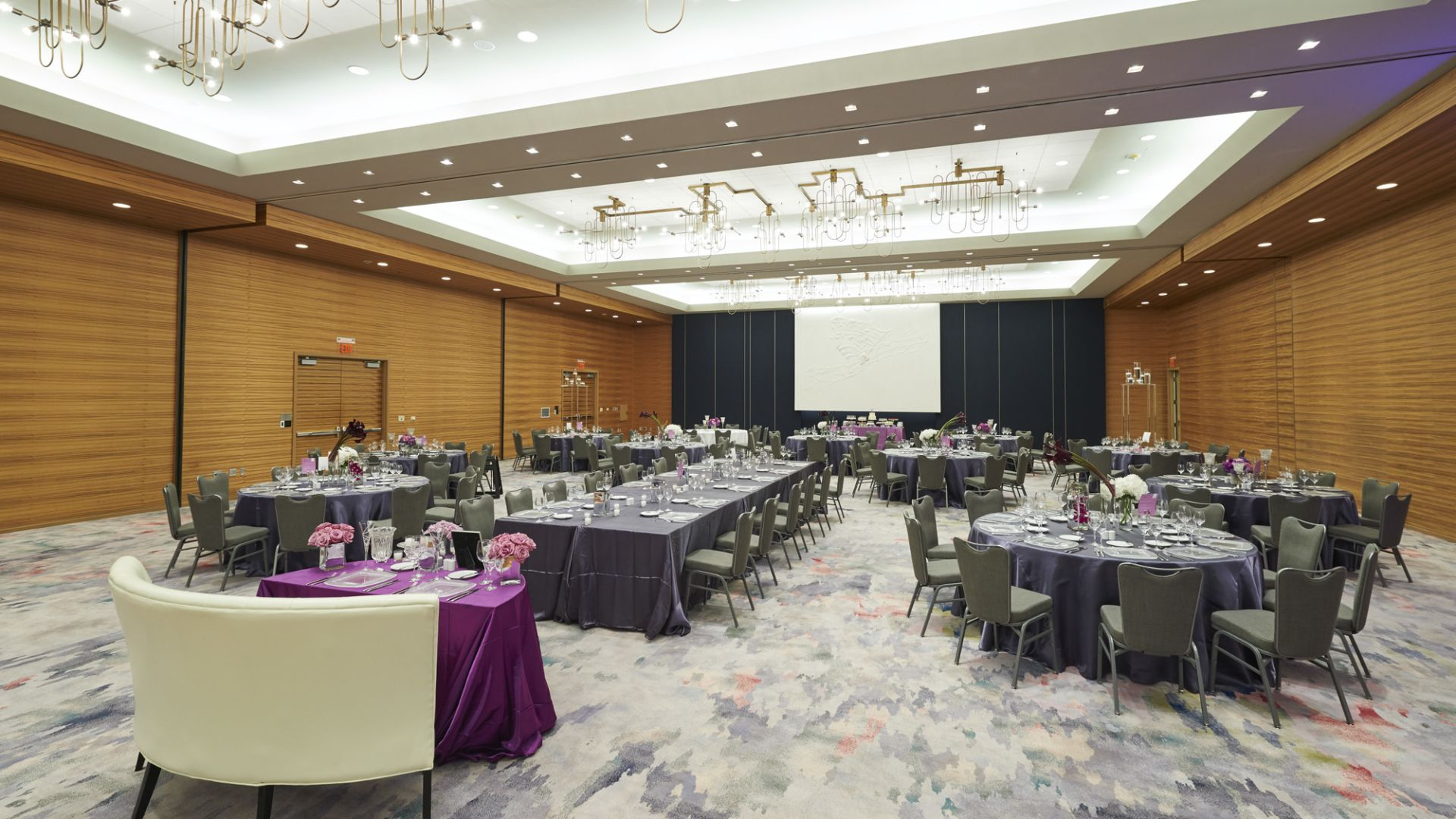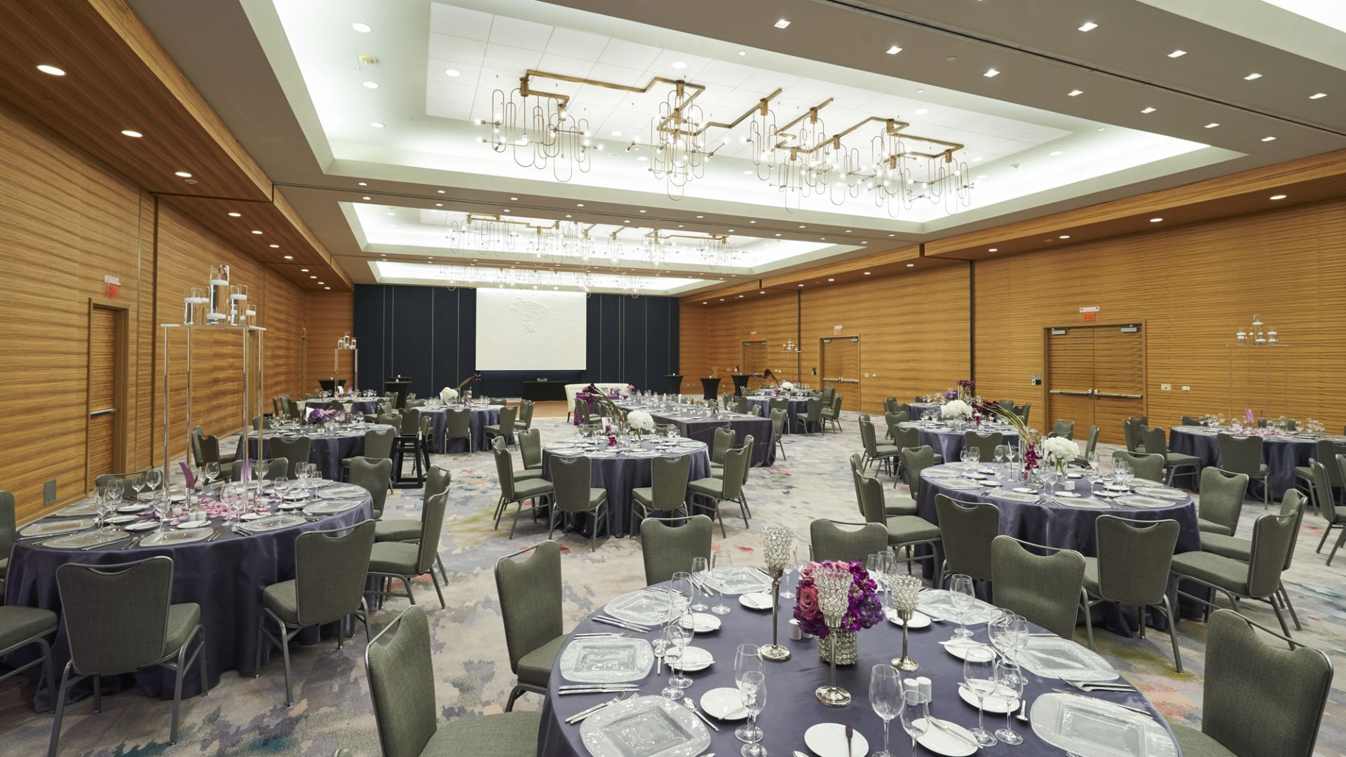 Our stunning ballroom featuring 17-foot ceilings can accommodate up to 360 guests for ceremonies and seated reception meals—or up to 600 guests for a cocktail reception.