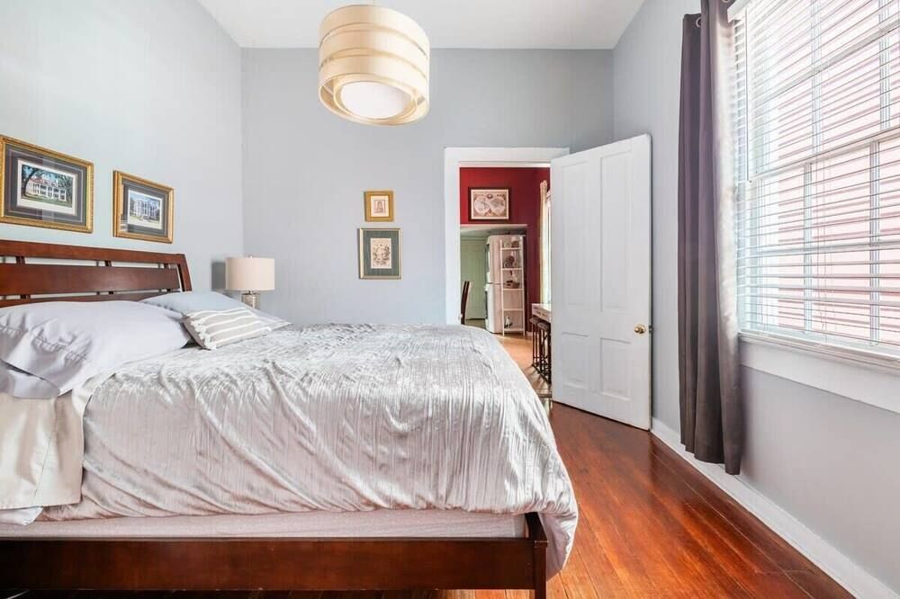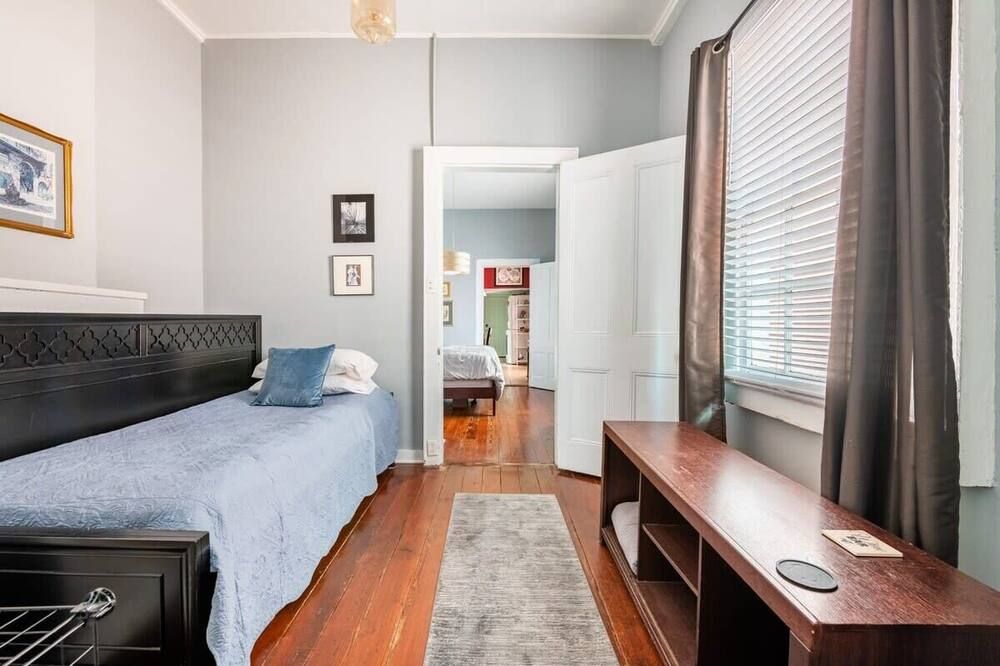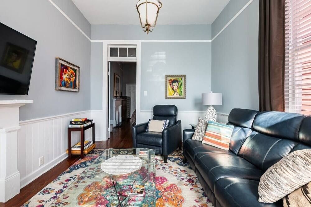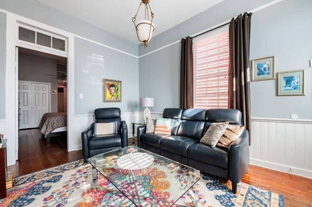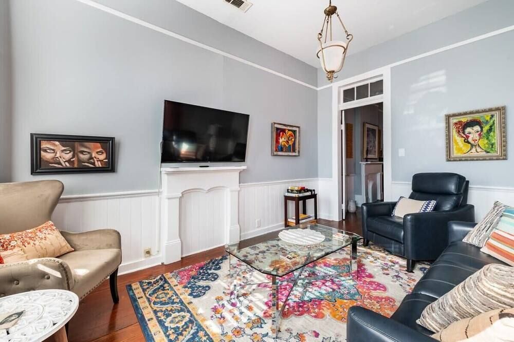 The history of Faubourg Marigny is super rich with creativity - known for its jazz and creole musical lineage - this home exudes the artistic vibrancy of the neighbourhood it's nestled in. If you’re visiting for Mardi Gras, you couldn’t be staying in a better spot.Located on oak-lined Elysian Field Avenue, this shotgun house features a traditional linear floorplan with bright open rooms that take on a classic French style. The reclaimed furnishings, raw-painted walls and eclectic design elements seamlessly blend European aesthetics with Southern soul. Spend the morning in your private green space off the kitchen, where you can sit with a coffee and the sound of the fountain. Your drawing-room oozes romance with its chandelier, antique pink rug and grand stone fireplace, where better than to play a relaxed game of billiards?Start the day musing the books at Baldin & Co across the street before heading to the neighbouring French Quarter. Grab a Creole brunch at Saint John - we recommend the eggs Sardou with andouille or the blue crab omelette, then take a walk through Crescent Park - a greenway trail passing alongside the Mississippi River providing unparalleled views and native vegetation. The afternoon can be spent exploring Vodou art at New Orleans Historic Voodoo Museum before a Southern French dinner with a Japanese touch at N7 in the Bywater. If you’re feeling afters, discover Bourbon Street’s jazz bars just a short walk away from home or head back for cocktails in your exposed brick kitchen which has plenty of space for dancing.