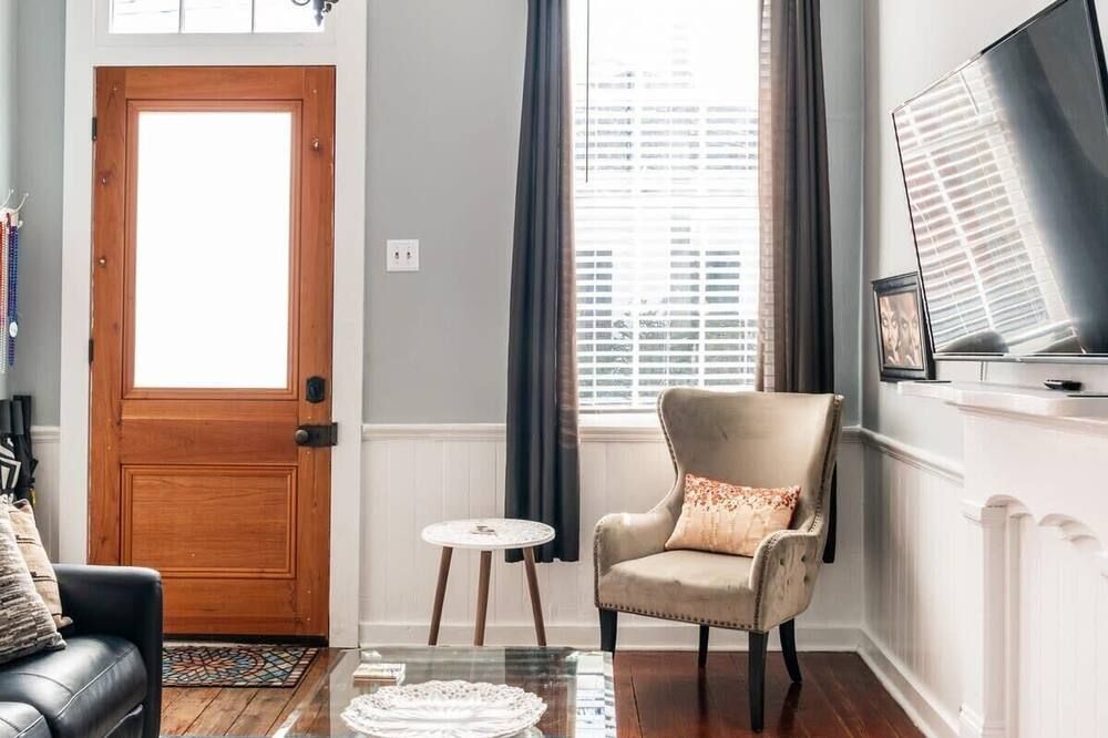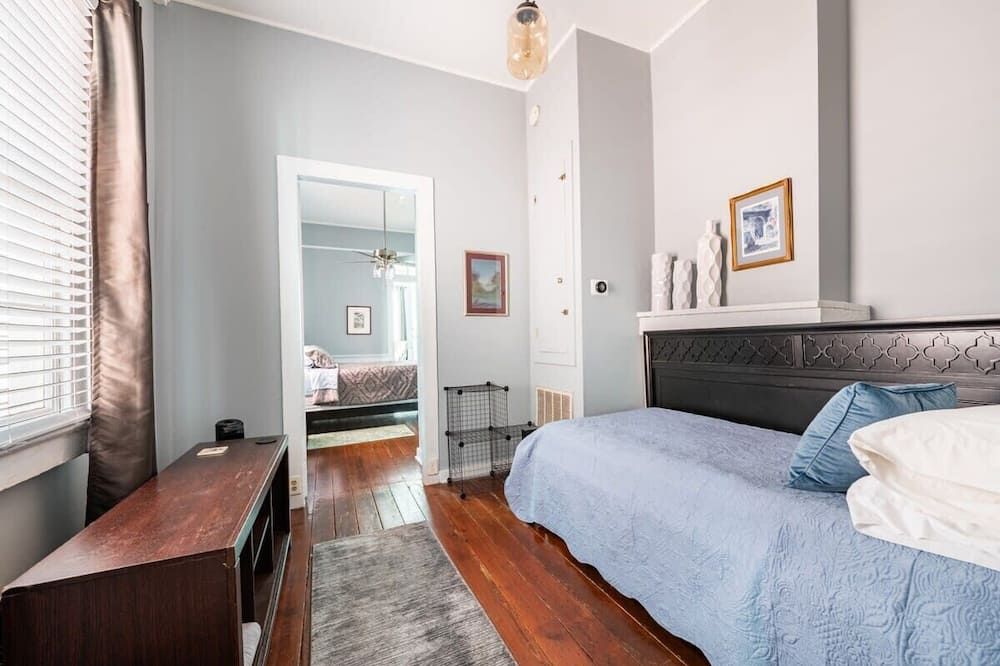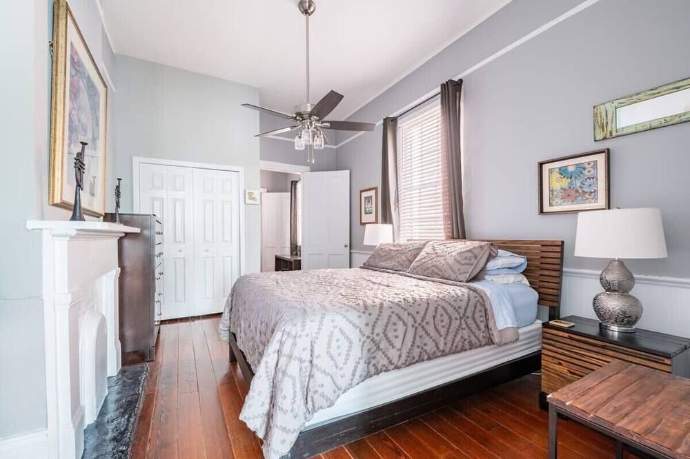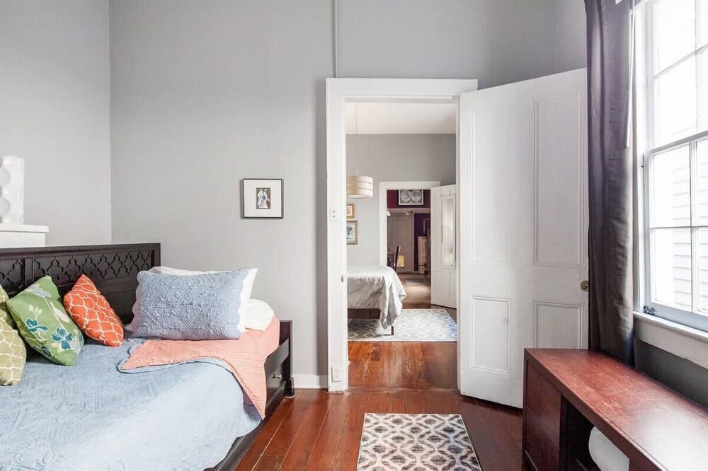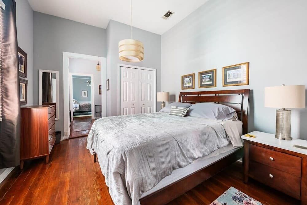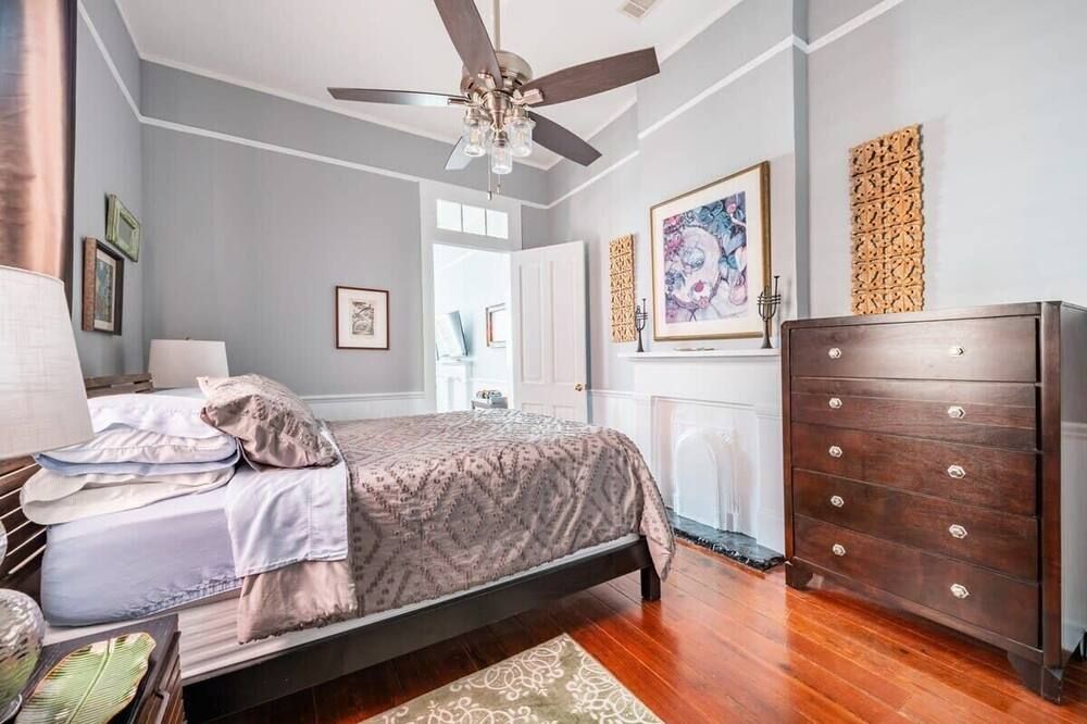 The history of Faubourg Marigny is super rich with creativity - known for its jazz and creole musical lineage - this home exudes the artistic vibrancy of the neighbourhood it's nestled in. If you’re visiting for Mardi Gras, you couldn’t be staying in a better spot.Located on oak-lined Elysian Field Avenue, this shotgun house features a traditional linear floorplan with bright open rooms that take on a classic French style. The reclaimed furnishings, raw-painted walls and eclectic design elements seamlessly blend European aesthetics with Southern soul. Spend the morning in your private green space off the kitchen, where you can sit with a coffee and the sound of the fountain. Your drawing-room oozes romance with its chandelier, antique pink rug and grand stone fireplace, where better than to play a relaxed game of billiards?Start the day musing the books at Baldin & Co across the street before heading to the neighbouring French Quarter. Grab a Creole brunch at Saint John - we recommend the eggs Sardou with andouille or the blue crab omelette, then take a walk through Crescent Park - a greenway trail passing alongside the Mississippi River providing unparalleled views and native vegetation. The afternoon can be spent exploring Vodou art at New Orleans Historic Voodoo Museum before a Southern French dinner with a Japanese touch at N7 in the Bywater. If you’re feeling afters, discover Bourbon Street’s jazz bars just a short walk away from home or head back for cocktails in your exposed brick kitchen which has plenty of space for dancing.