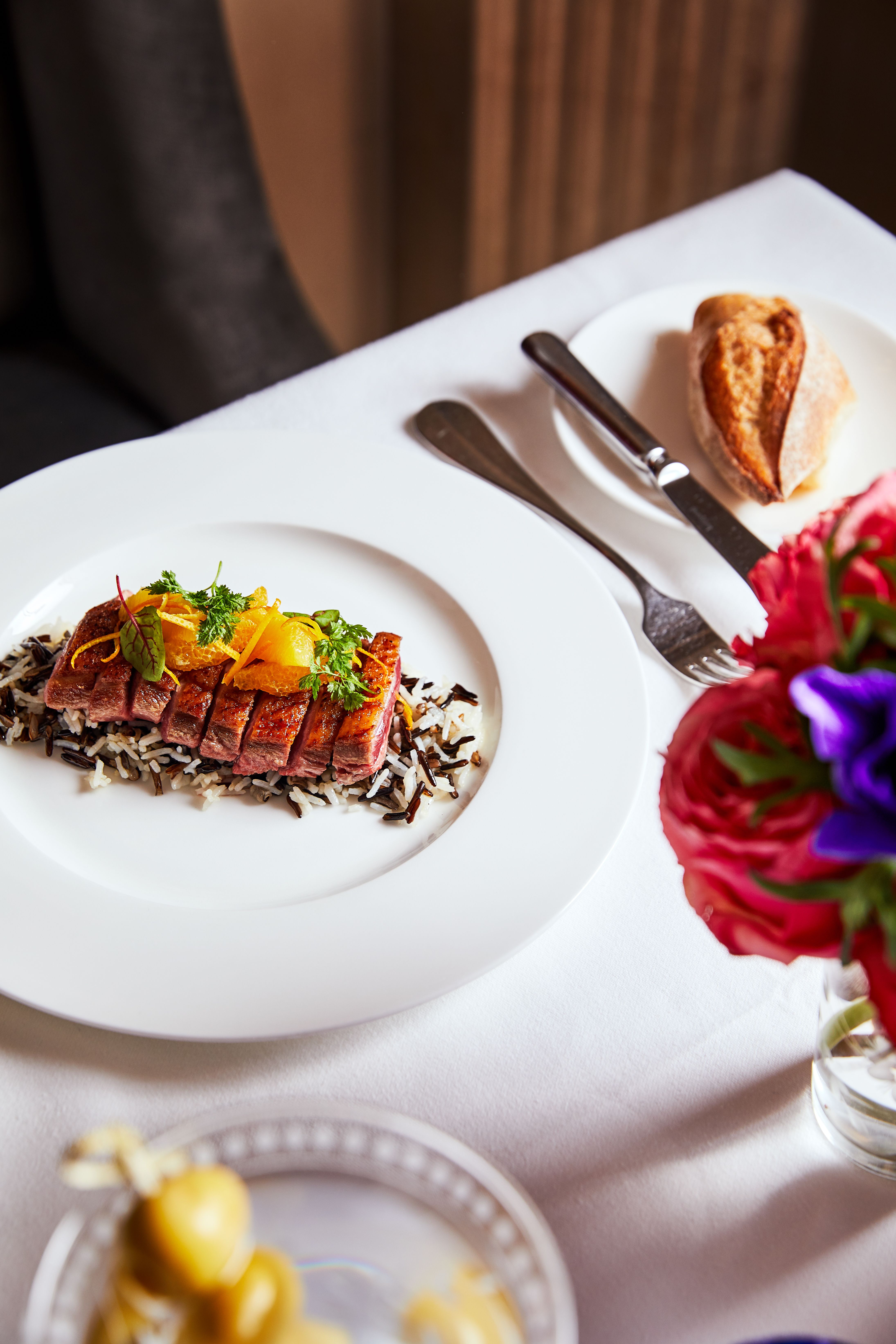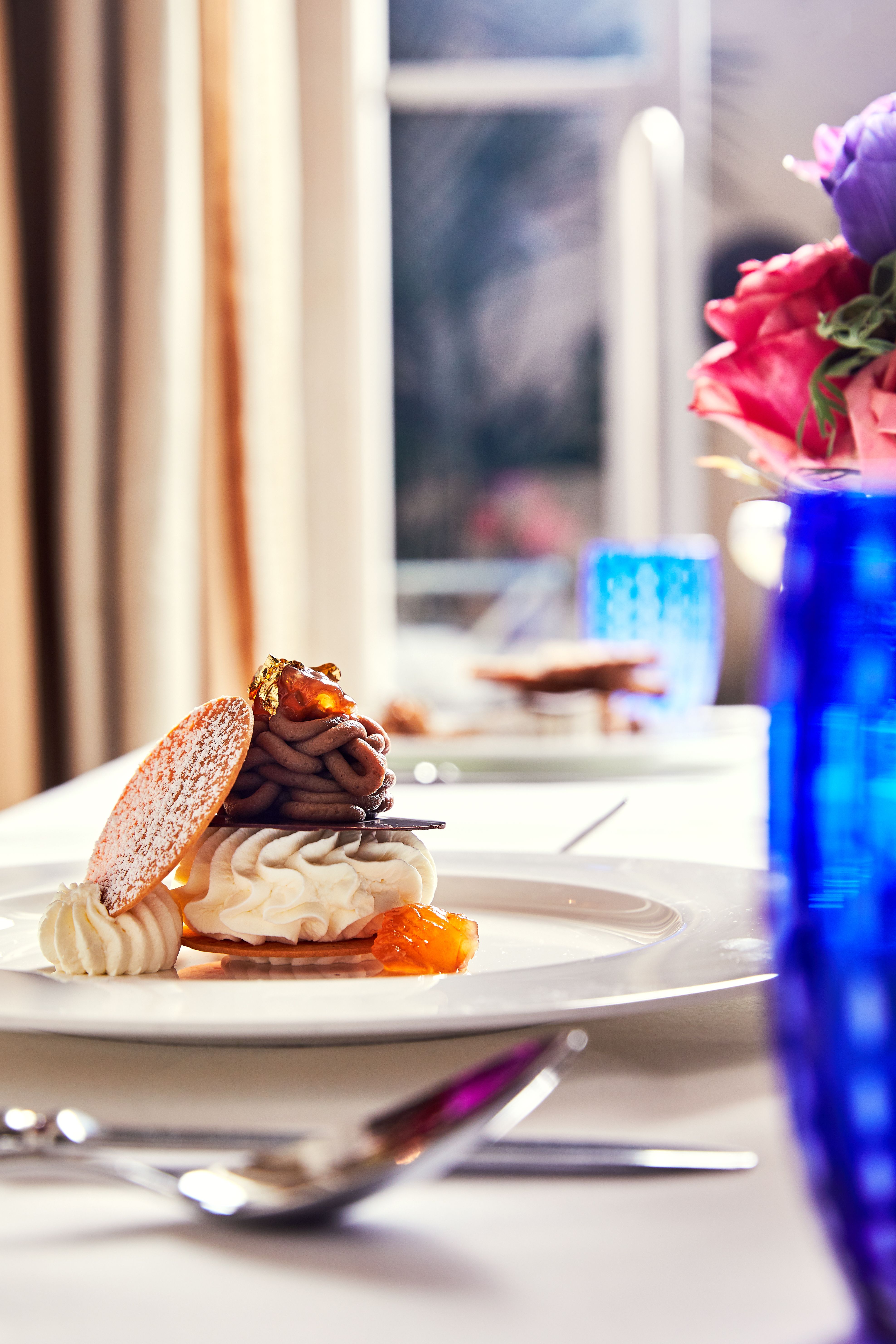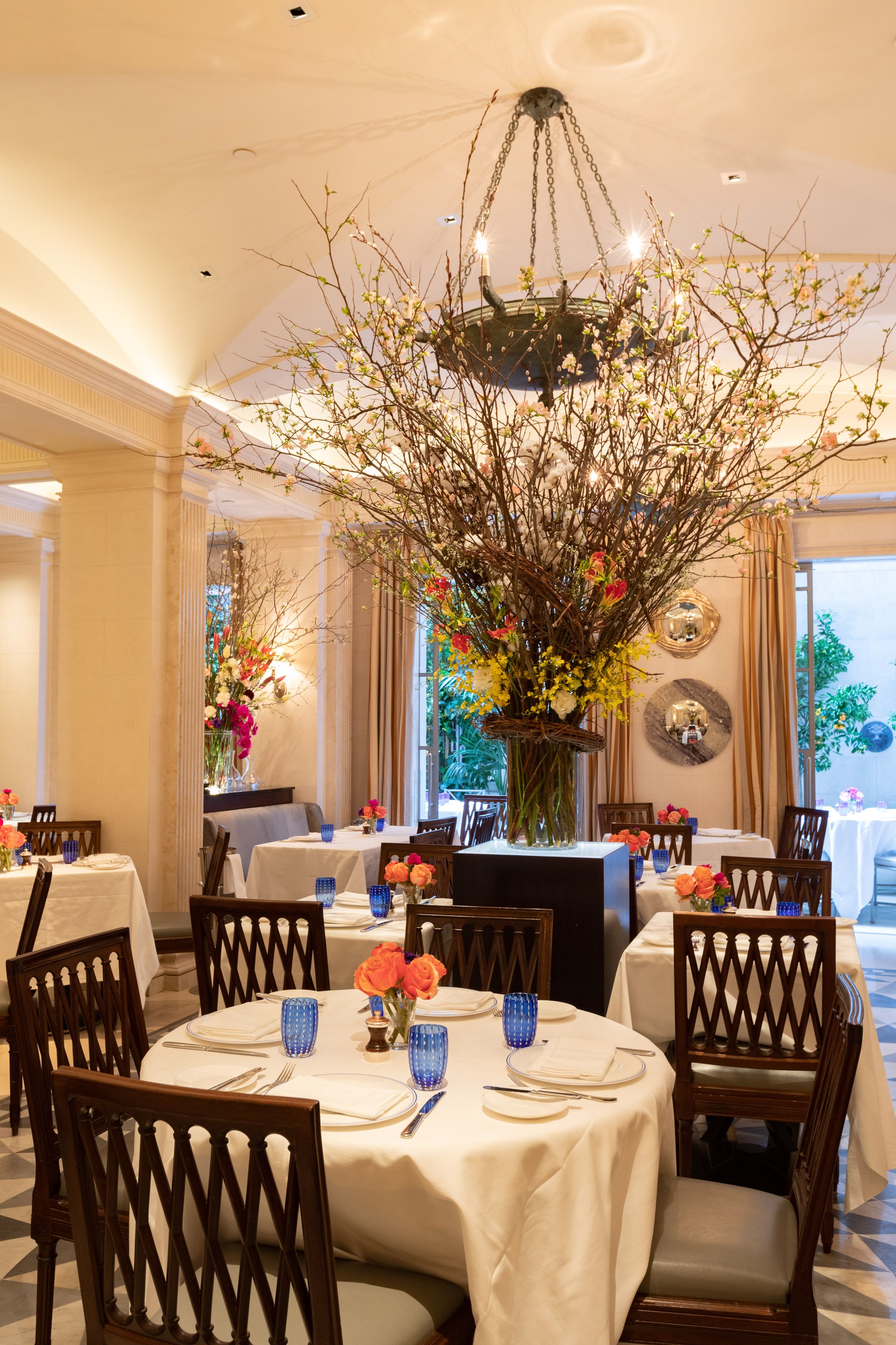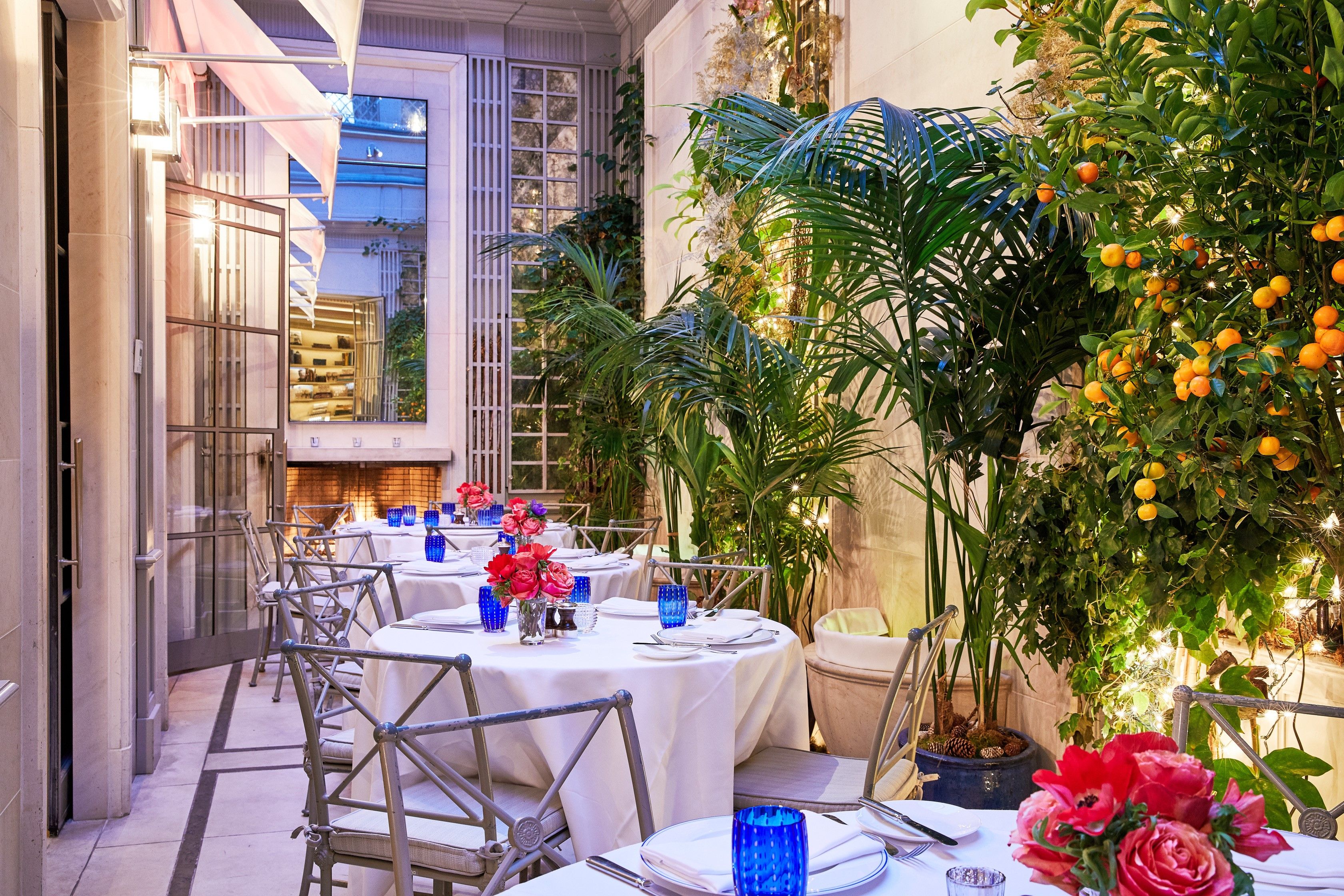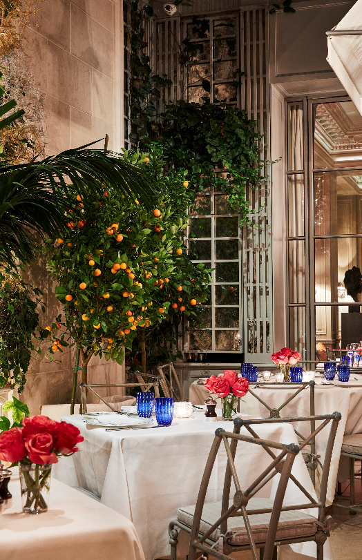 Intimate bar and beautiful lounge lead to unique restaurant with an open garden.The subtly lit French oak paneled bar greets you with booth banquettes and tables amenable to serve Jacques’ Bar Menu, all day.The Club Room: its coffered ceilings and fireplace creates familiarity in the comfort of a warm elegant home.Both the lounge and the bar menus offer spontaneously prepared French delicacies, savory and sweet with distinct Mediterranean and Moroccan influence.“Majorelle” restaurant: its vaulted ceiling, marble columns, and trellised garden with up-lighted fountains set the stage for fine French Cuisine and Service in an atmosphere of harmony and luxury for all the senses.