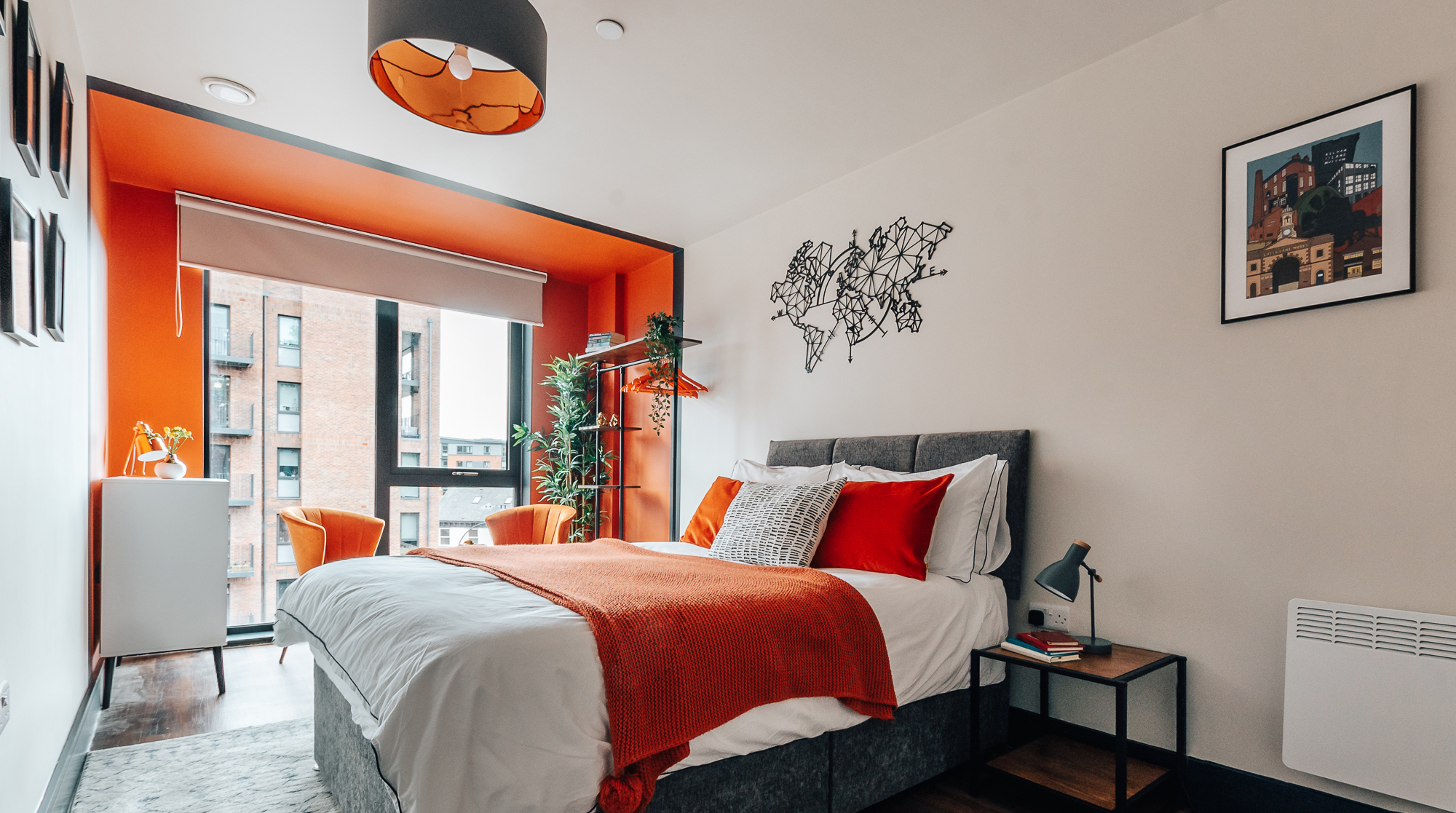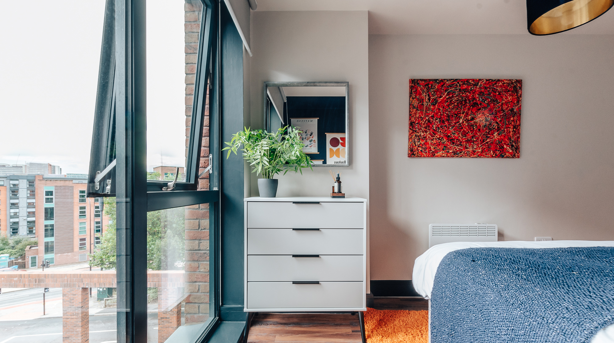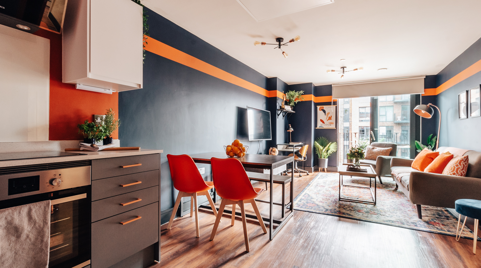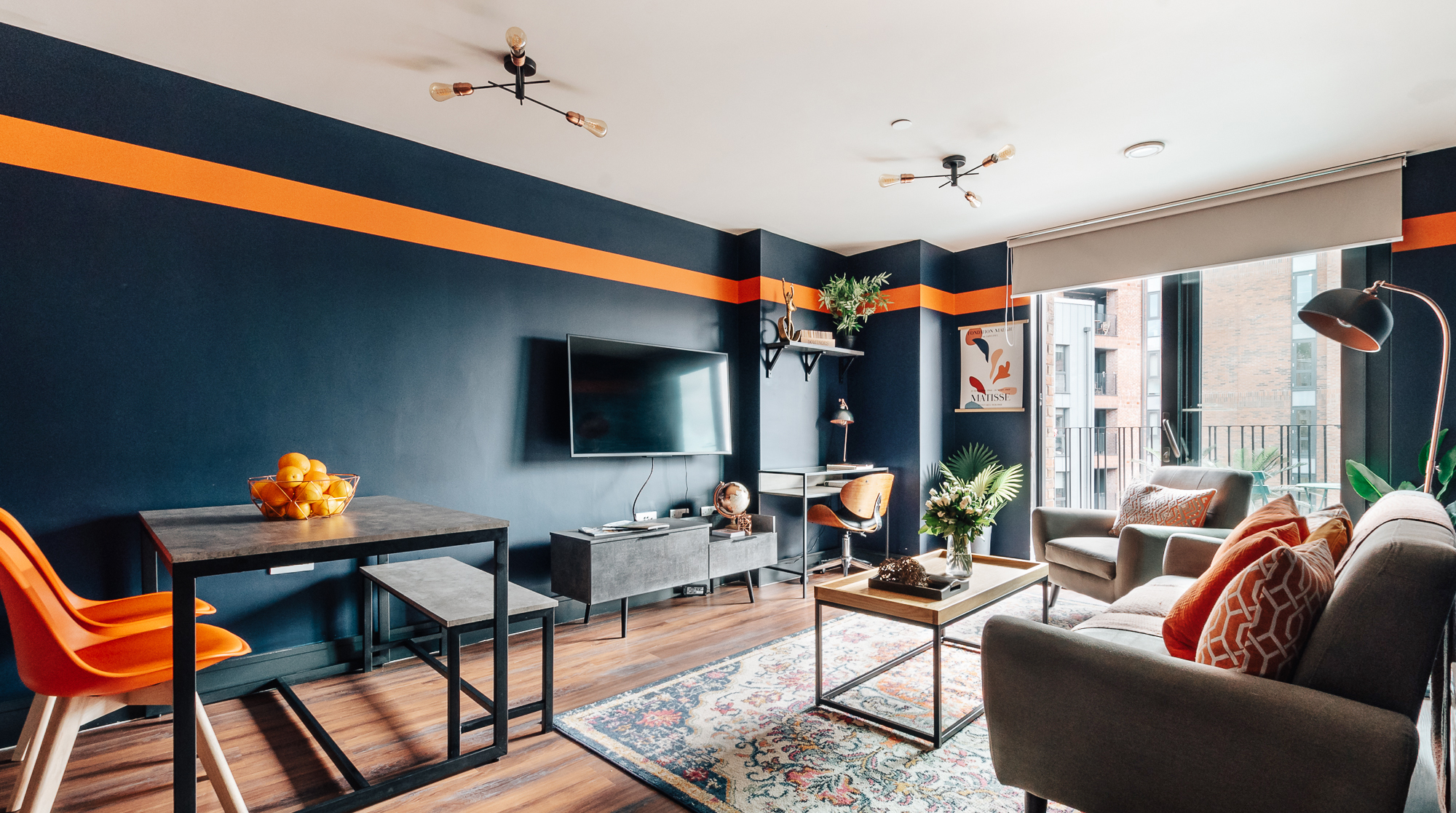 Positively brimming with colourful furnishings, eclectic decor and stylish wallpaper, this funky pad is perfect for the discerning Sheffield settler. Located in the hip-and-happening Kelham Island – a former industrial hub turned trendy hotspot full of quirky bars, traditional pubs and pop-up stalls, it's one for foodies and ale-lovers alike. And for those in need of a culture fix, the Kelham Island Museum, explaining the history of the city's steel industry, is at the centre of the island itself. Back in your cosy digs, the character of this modern home shines out from the moment you enter, with its vibrant pops of colour, chic furniture and curated greenery. For those keeping one eye on work during their stay, there's a dedicated office space by the window to get your head down, while those after a lazy coffee morning will find a cosy spot in the master bedroom to enjoy a good book. While the brightly styled living spaces make for a homely spot to relax, the real highlight of this home is the outside space. Sip your alfresco wine on a fully decked out balcony, overlooking the stillness of the River Don – what better way to bookmark the day.