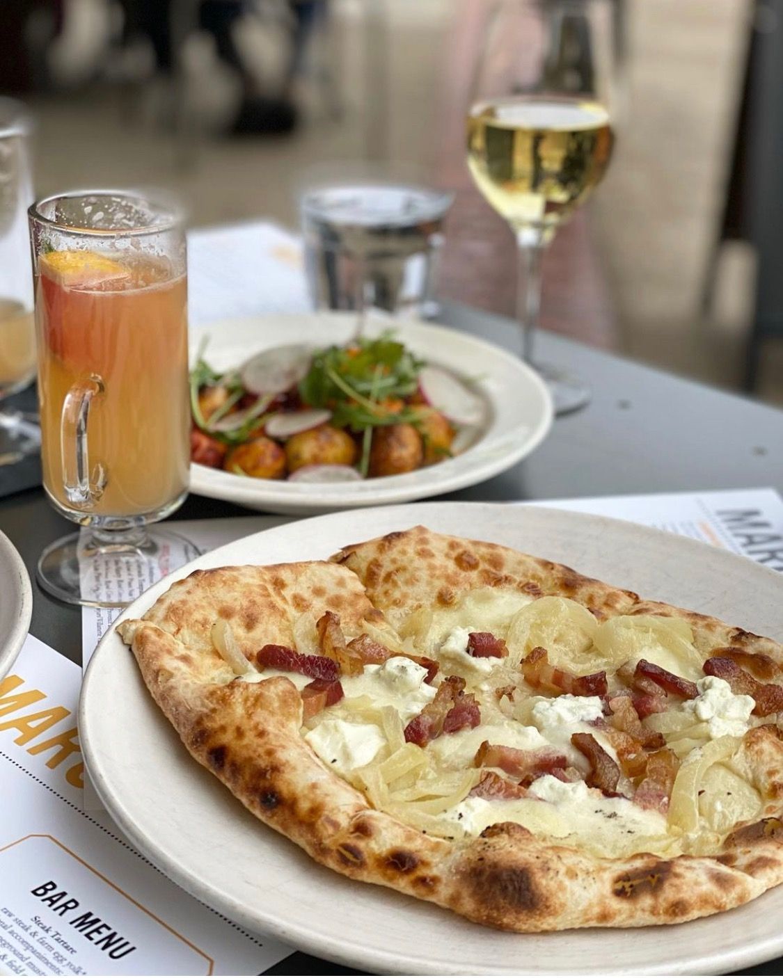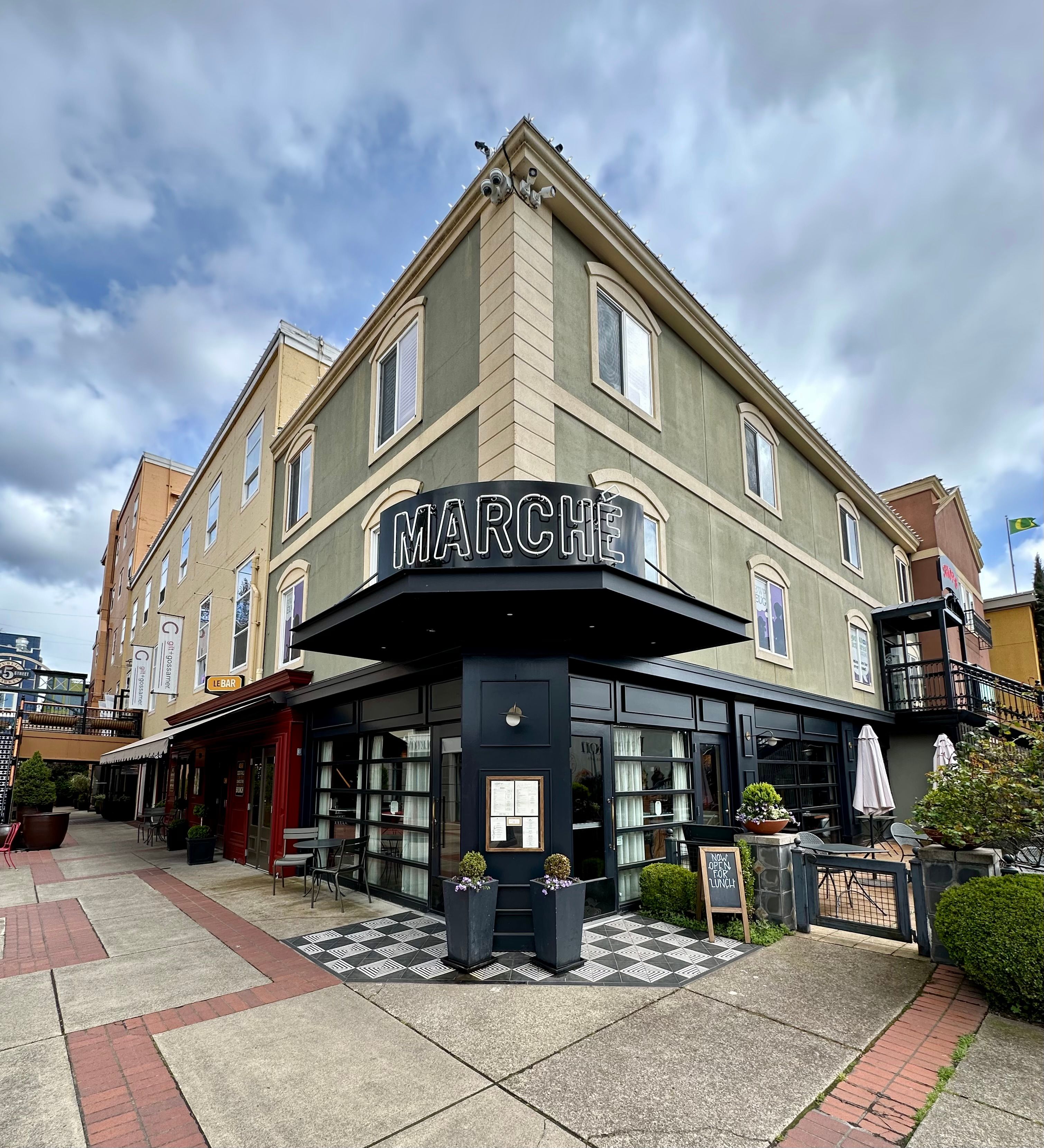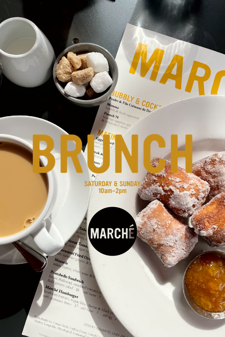 Marché has been at the heart of the Willamette Valley's restaurant scene for more than 25 years– picking up honors from the James Beard Foundation and accolades from the national press along the way. We are most proud of our place in the community, whether it's as a regular lunch spot, a special-occasion date night, a family celebration or a place to gather with friends. We take our name from the French word for market — describing not only our location in Eugene, Oregon’s bustling 5th Street Market, but also our philosophy focused on fresh, seasonal, and local farmer's market fare. Inspired by French technique and committed to using only those ingredients that are at their best, our menu evolves as we move through the seasons. We serve lunch daily in our Parisian-inspired bar, brunch on weekends and dinner seven days a week. In warm weather, our patio is a sunny place to relax with a glass of rosé, surrounded by our herb garden.