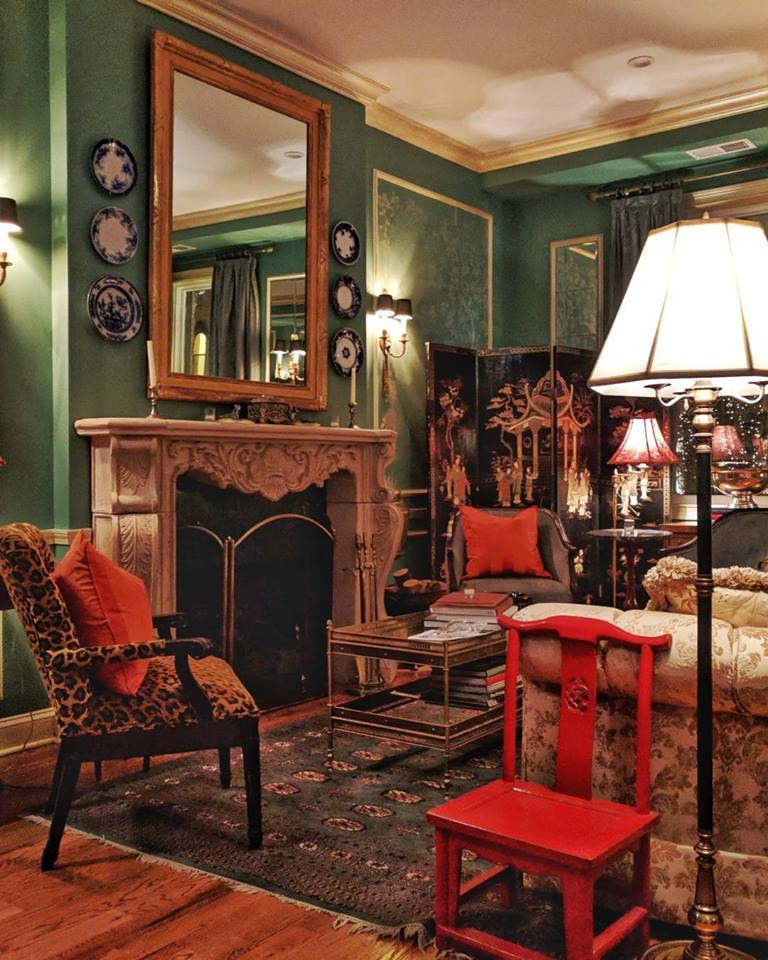 The second floor private dining room resembles a luxe Parisian apartment, complete with antiques, silk drapes, oil paintings, vintage furniture and a petit lattice-wrapped courtyard. The hand-stenciled walls, high ceilings and generous windows allow much sunlight to flow through the room. The baby grand piano can be used for live music, as a DJ table or as a perfect perch for a lavish arrangement of cheese & charcuterie. The Apartment accommodates up to 50 for a bridal lunch or corporate dinner and up to 75 for cocktails. This inviting space, that feels like an upscale home, has a private entrance.