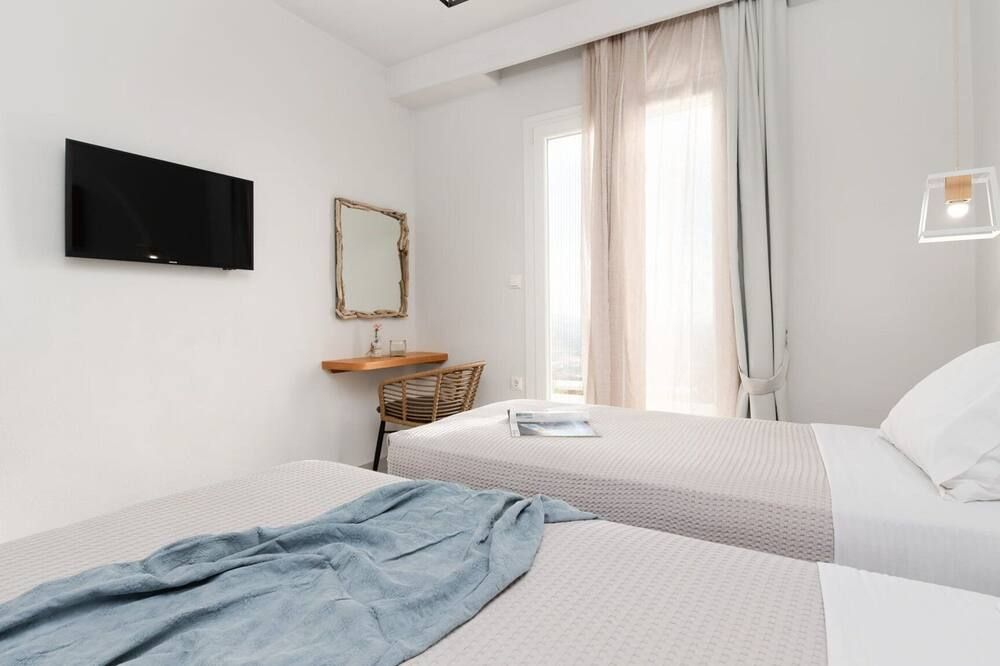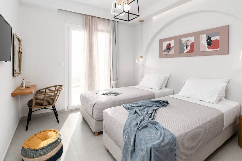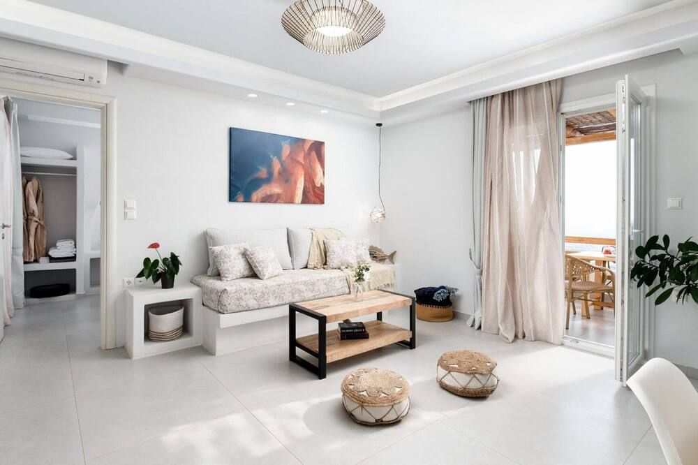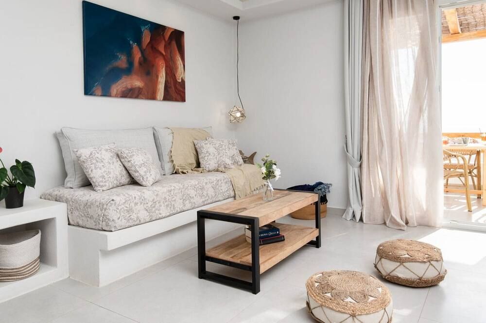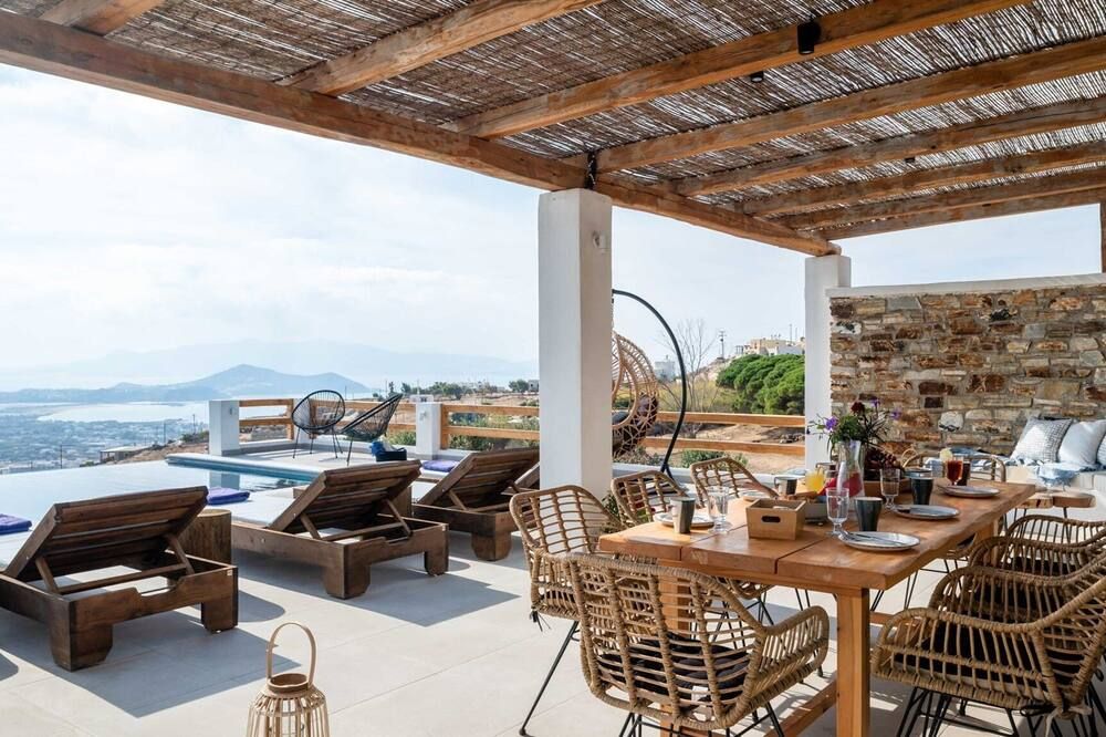 Soft golden sands, turquoise waters and endless sunshine beckon at this incredible villa in Naxos. Just steps away from Mikri Vigla – considered one of the best beaches on the island – you can sunbathe, kitesurf and catch some waves whenever the mood strikes you. There are a range of traditional tavernas nearby – with even more options in Chora Town, twenty minutes away – while ancient sites like the Temple of Demeter and Zeus' Childhood Cave can be easily reached by car.