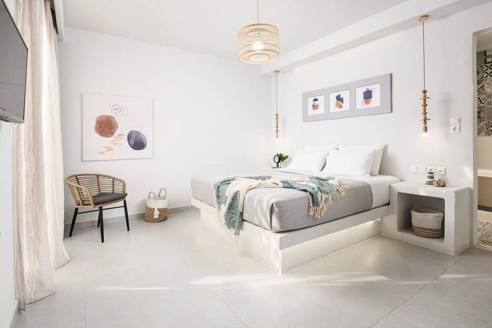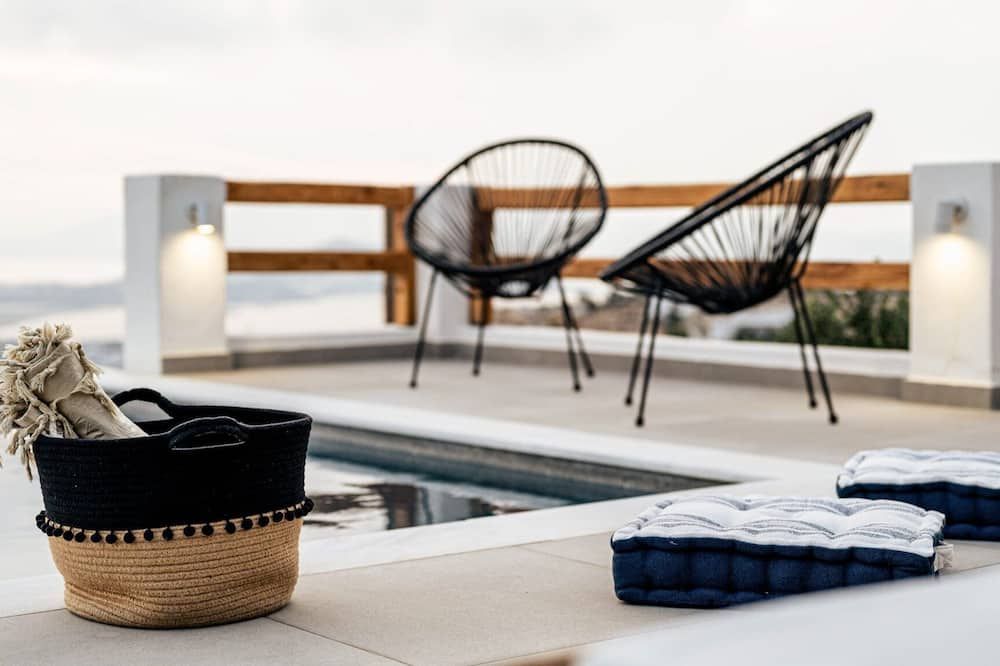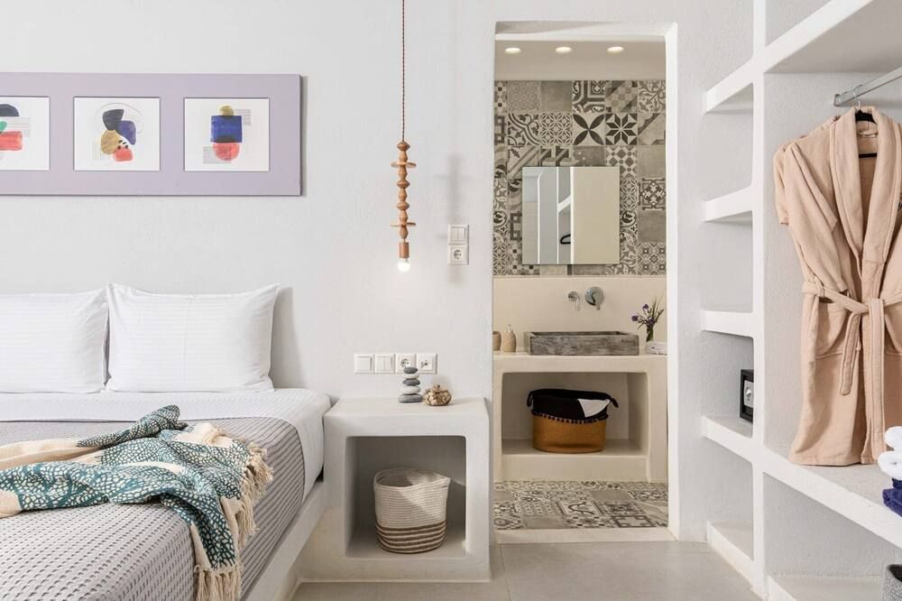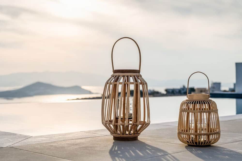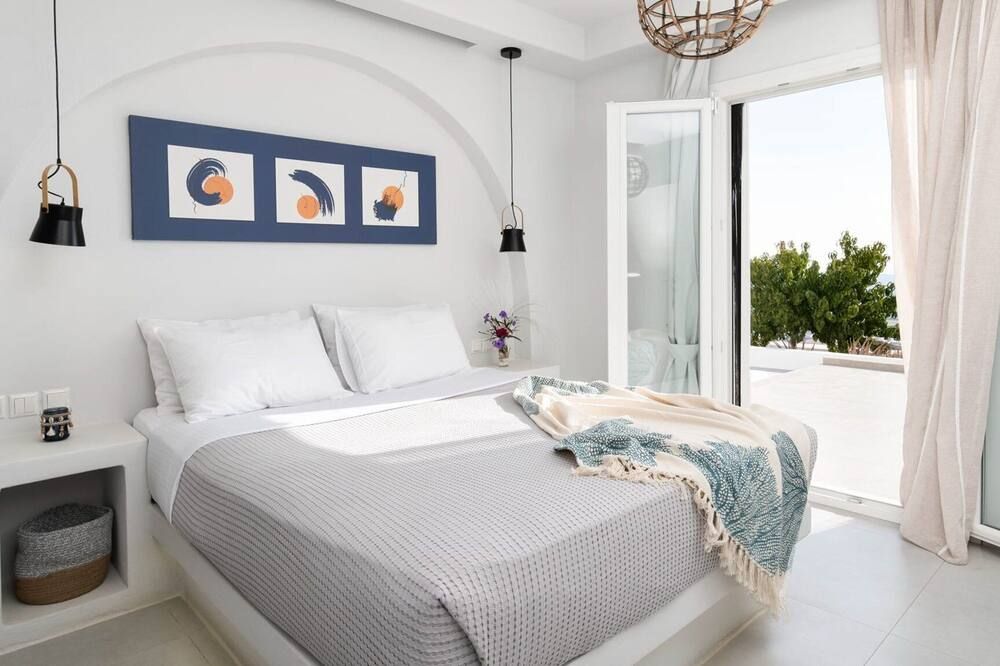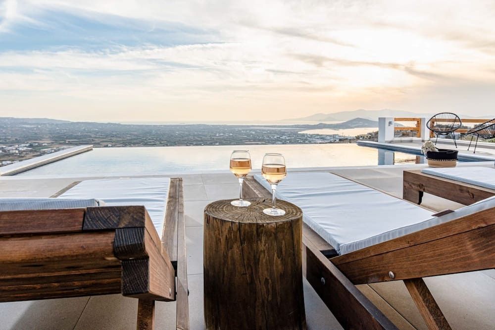 When you're not exploring, you'll have plenty to keep you entertained at home. Fire up the jets in the infinity pool and relax with a massage, then when you're feeling calm and serene, sprawl out on the chairs and watch the incredible oceanfront sunset. While away the evenings around the outdoor dining table, sharing a bottle of wine and good conversation. Inside, the trendy interior mimics the scenery – think classic Cycladic whites, deep blues and natural sand-coloured hues. We love how bright and stylish each room is. With space to spread out and the Aegean Sea as your backdrop, every minute here will feel like a dream.