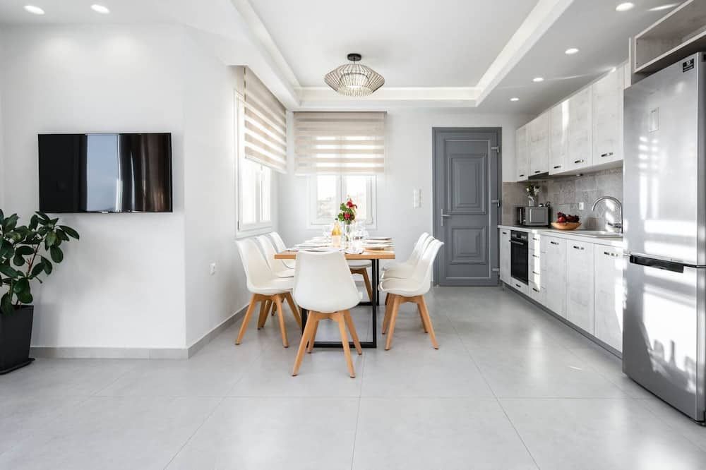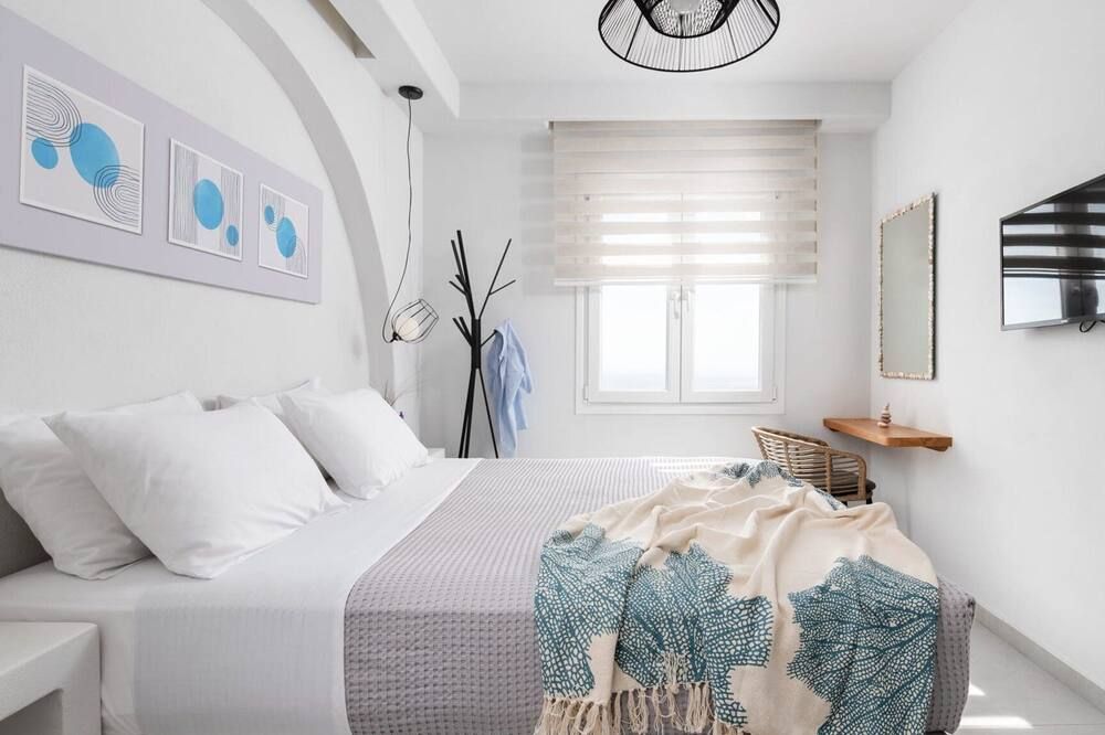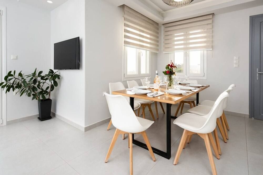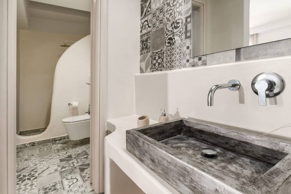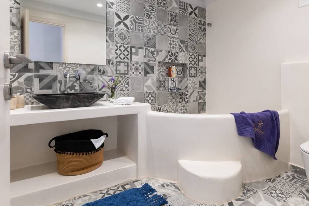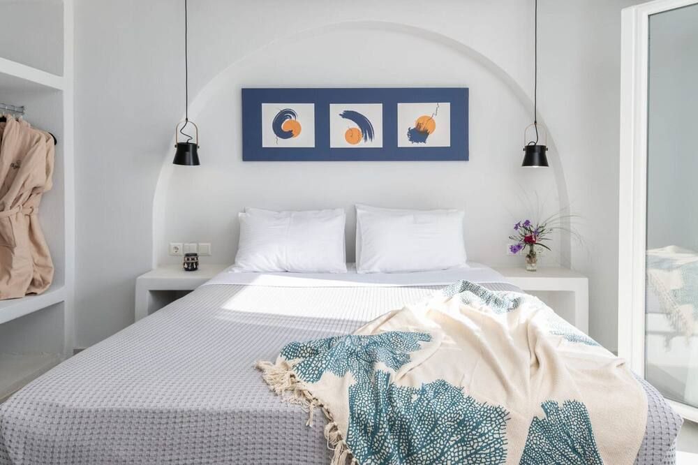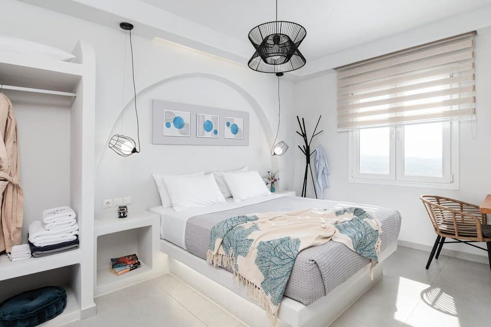 When you're not exploring, you'll have plenty to keep you entertained at home. Fire up the jets in the infinity pool and relax with a massage, then when you're feeling calm and serene, sprawl out on the chairs and watch the incredible oceanfront sunset. While away the evenings around the outdoor dining table, sharing a bottle of wine and good conversation. Inside, the trendy interior mimics the scenery – think classic Cycladic whites, deep blues and natural sand-coloured hues. We love how bright and stylish each room is. With space to spread out and the Aegean Sea as your backdrop, every minute here will feel like a dream.