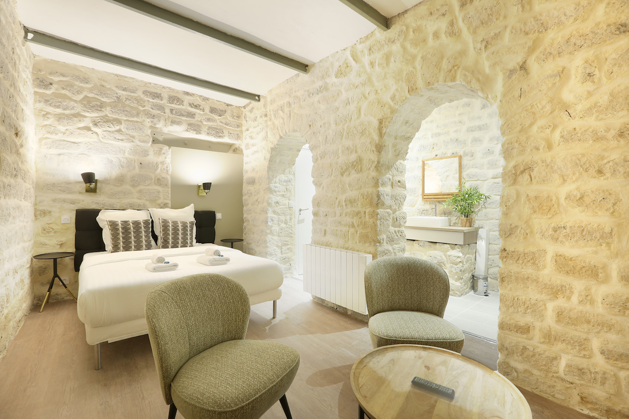 Just north of the buzzing Marais lies this spacious and contemporary three bedroom apartment. Although its minimalist interior may not suit everyone, its open-plan layout makes it ideal for a family or group of friends. The master bedroom on the basement level has lots of character with exposed limestone brick walls and a sleek his and her shower room, perfect for parents who want some privacy.