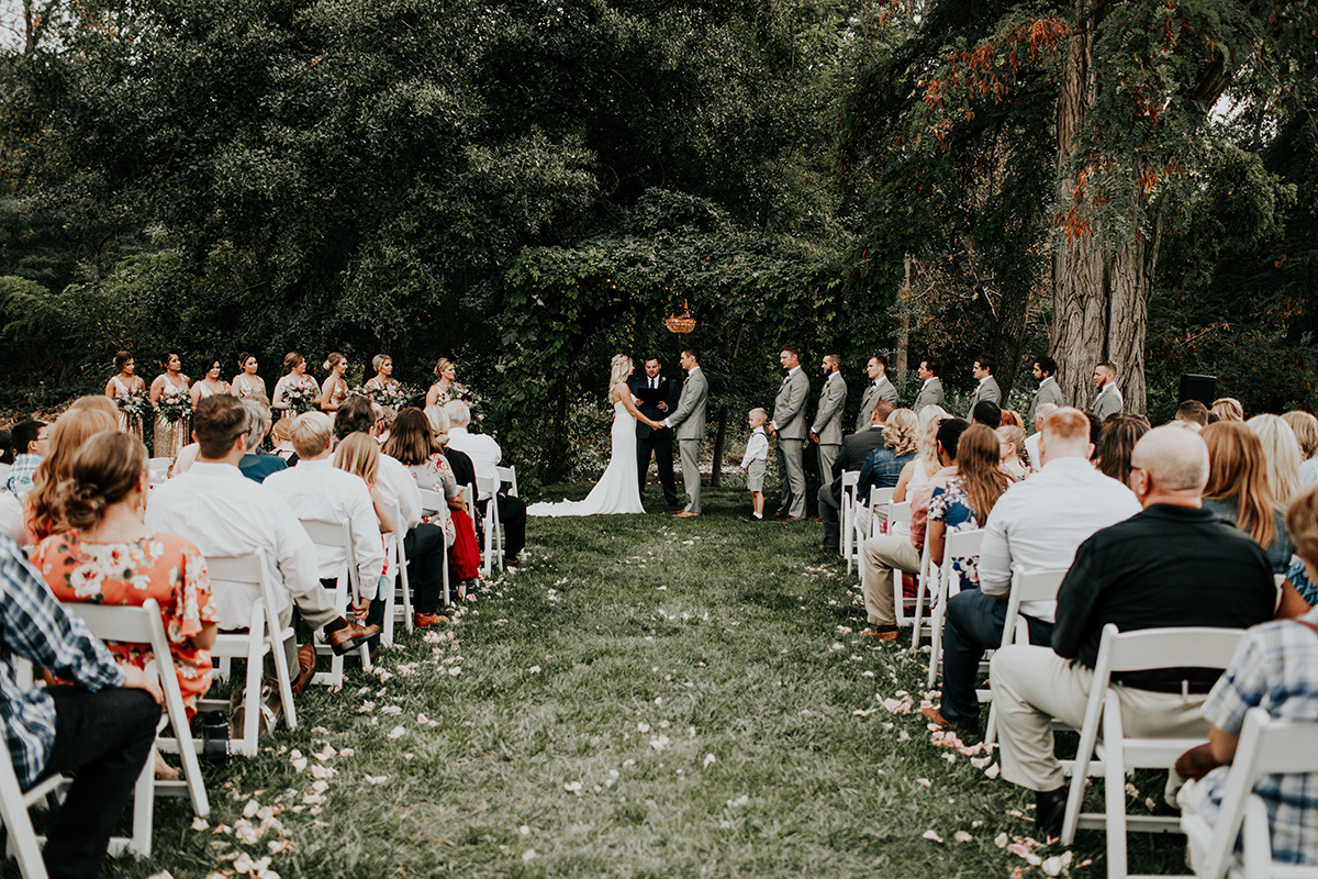 Set amidst 20 bucolic acres, the grounds provide a myriad of photo opportunities that encompass grassy lawns, varietal gardens filled with fragrant roses, lavender, peonies, wisteria and honeysuckle, a rustic fountain, tree swings, and lush foliage that envelops our arbors and outbuildings along with the unparalleled ambiance of a creekside setting.