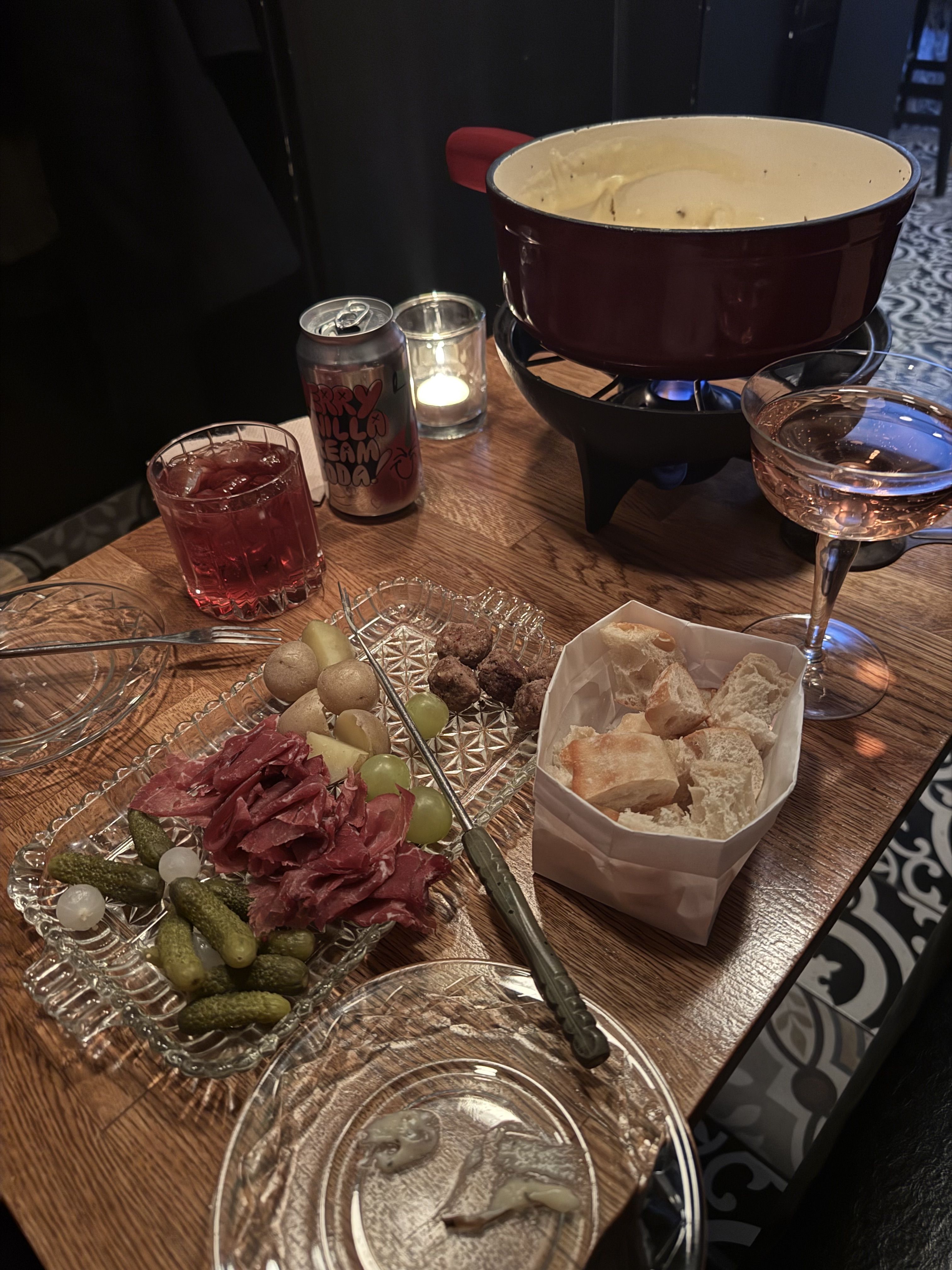 Welcome to Moonlight & Eli, the world's first fondue and champagne bar, tucked away in the charming little pink house in Bridgeland, downtown Calgary. Whether you’re planning a cozy date night, a birthday bash, or an anniversary celebration, you’ll find a warm and inviting atmosphere here. Our fondue menu is the star, with delicious vegetarian options and gluten-free add-ons like charcuterie, making it easy to customize your meal. Enjoy a glass or flight of Champagne, Prosecco, Cava, or Cremant in our garden patio, or sip on one of our creative cocktails. Perfect for intimate gatherings, group celebrations, or even weddings, Moonlight & Eli is your go-to spot for unforgettable moments.