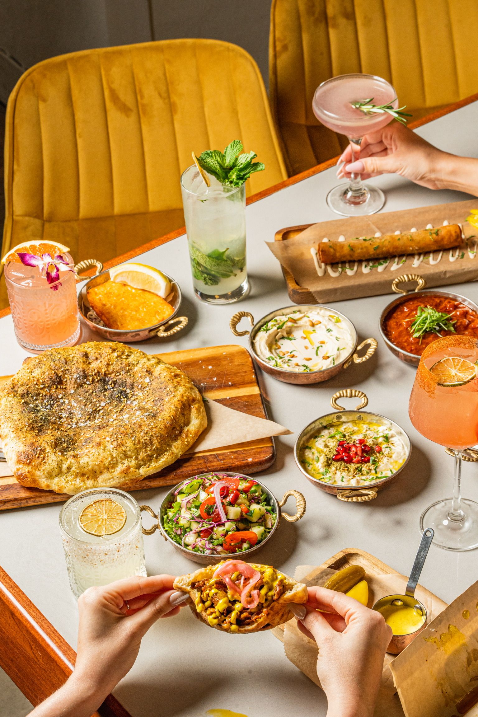 Motek offers a sophisticated yet approachable Mediterranean dining experience perfect for brunch, after-work dinners, or business meetings. The elegant atmosphere makes it an ideal spot to host colleagues or unwind after a productive day. Our menu highlights the best of Mediterranean cuisine, with freshly made hummus, grilled meats, and lighter dishes like vibrant salads and mezze platters. Whether you're discussing business over a Jerusalem Grilled Cheese or celebrating the end of the day with friends over a shakshuka, Motek Coral Gables delivers an experience that’s refined, comforting, and full of flavor.