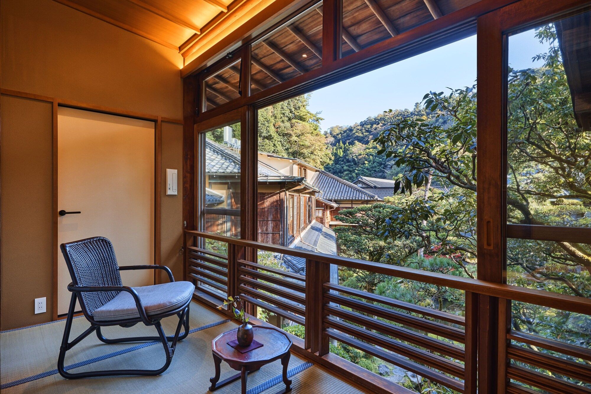 Rooms at Nishimuraya Honkan Ryokan have traditional futon bedding and tatami (woven-straw) floors. Each is air-conditioned and comes with a tea maker, flat-screen TV and private bathroom.