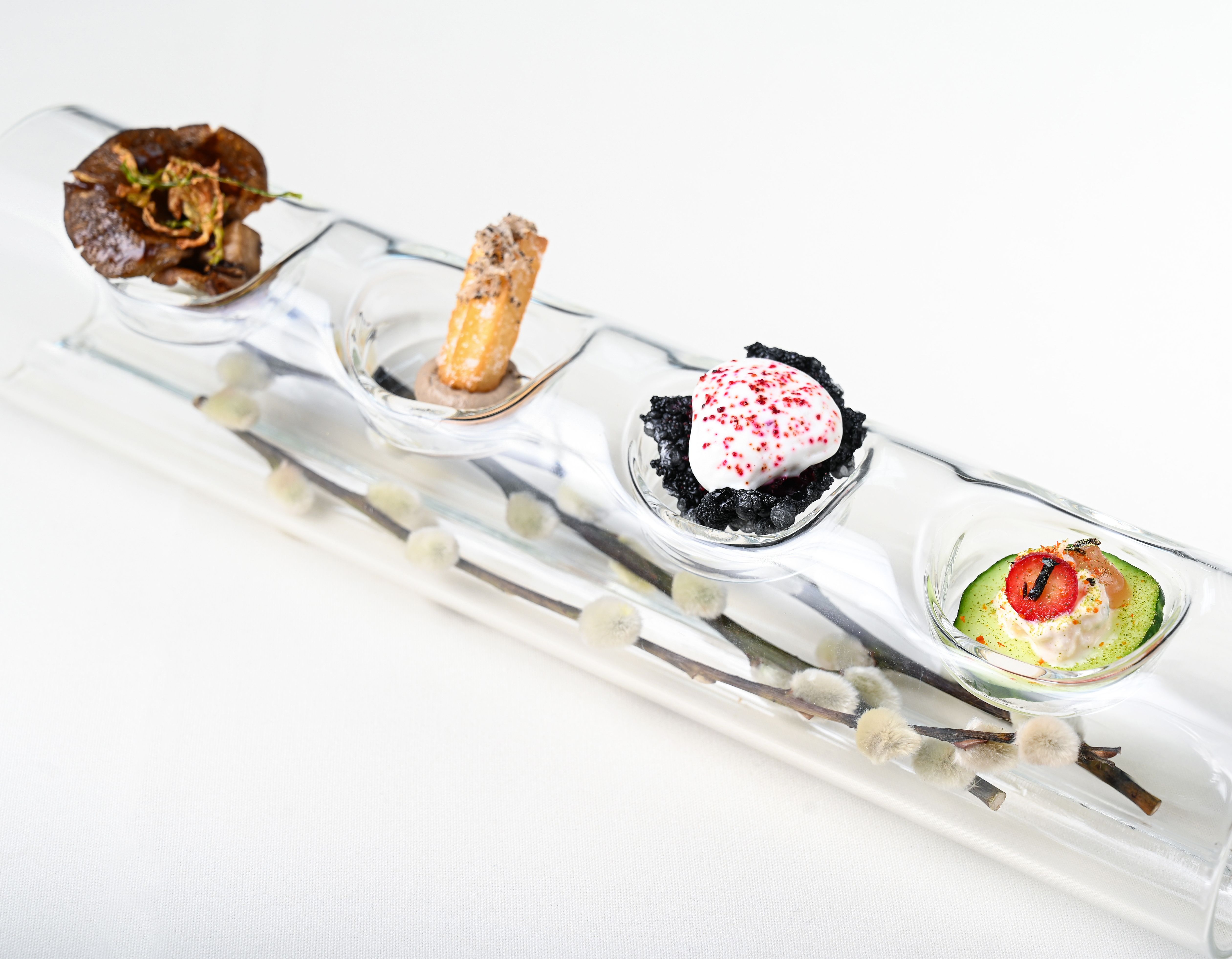 Inspired by the market, Chef César Murillo utilizes exceptional ingredients at the height of their season. His tasting menu reflects the Arts & Crafts approach of the dining room - complex layers of subtle craft beneath a simple decorative style. We offer a five-course tasting menu with optional wine pairings. The menu is not á la carte. Tables in the front room or patio, overlooking the pond, are seated first come, first serve. We do not hold tables. All tables for more than 4 people are seated in our main dining room. We accept reservations for a maximum of 8 people at one table.A cancellation charge of $25 per person is applied to all same day cancellations.