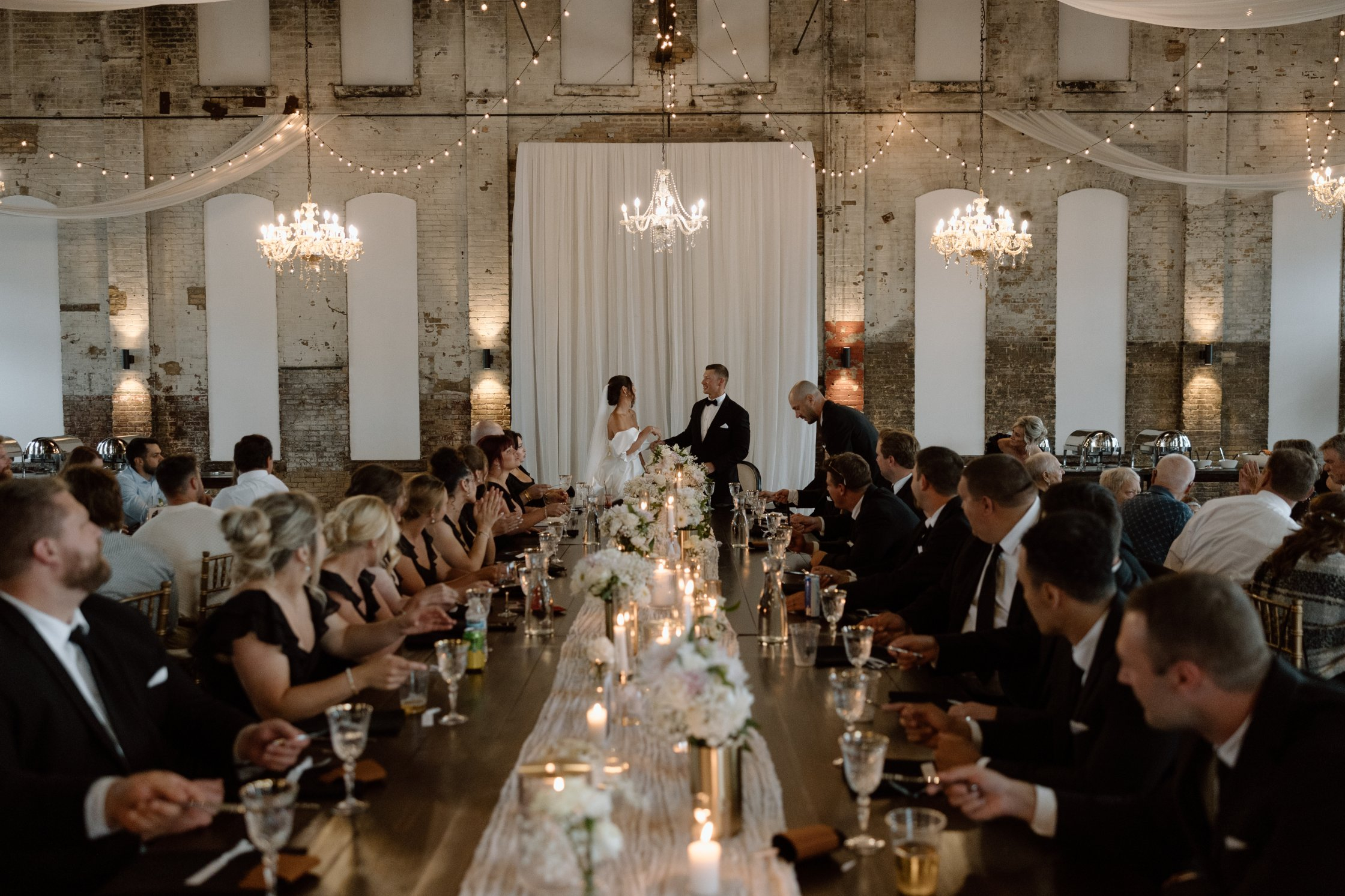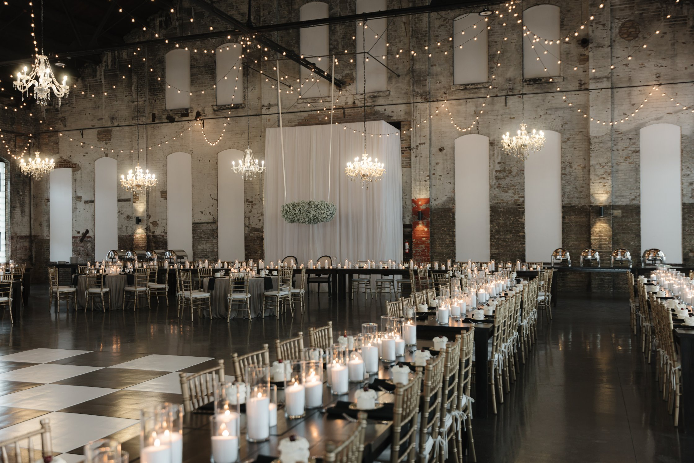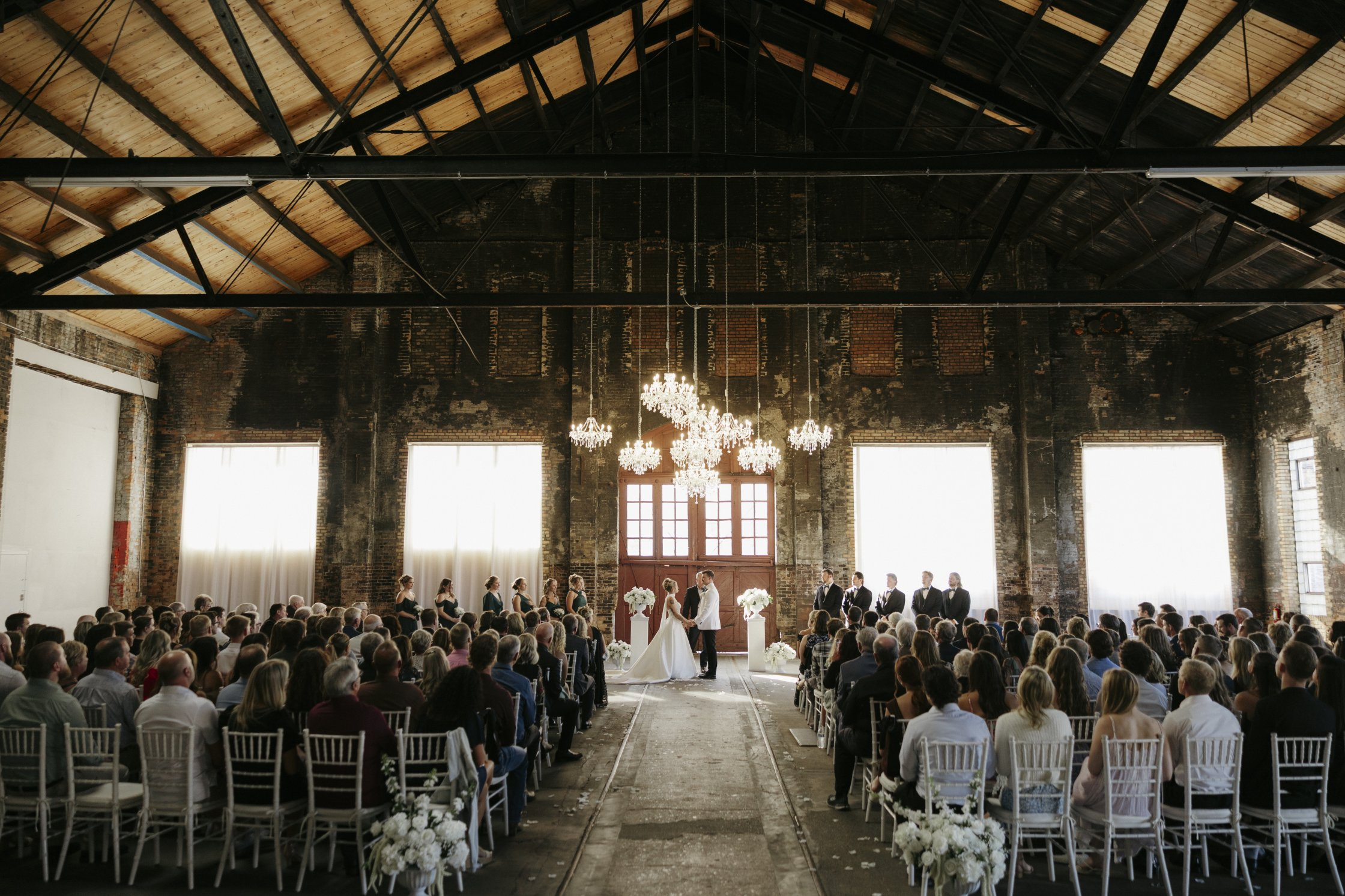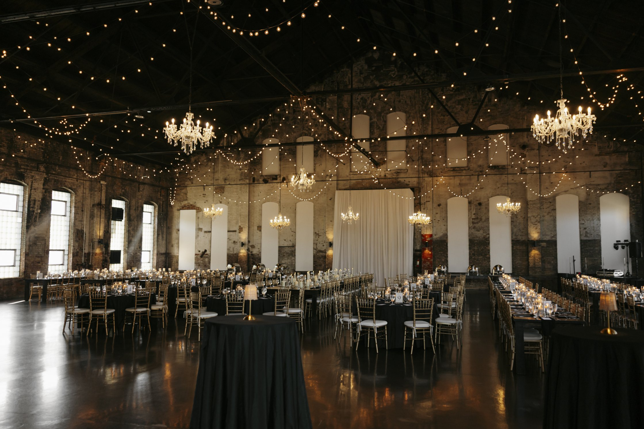 The overall aesthetic feels urban and sophisticated, yet warm and inviting. The scale of the buildings delivers dramatic volume and visual impact, while natural light and thoughtfully preserved historic details create depth and texture throughout the spaces. It’s a setting that feels both grounded in Minnesota heritage and elevated enough for black-tie celebrations.