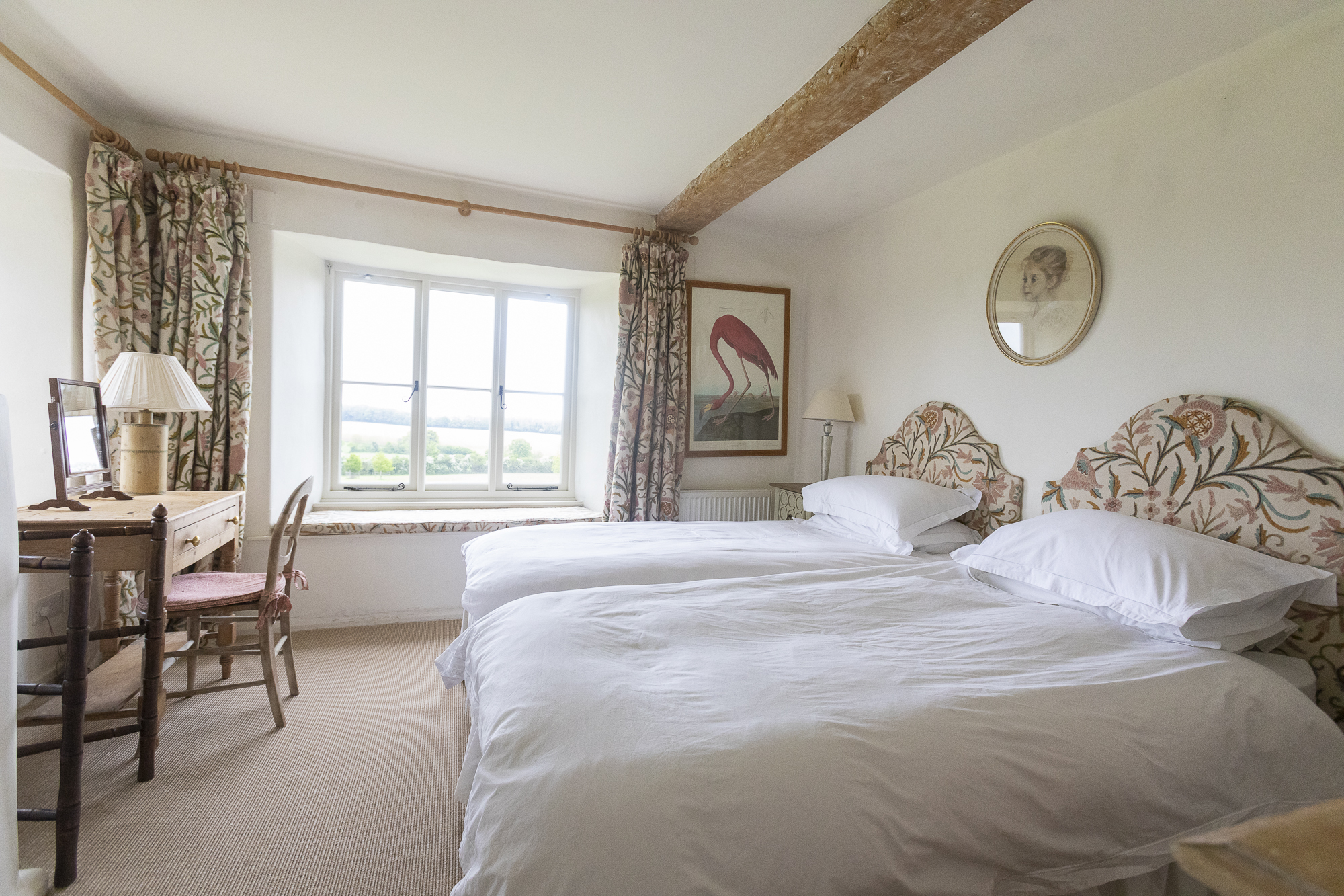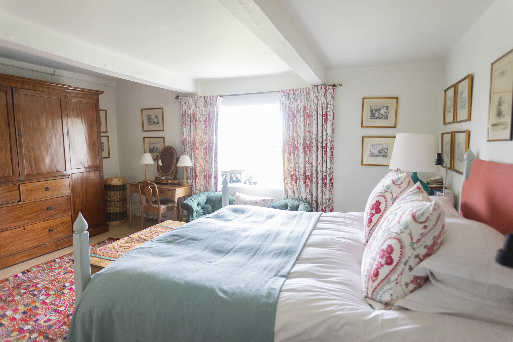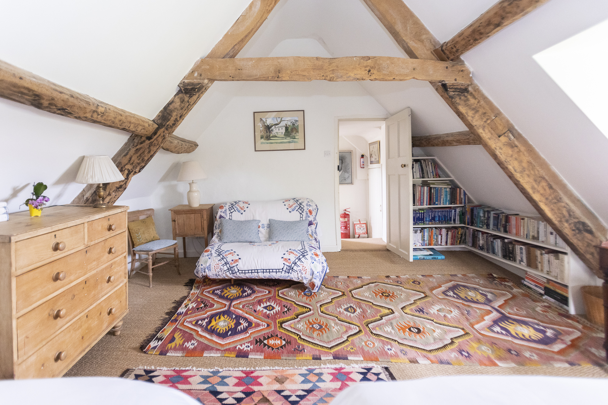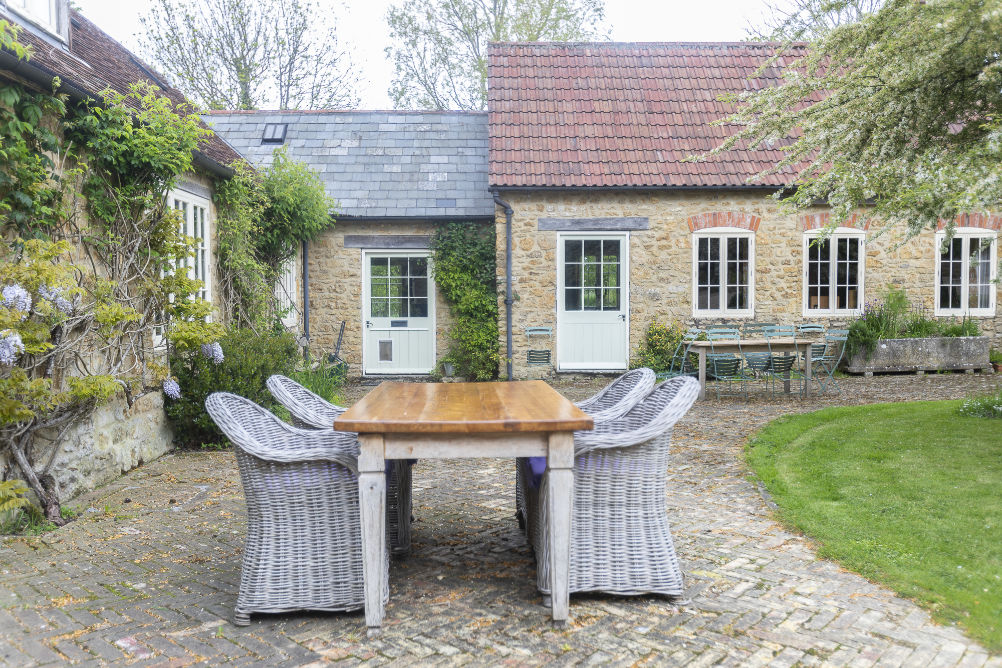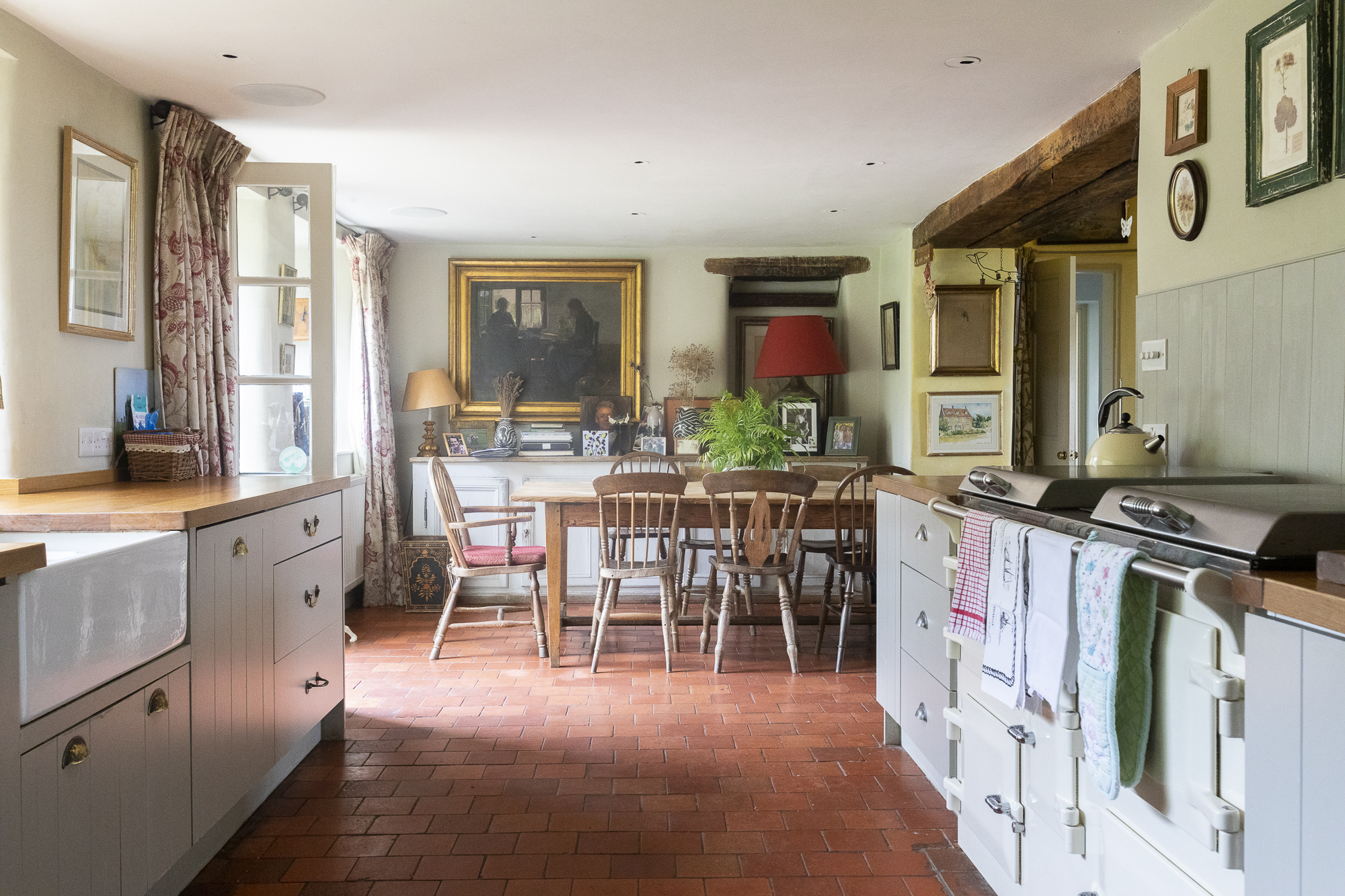 Surrounded by sixty acres of farmland and three lakes, this home in Bratton Seymour, Somerset, wouldn’t be out of place in an Enid Blyton novel. Picture muddied boots piled by the door after a day of rambling, wet bathing suits hanging up to dry after a day of swimming, children drinking lemonade while making daisy chains on the grass and adults relaxing on the patio, a sundowner in hand. Grand yet rustic, this home is best enjoyed as a ‘gentrified farmhouse,’ just as the hosts like to call it. Besides its stunning grounds, it boasts bags of entertainment for a rainy day, including a foosball table, walls full of books, a piano and gym equipment. The home has many of its original features too, like the flagstone floor in the kitchen and open rafters in the attic bedrooms, which allow you to feel its history. It's also full of modern comforts, including an Aga stove and a truly romantic wood-framed bathtub. There are endless spaces to socialise and dine together, from the red medieval-looking dining room to the cosy kitchen table and elegant lounge room, or outside on the patio and under the courtyard's trees. Rise early to greet the day with some yoga in the enclosed sheltered garden, take the rowboat out on a sunny afternoon or steal yourself away for an evening to relax in the colourful lakeside yurt and cosy up by its wood-burning stove. A true country haven, there’s no end to the adventures to be had here.