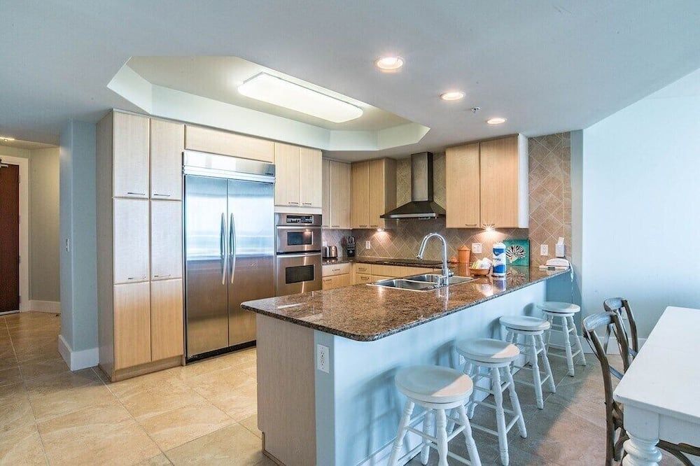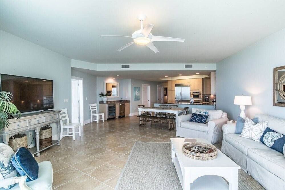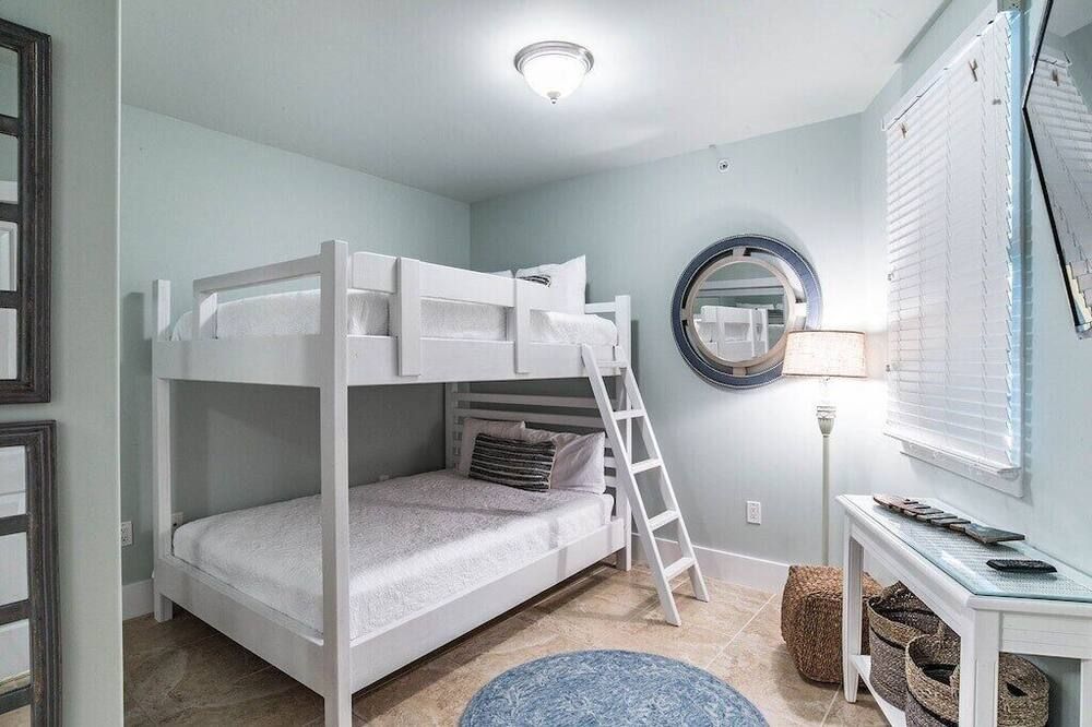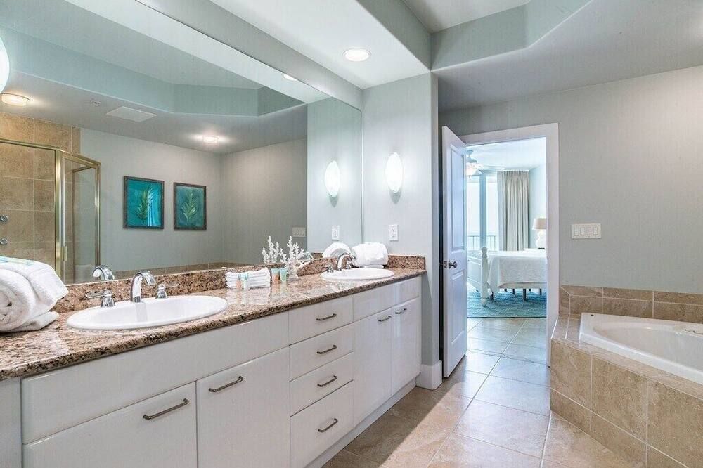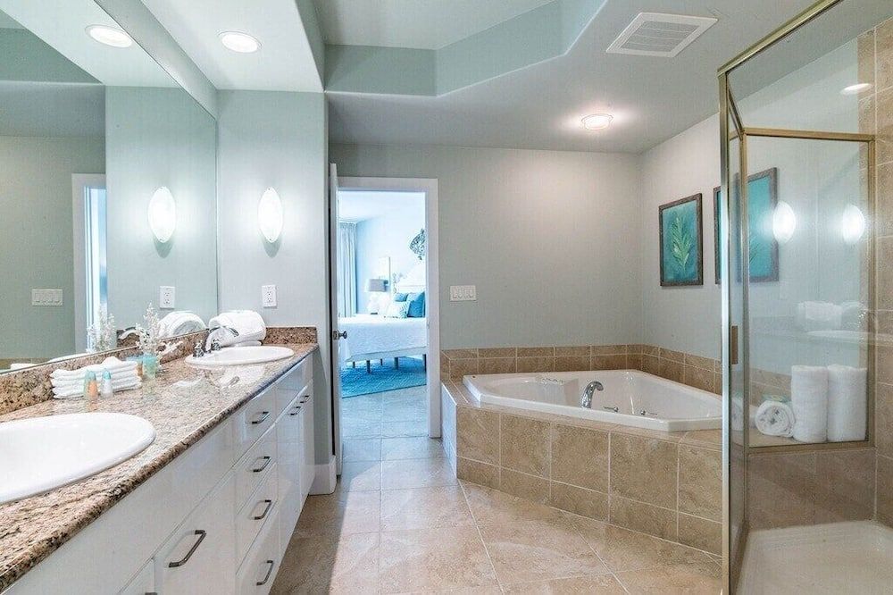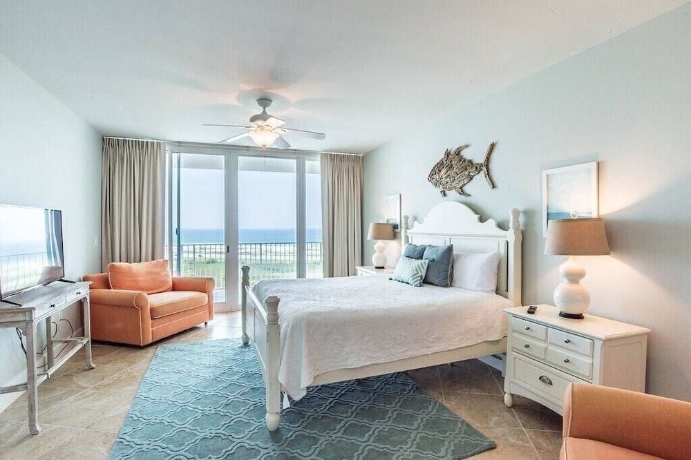 Set right by the sea, overlooking the Bayou Saint John and the Gulf of Mexico, this three-bedroom apartment is set on a stretch of Alabama's easternmost coast that's renowned for its pristine white sand beaches and family-friendly atmosphere.Step inside and take in the view through floor-to-ceiling windows that allow plenty of natural light to flood in throughout the day. A vast corner sofa occupies prime position by the windows, with balcony access a few steps away. Elsewhere, a six-seater dining table will ensure sociable mealtimes, while the kitchen comes with everything you could need to cater for yourself. If you aren't in the mood to cook, there's a restaurant on-site at the resort, plus a poolside deli for light bites at lunchtime. Each of the three bedrooms is inspired by the beautiful location, making use of natural jute carpets, blue and yellow colour schemes, plus sea life-inspired artwork hanging in the main en-suite – complete with a Jacuzzi bath.Whether you're looking to while away your days by the pool with a drink in hand, immerse yourself in nature along the backcountry trails, or keep a keen eye out for dolphins on a sunset cruise, Orange Beach has it all. Outside of the resort, The Wharf offers an enticing array of eateries, fifteen minutes away. Alternatively, Orange Beach Waterfront Park offers you a chance to throw in a fishing line and hope for the best just 5 miles down the road.
